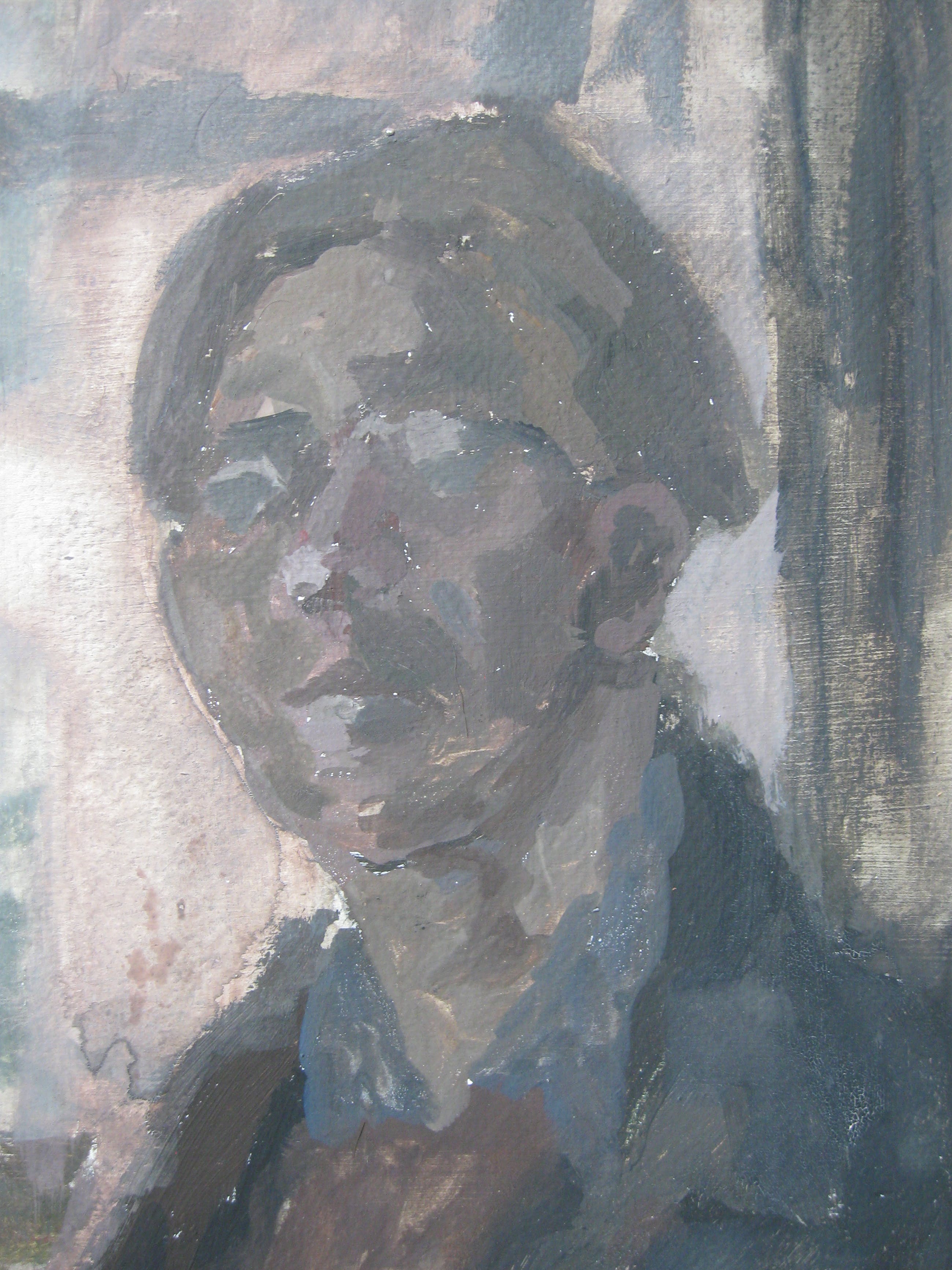 Waarschijnlijk vroeg zelfportret van Henk Zomer (Amsterdam 1934 - Amsterdam 2015), tekenaar, schilder en docent aan de kunstacademie in Den Bosch. Vroeg expressionistisch werk