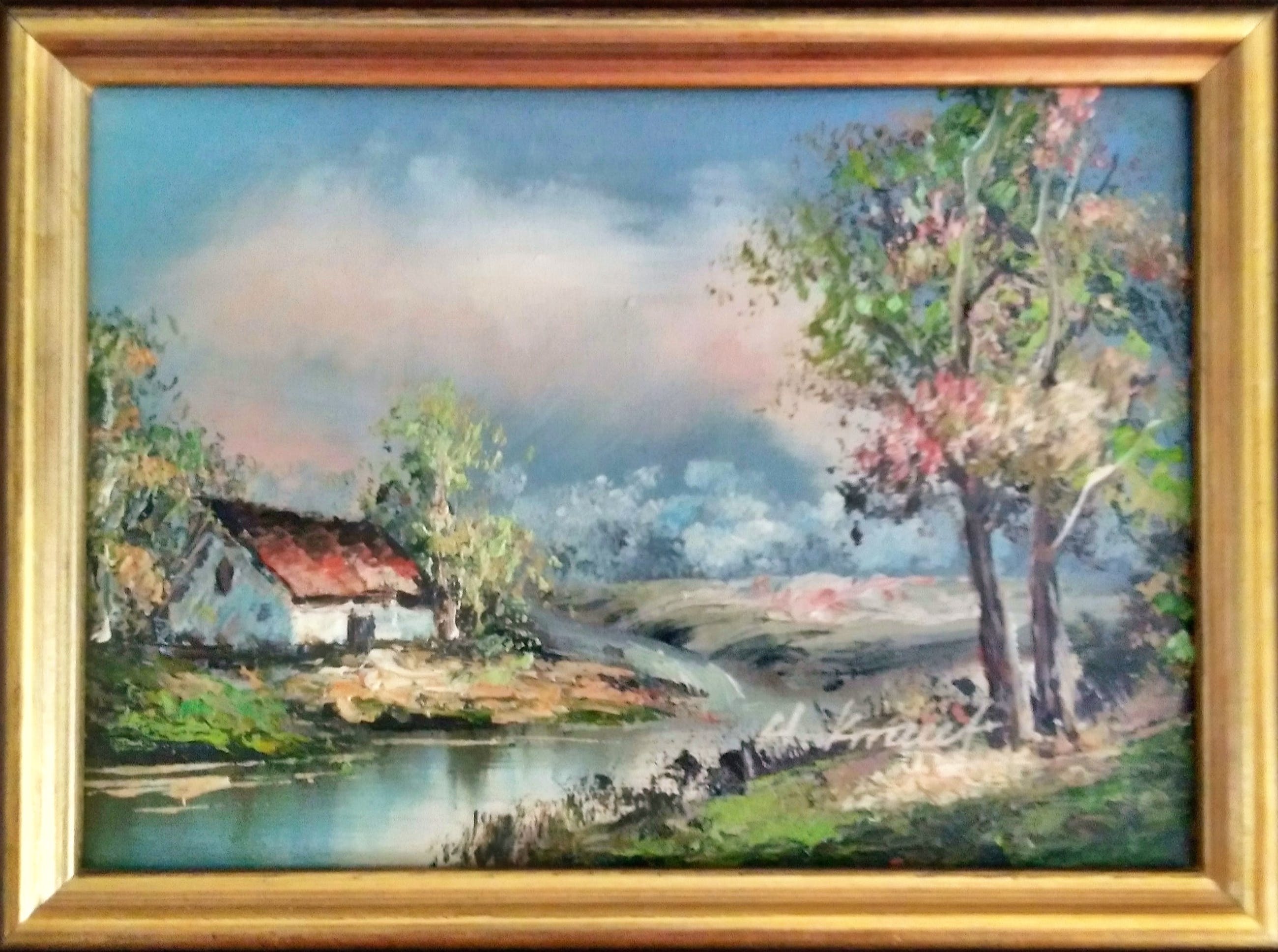 Prachtig olieverf schilderij in mooie houten