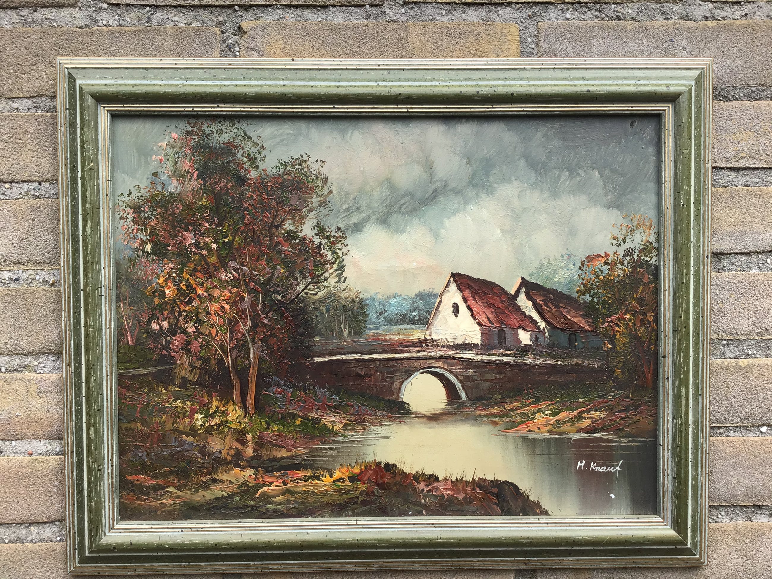 Mooi landschapje van Henner Knauf (1901-1976). Duitse landschapsschilder. Keurig ingelijst. Mankeert niets aan.
