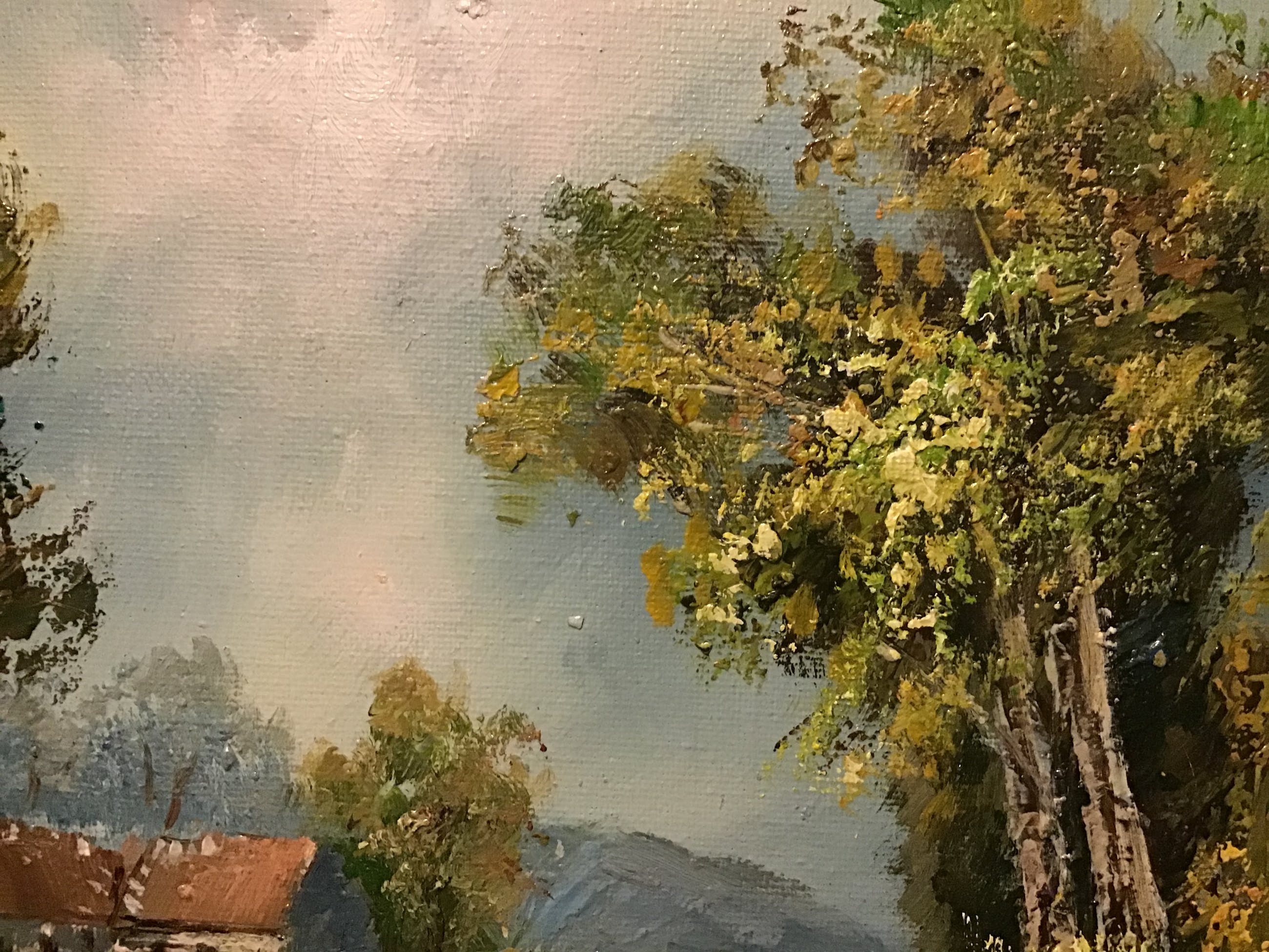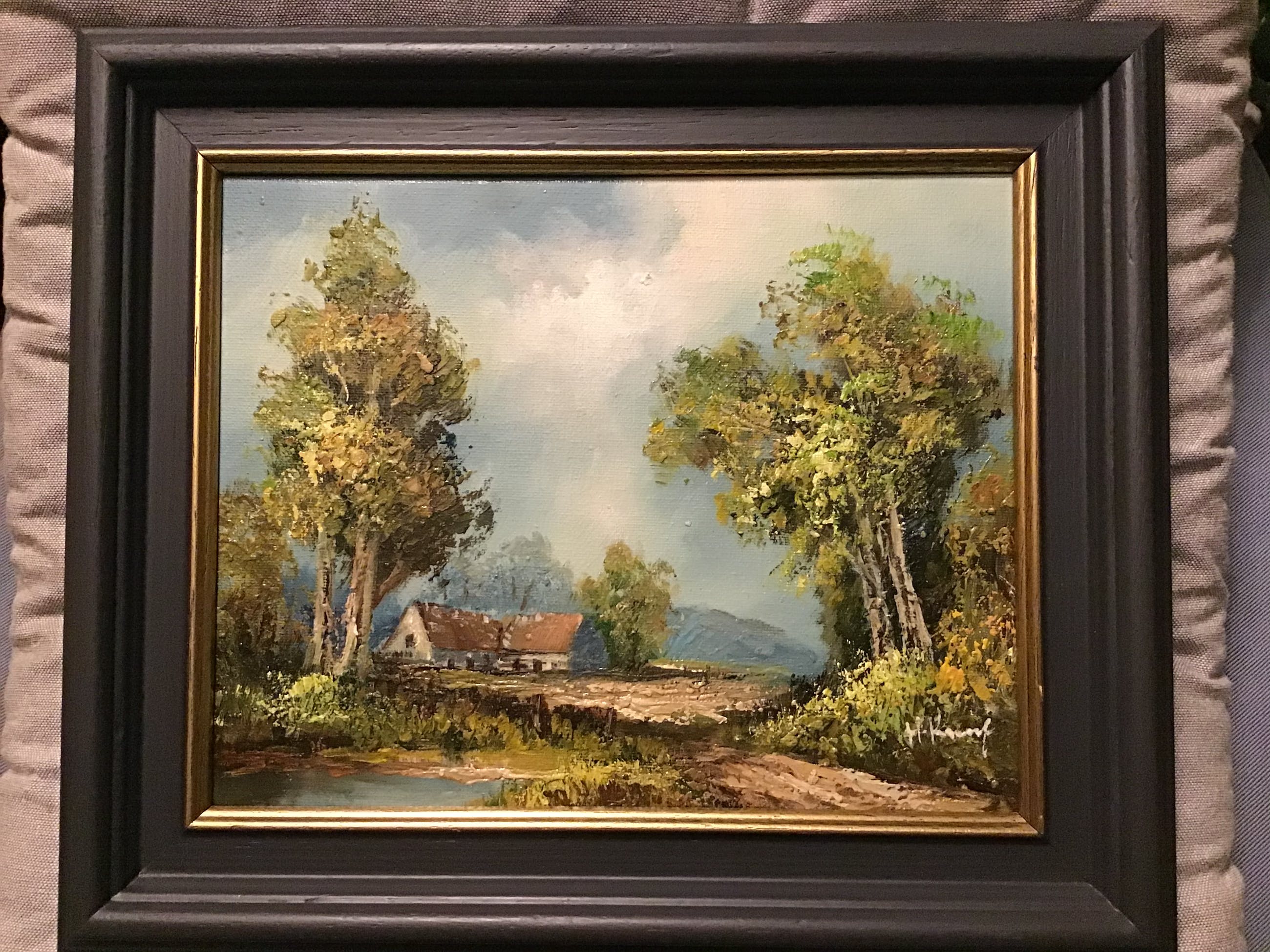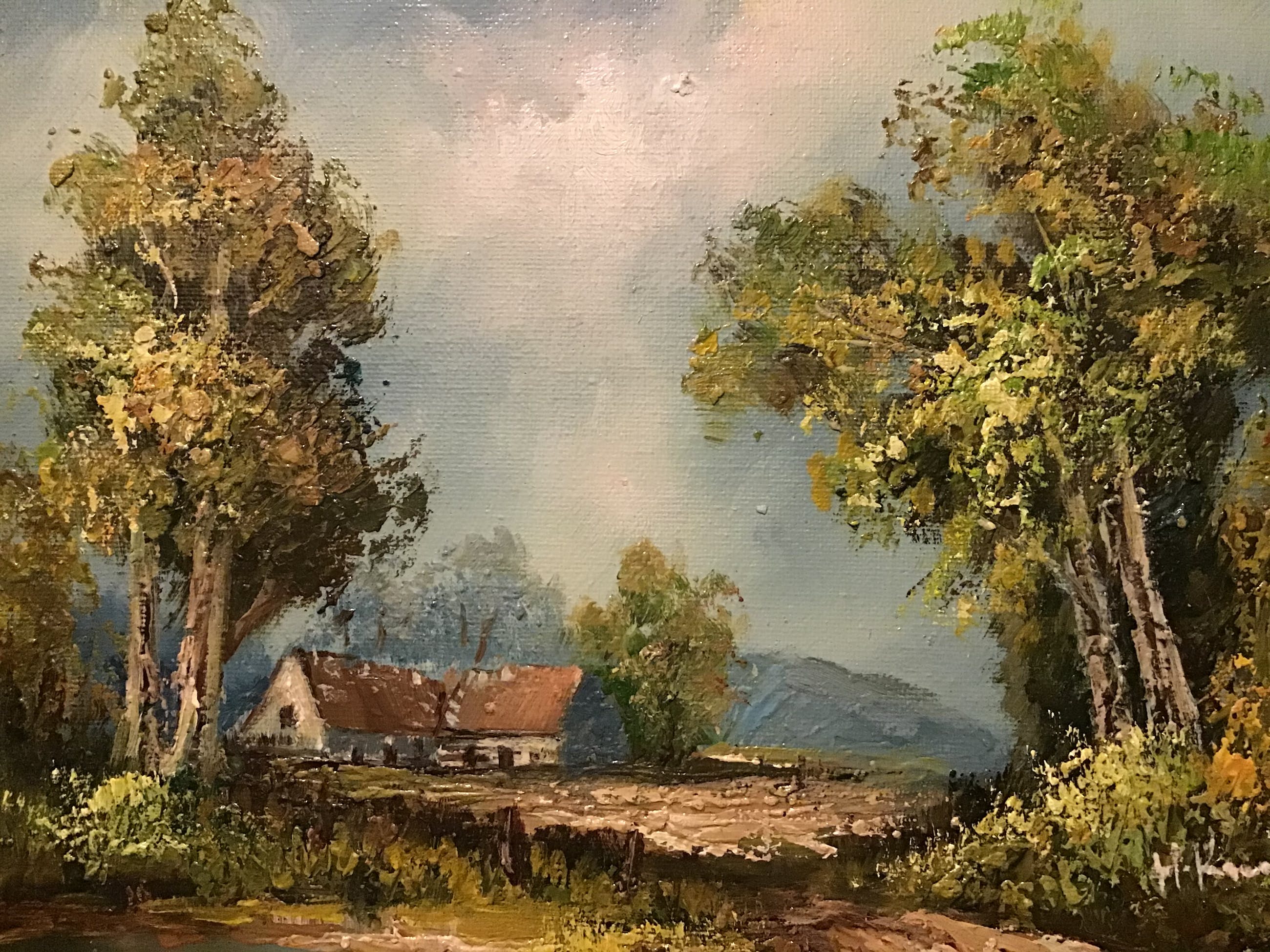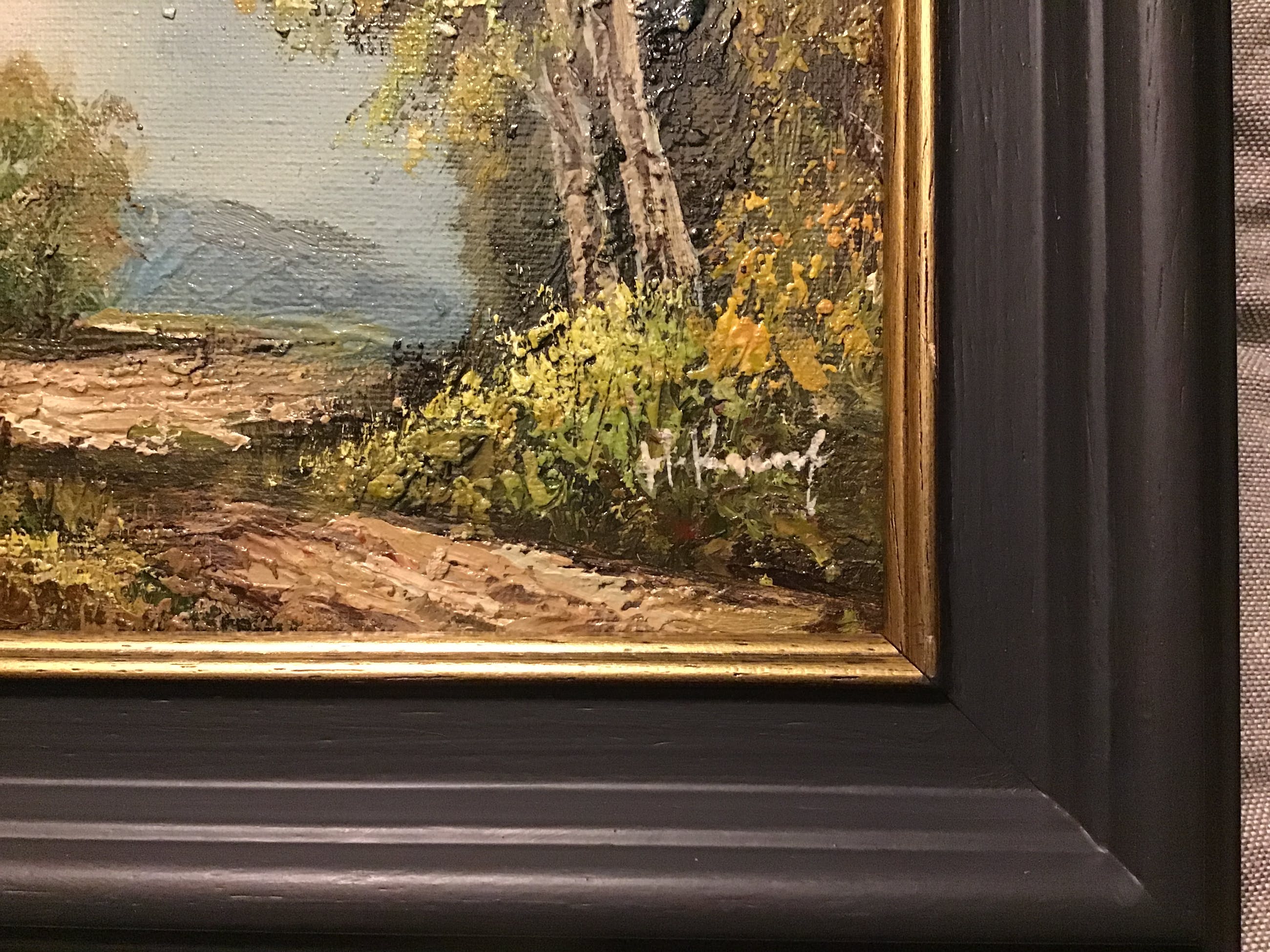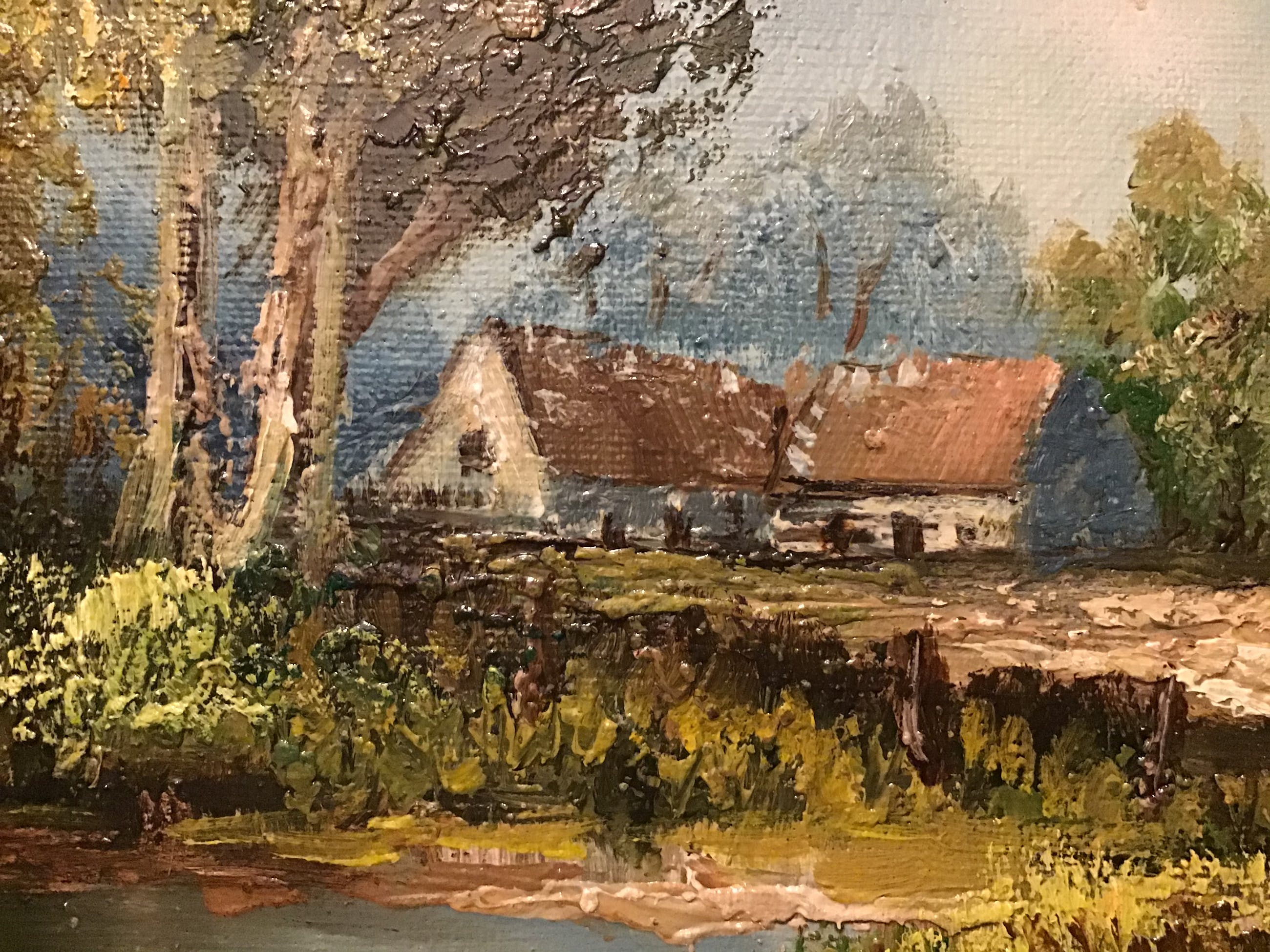 Vlot geschilderd eenvoudig landschapje van Henner(Heinrich) Knauf. Duitse genre- en landschapsschilder uit de vorige eeuw.