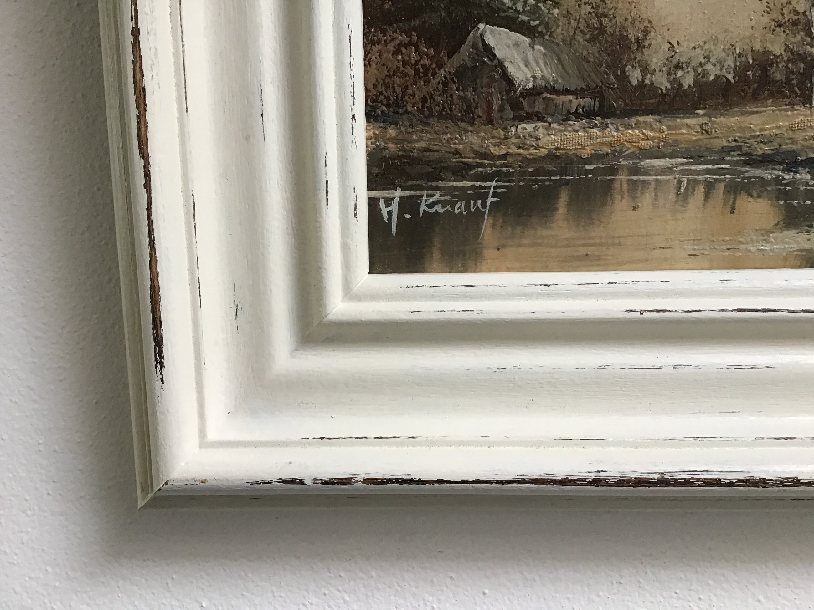 Lief klein werkje van Henner Knauf, duitse genre- en landschapsschilder. In perfecte conditie in een lijst die een beetje past in het modebeeld van nu.