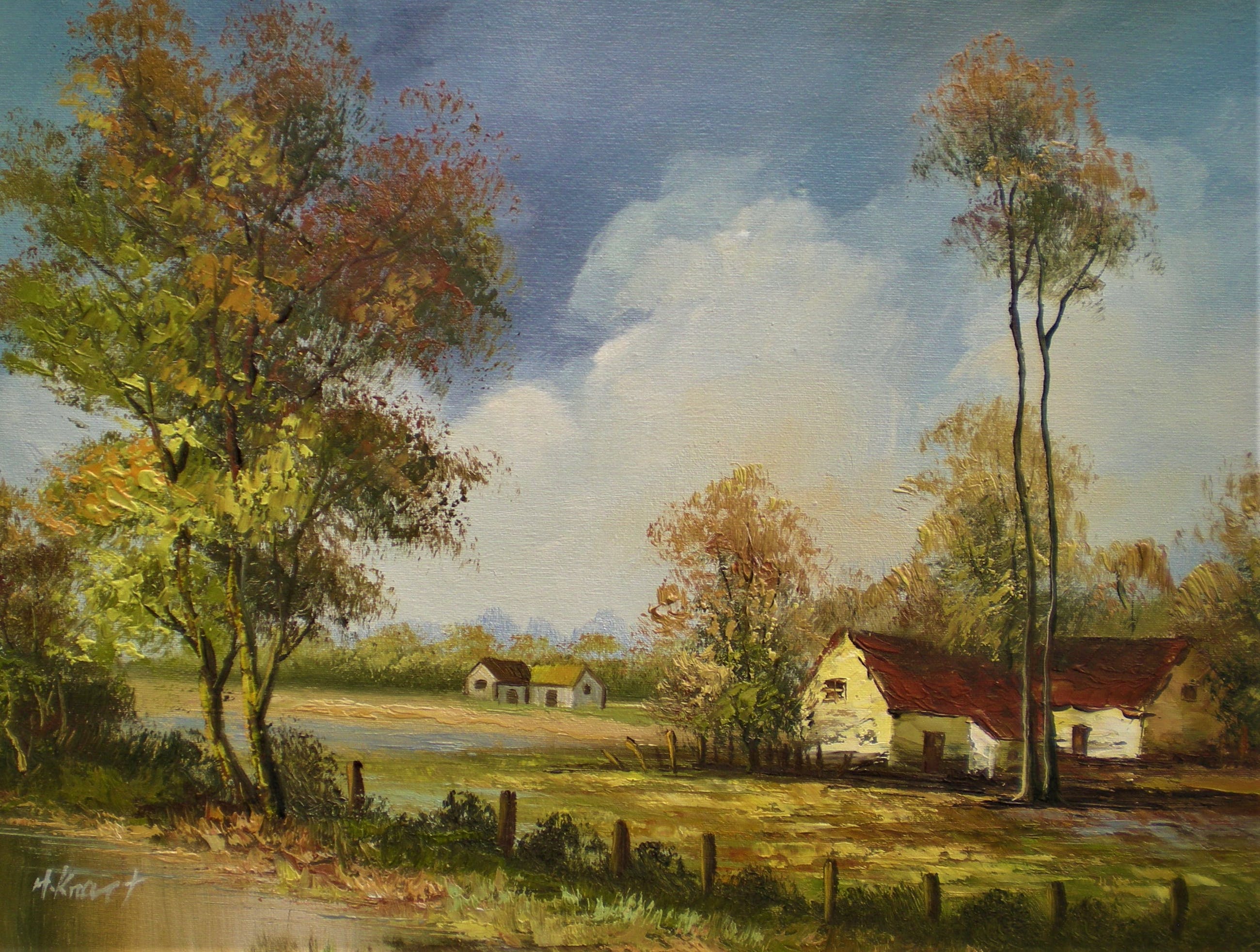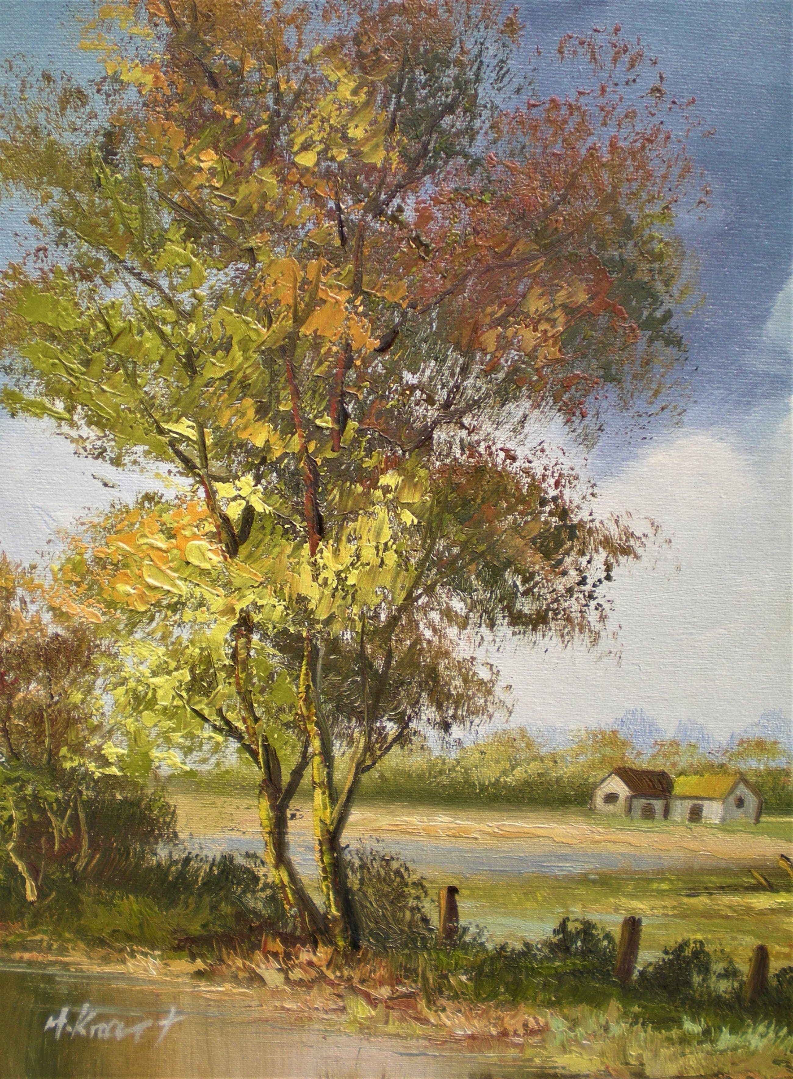 Henner , (Heinrich) , Knauf. Knauf was een Duitse expressionistische landsschapschilder. (1901 - 1971). Geboren in Zelle en gestorven in Treysa. (Duitsland).