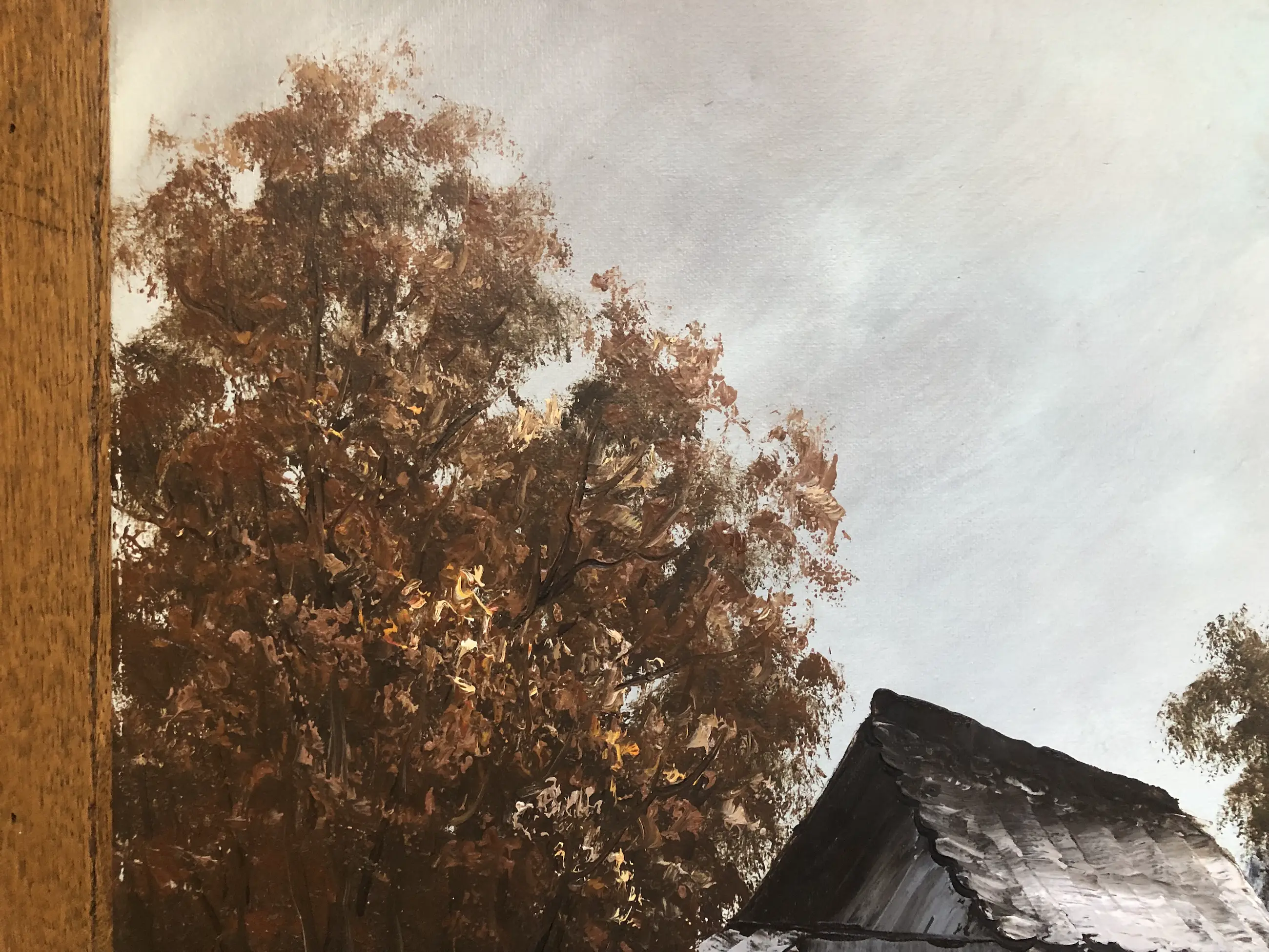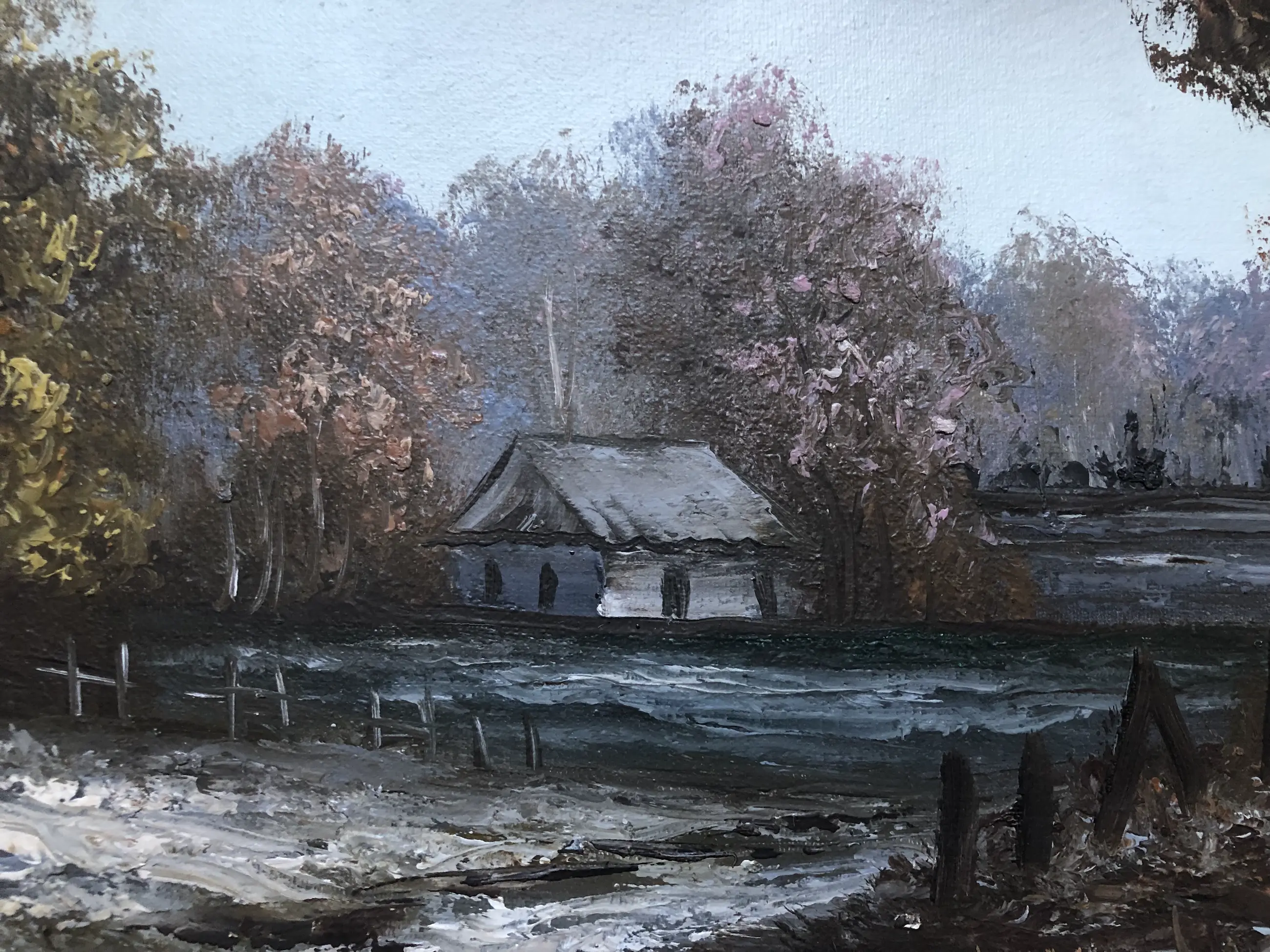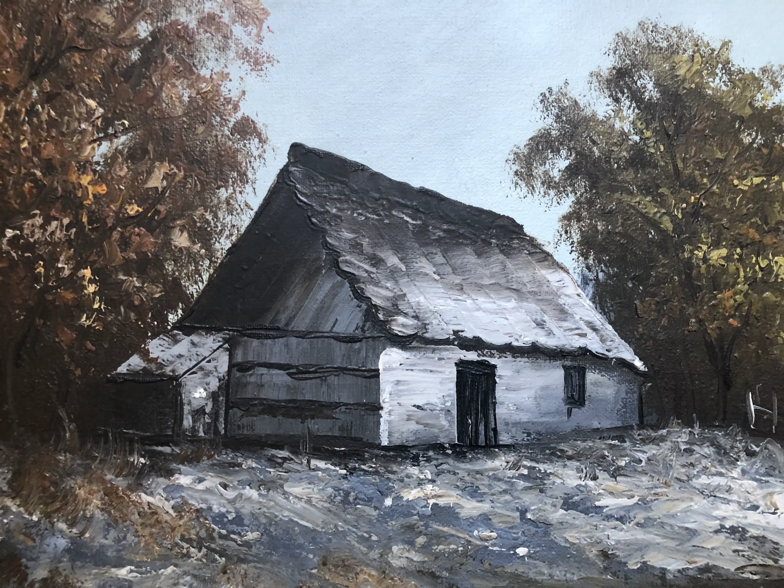 Zeer verfijnd olieverf schilderij met prachtig winters landschap met boerderij, gesigneerd door H. Knauf.
