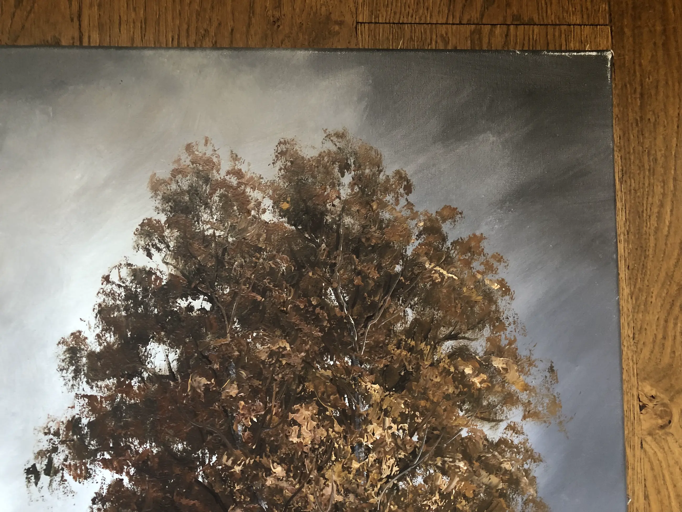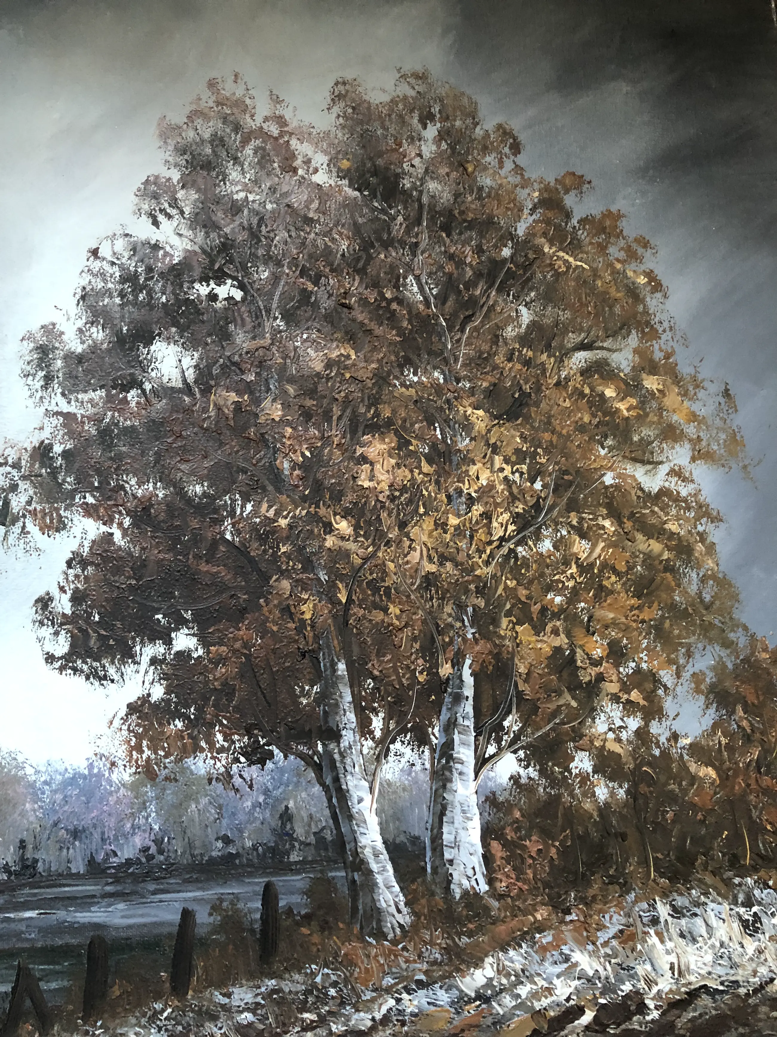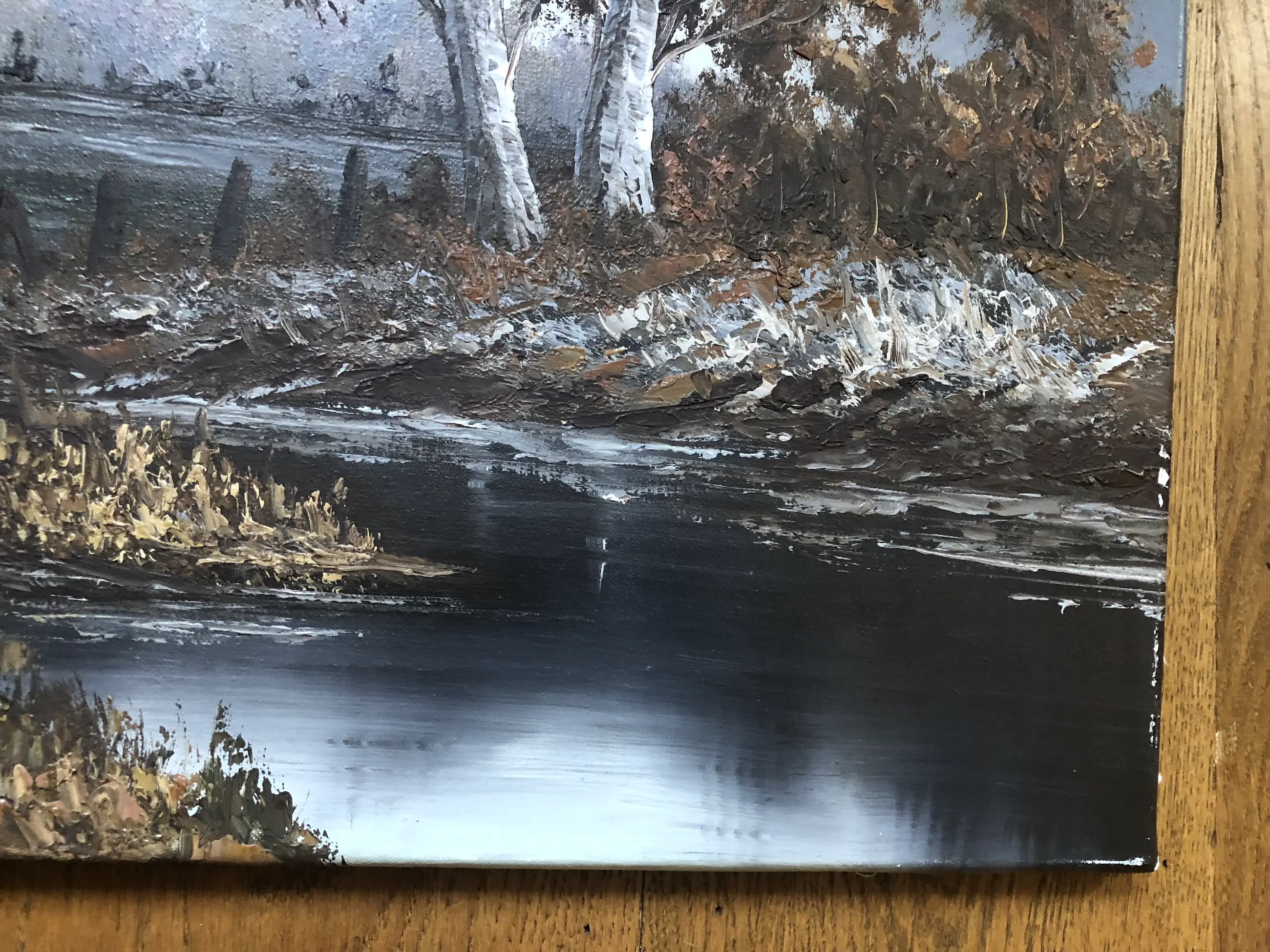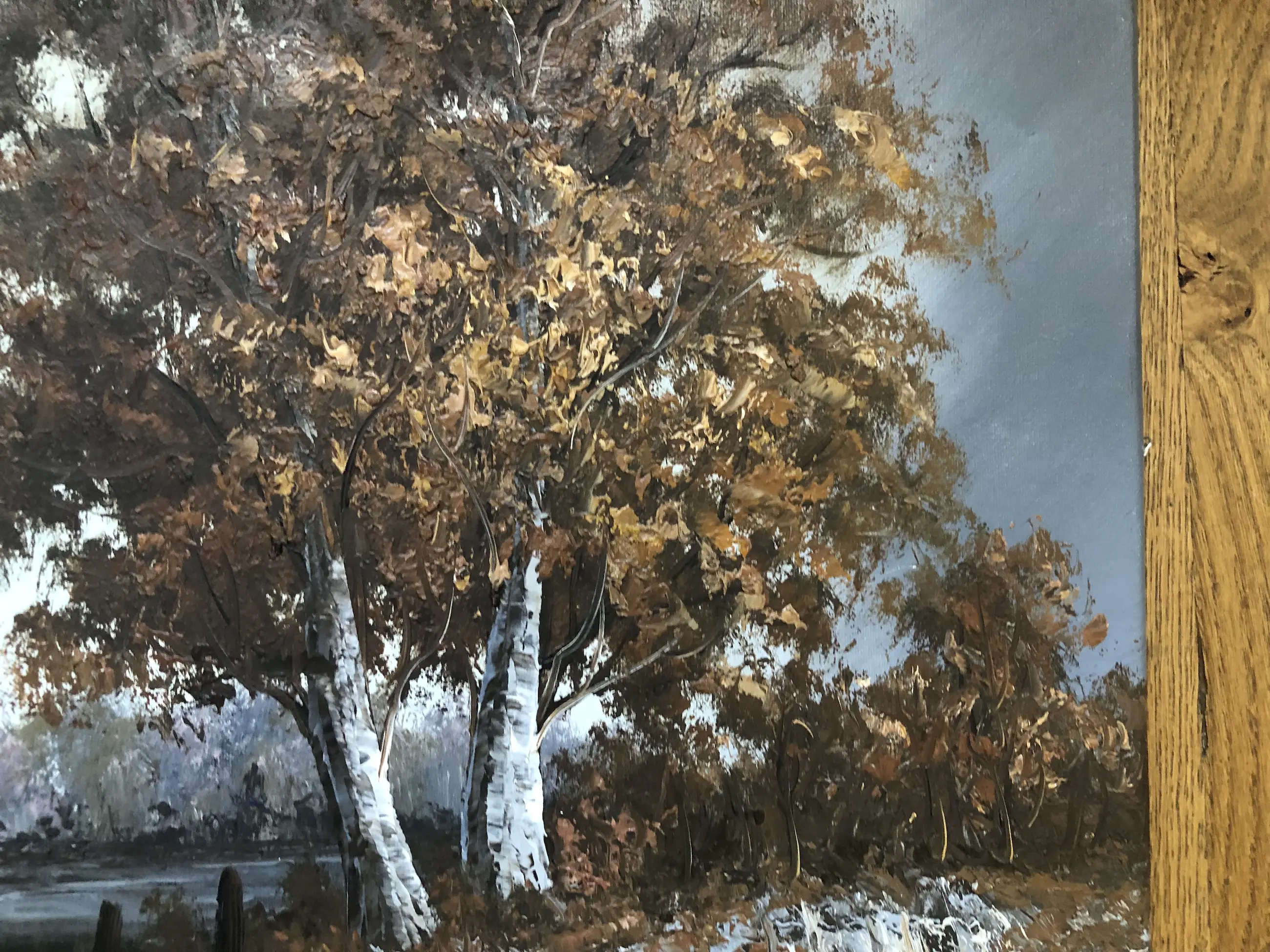 Zeer verfijnd olieverf schilderij met prachtig winters landschap met boerderij, gesigneerd door H. Knauf.
