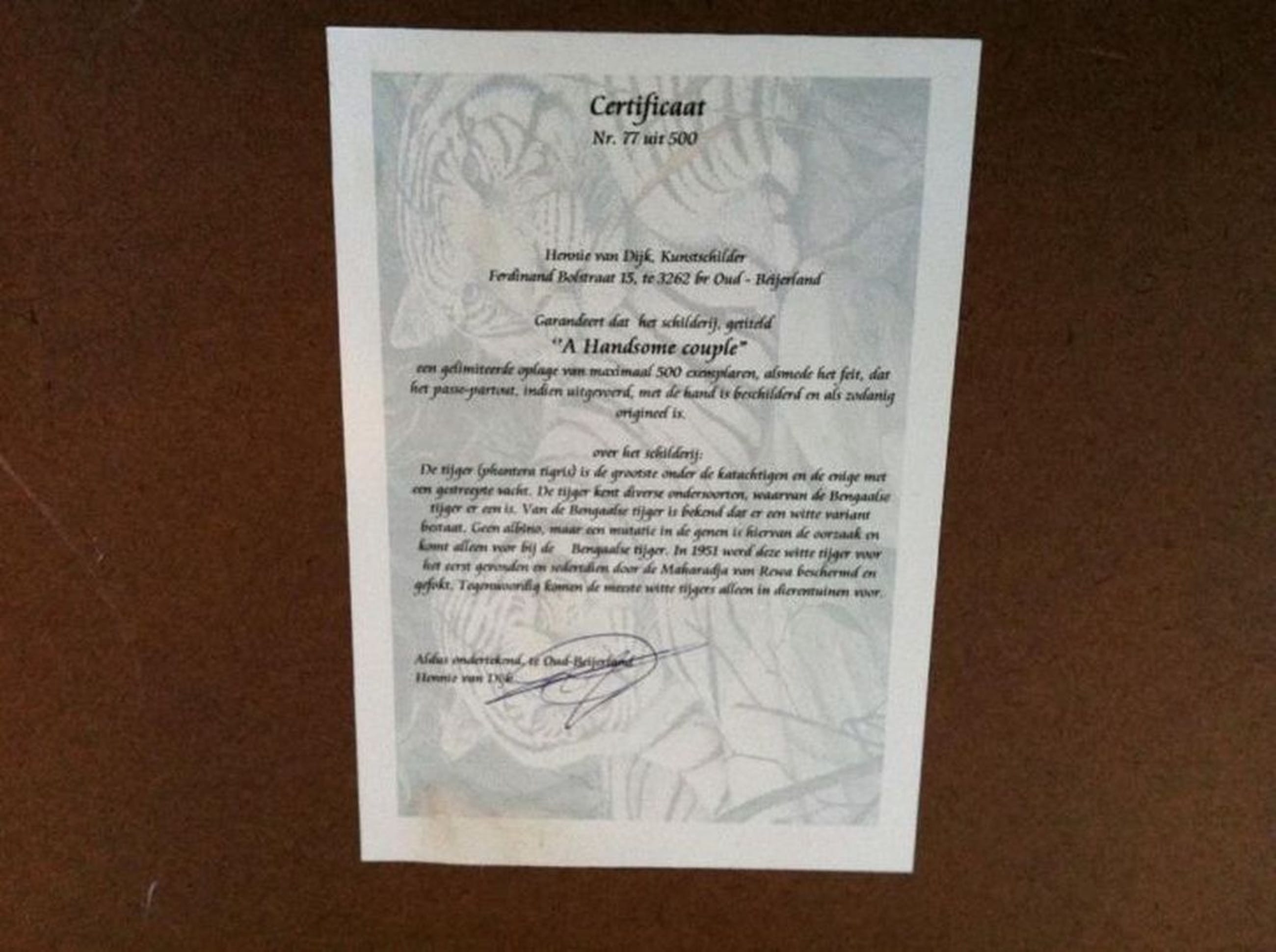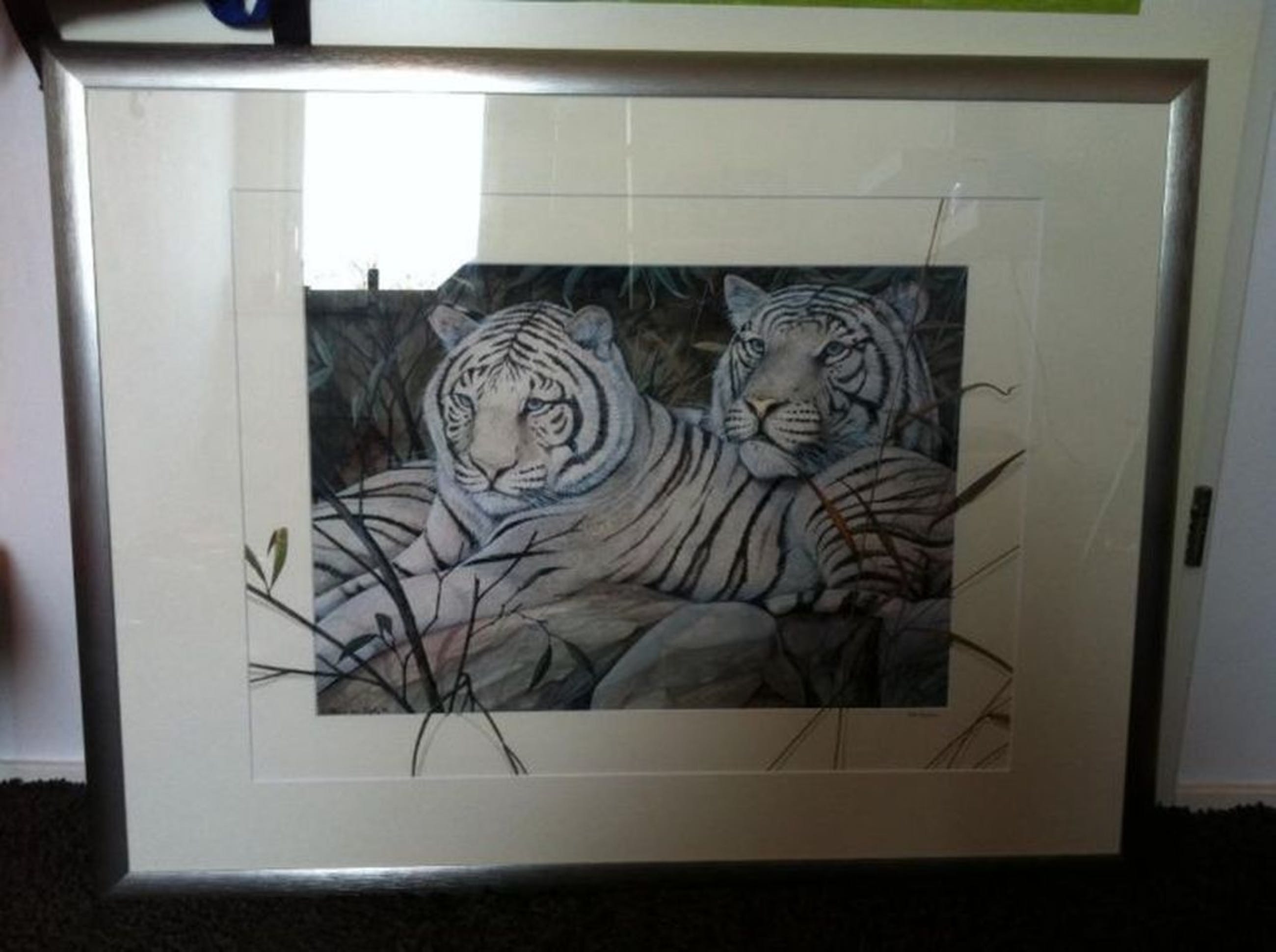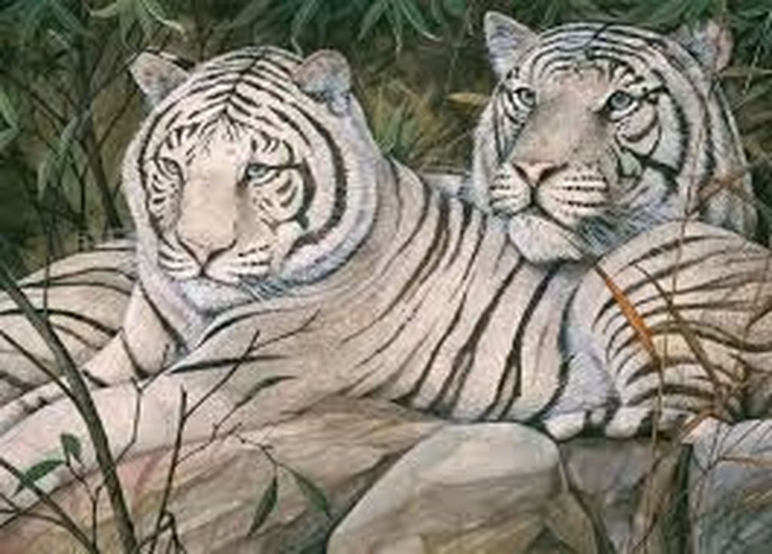 Hennie van Dijk Titel " A Handsome Couple " Aquarel op Board Witte Bengaalse Tijgers