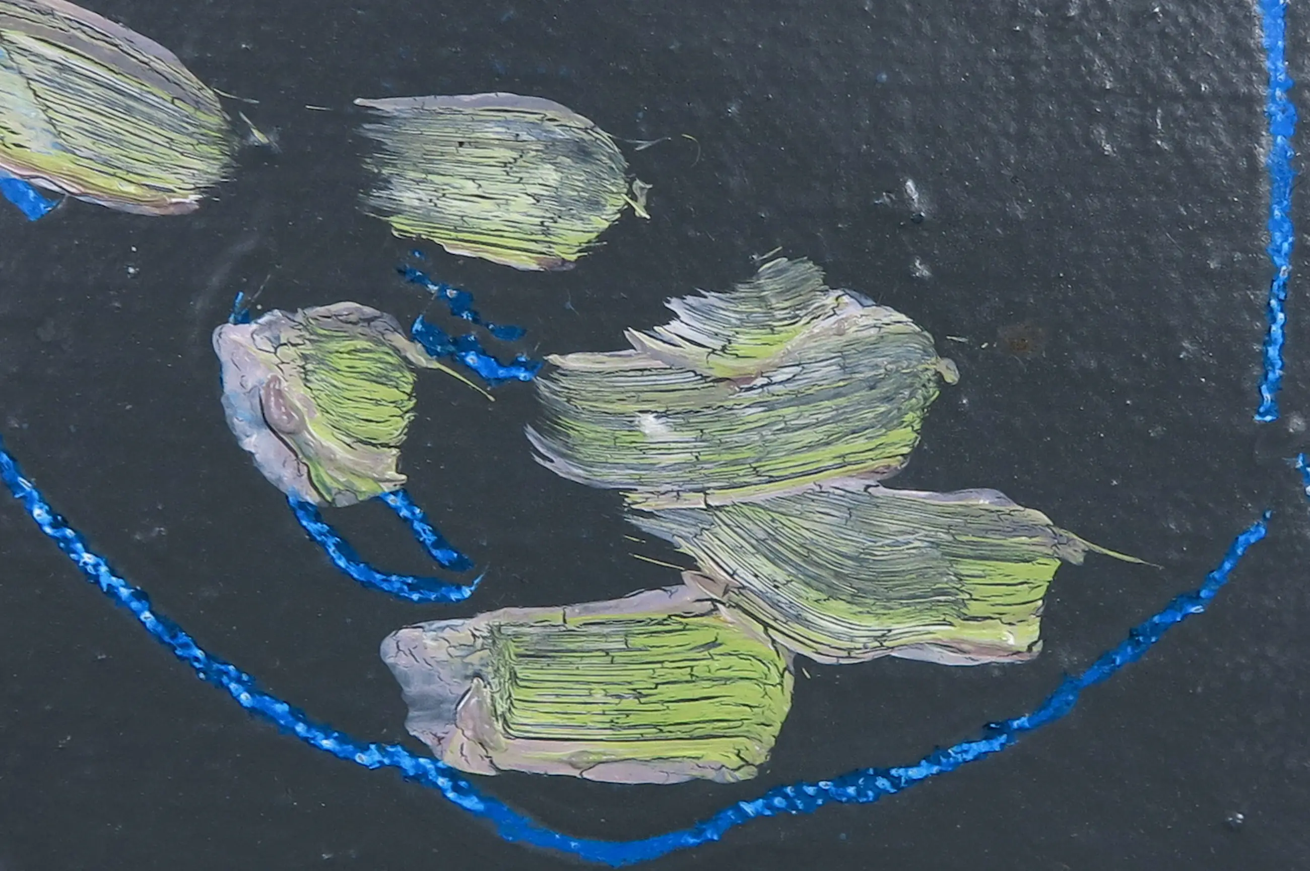 | Het werk is in goede staat, maar heeft op enkele plekken wat lichte craquelé en wat slijtagesporen aan de randen van het doek. (Zie detailfoto's.) | |||||||||