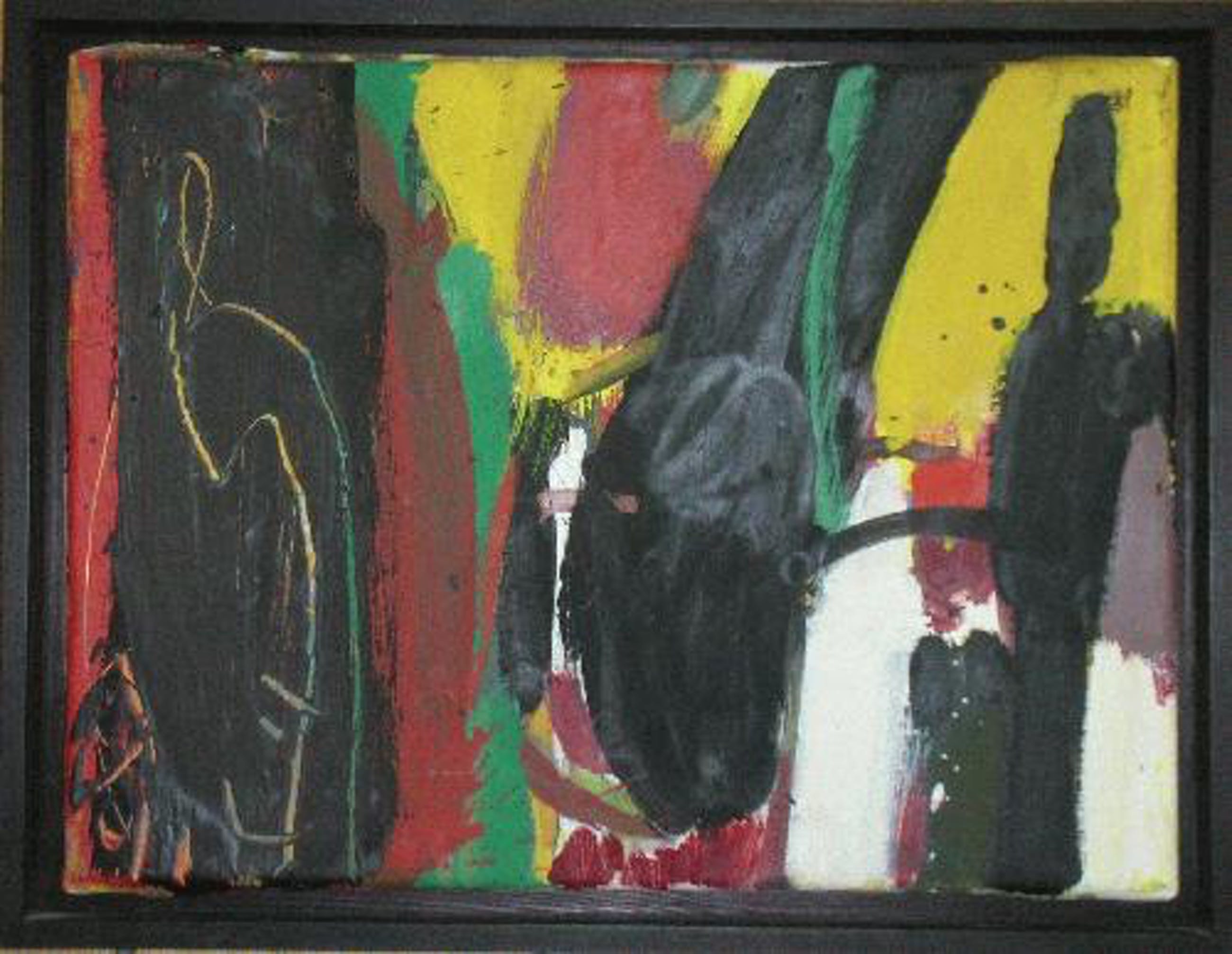 Henning Kürschner, geboren 1941, lebt in Berlin. Original Öl auf Leinwand 1995, verso signiert und datiert "Kürschner '95, Berlin". Titel: "TRENNENDES SCHWARZ". In schwarz lackiertem Holzrahmen montiert. Größe: 30 x 40 cm. Sehr guter Zustand. Verso Aufkleber der Galerie Boisserée, Köln. Versandkosten: 12,50 Euro innerhalb Deutschlands (versichert bis 2.500 Euro). Zahlung: Überweisung oder Barzahlung bei Abholung, European bidders: IBAN and BIC, bidders from overseas: PAY PAL. Bitte beachten Sie meine anderen Auktionen, ich biete weitere interessante Arbeiten namhafter Künstler an! Aus Privatsammlung. Privatverkauf. Wegen der neuen Gesetzesbestimmungen erfolgt die Auktion unter Ausschluß jeglicher Gewährleistung, Garantie und Rücknahme. Laut dem neuen EU-Recht muß dieser Zusatz unter jeder Online-Auktion stehen, ansonsten haftet der Verkäufer auch als Privatperson ein ganzes Jahr für die verkaufte Ware.