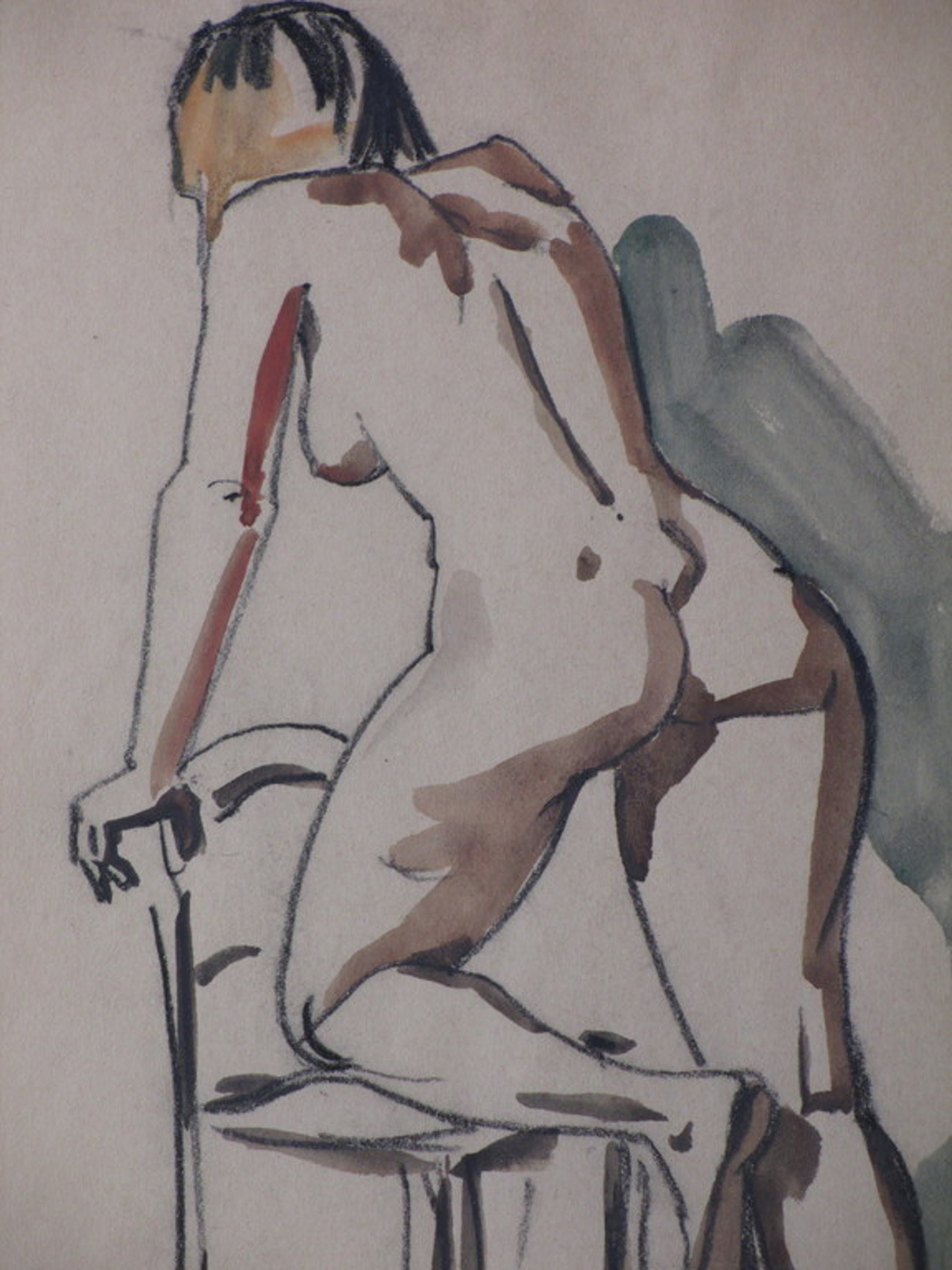 Voorstelling van een vrouwelijk naakt, leunend op een stoel