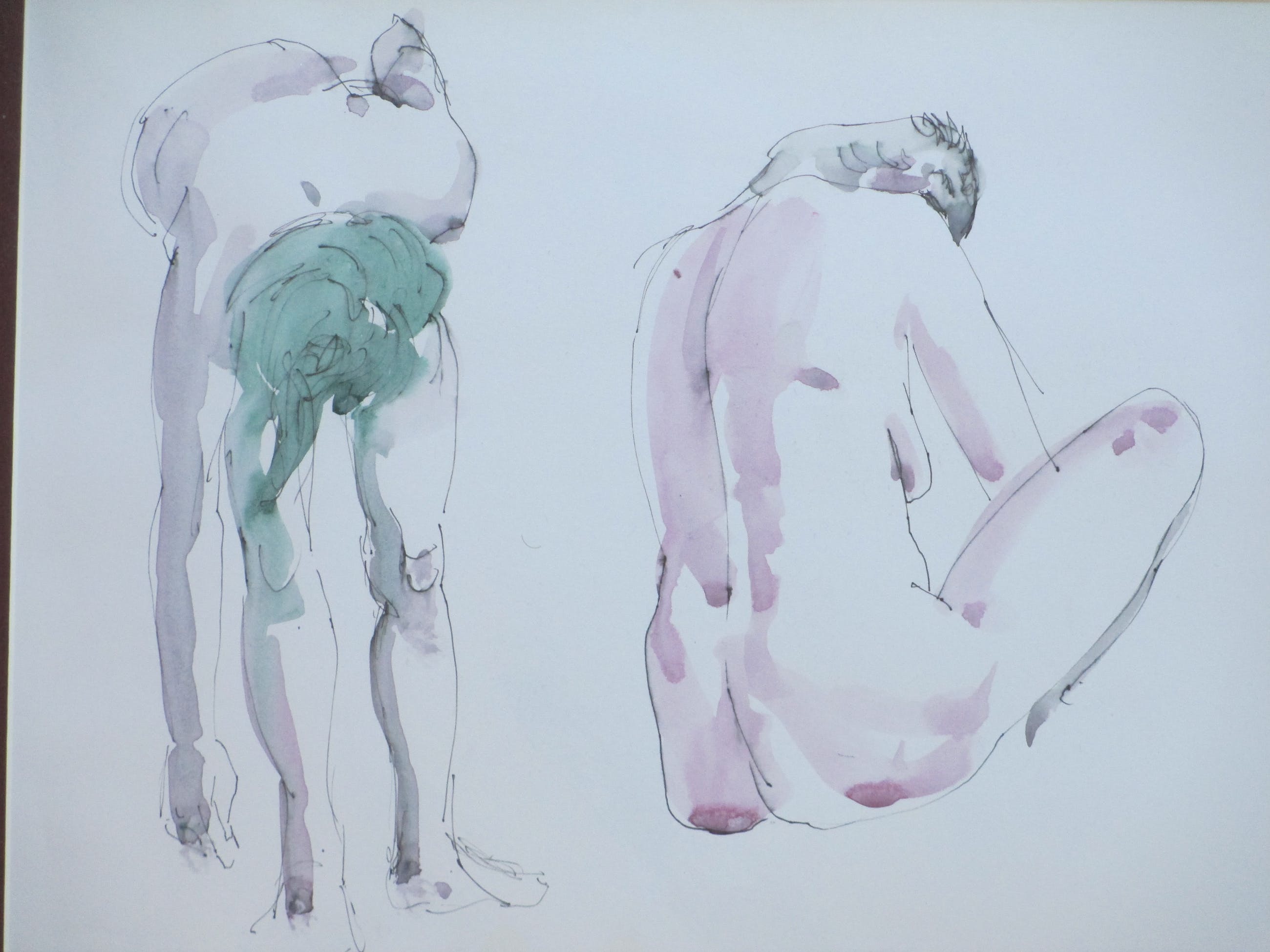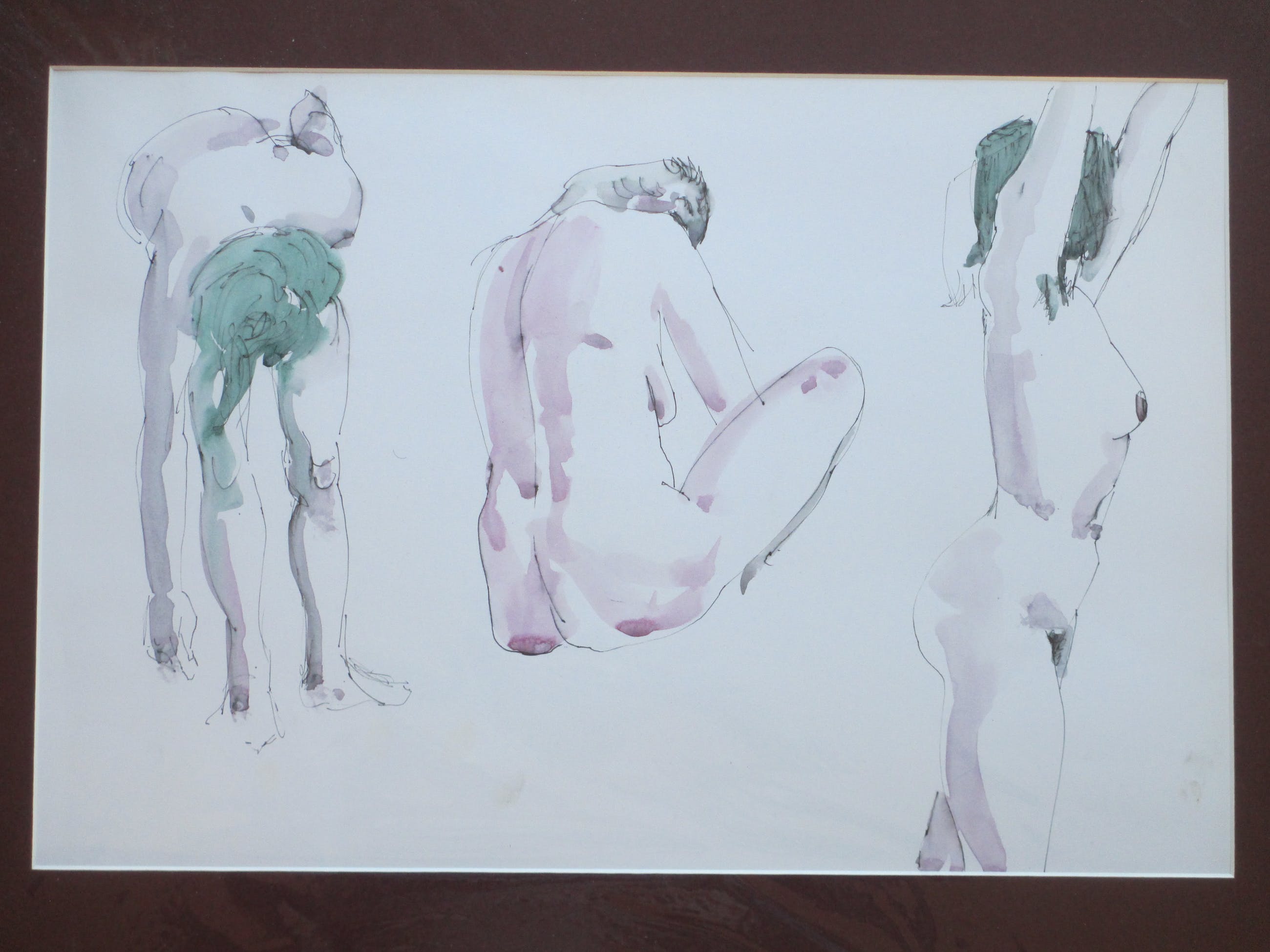 Penseel/inkttekening door Henny RagetliVoorstelling van studies in naaktIn passepartoutAteliersticker op achterzijdeAuthenticiteit volledig gegarandeerd