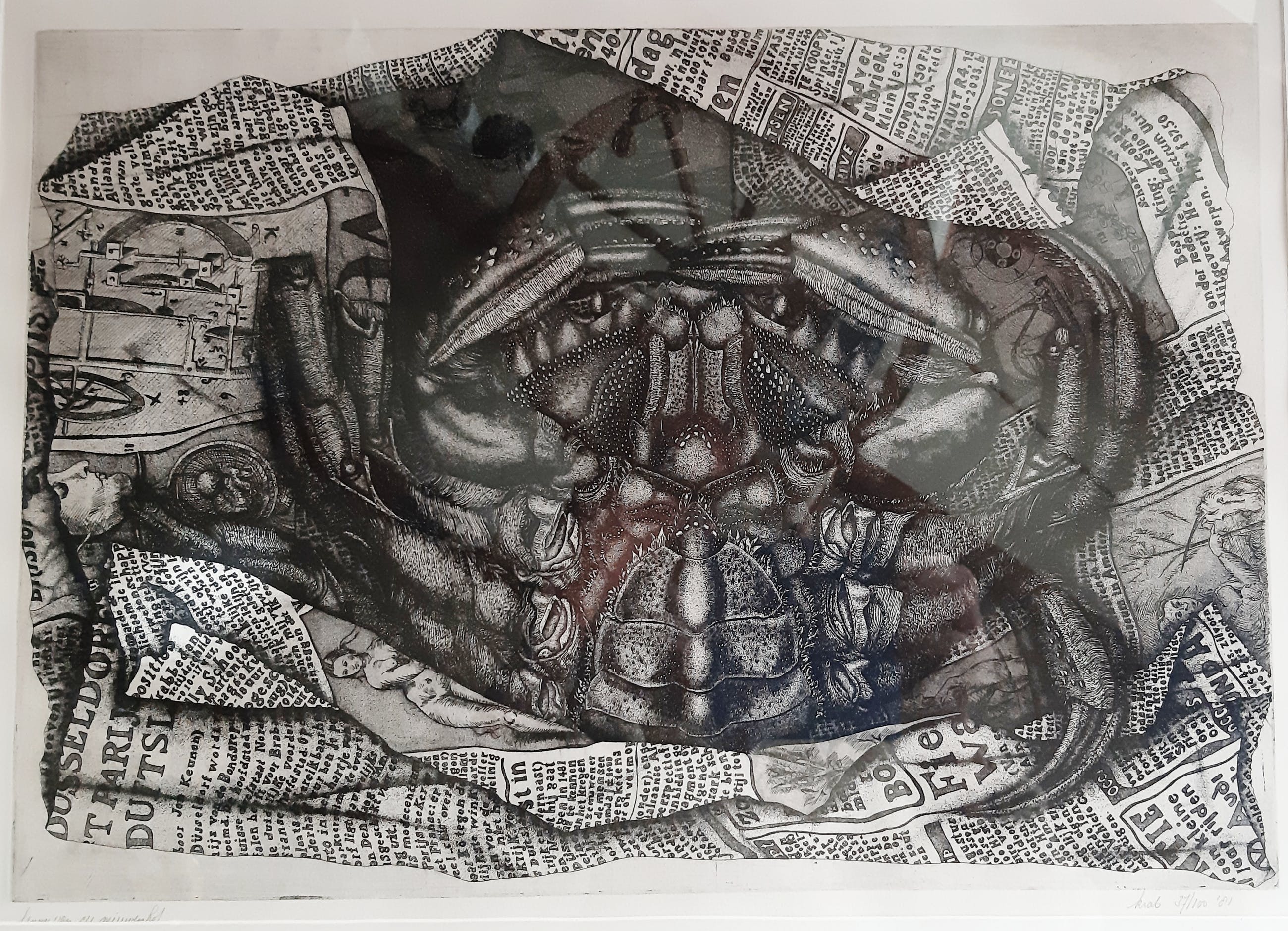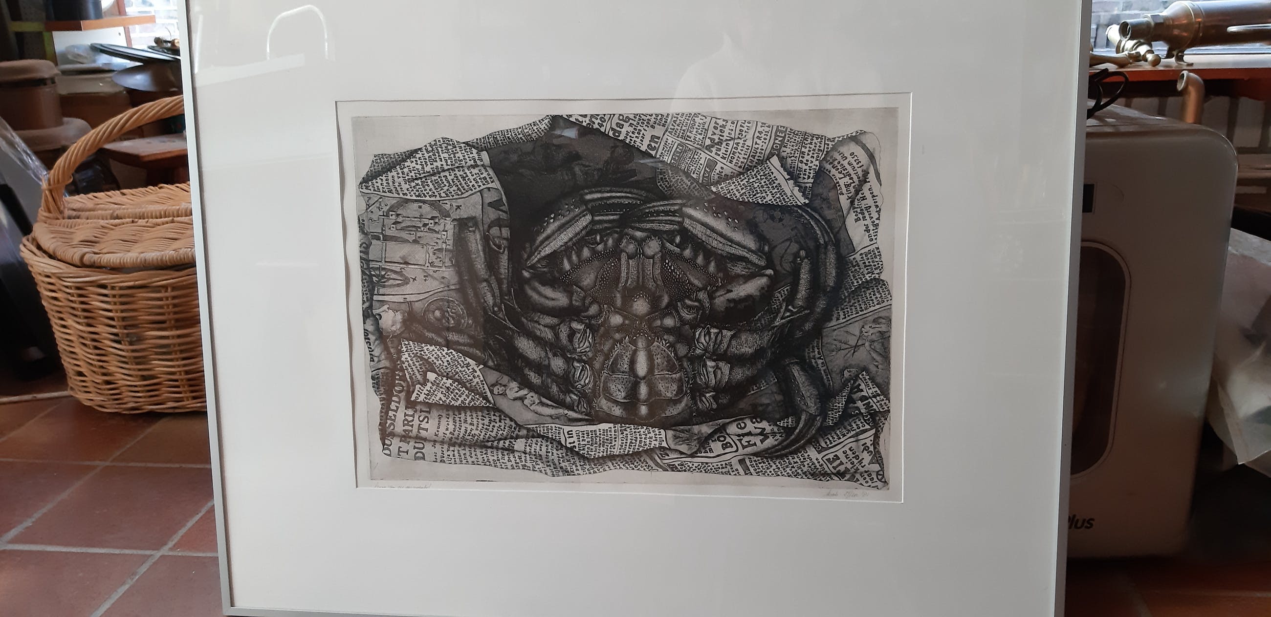 Ets nummer 37 van de 100, die er van zijn gemaakt. Zeer expressief van karakter. Het stelt een Krab/Kreeft? voor.