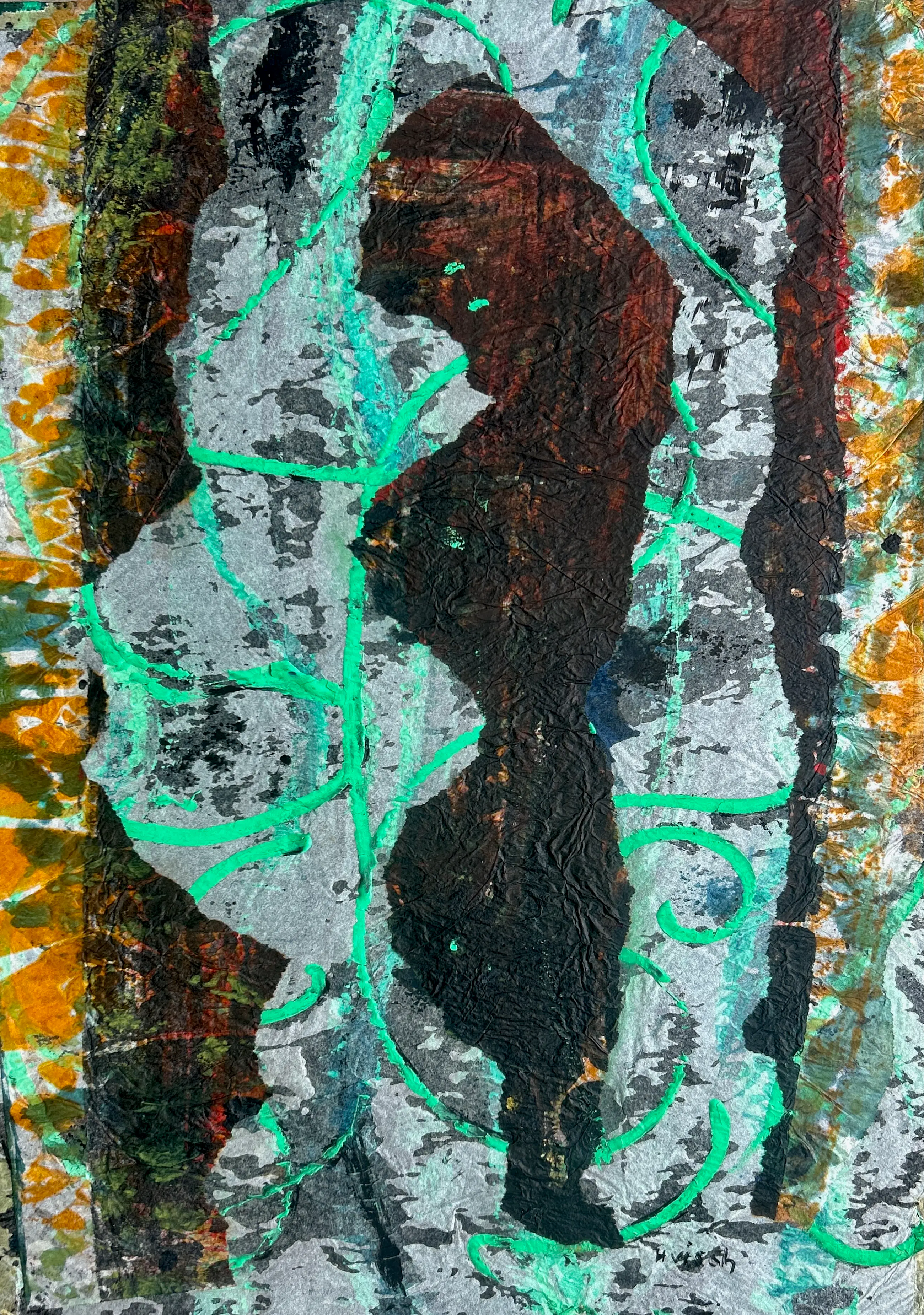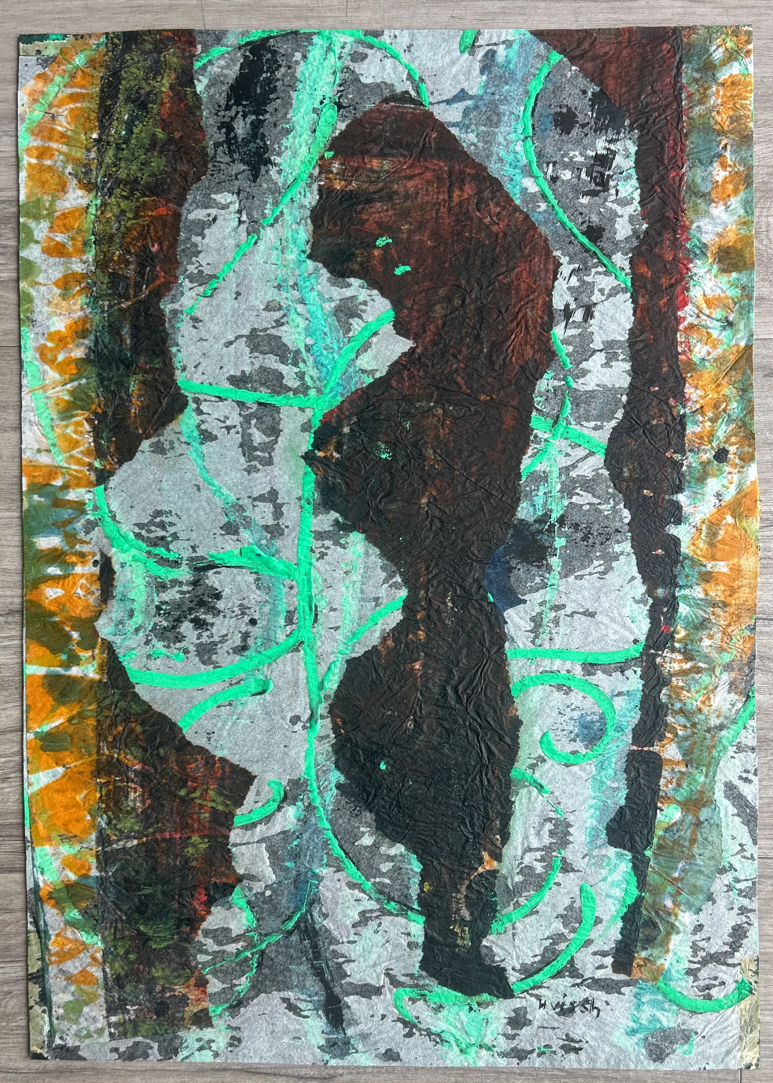 Conditie: zeer goed. Is ingelijst geweest zie foto's rand vel. Origineel werk gemengde techniek gouache en collage. Wordt zorgvuldig verpakt en verzekerd verzonden.