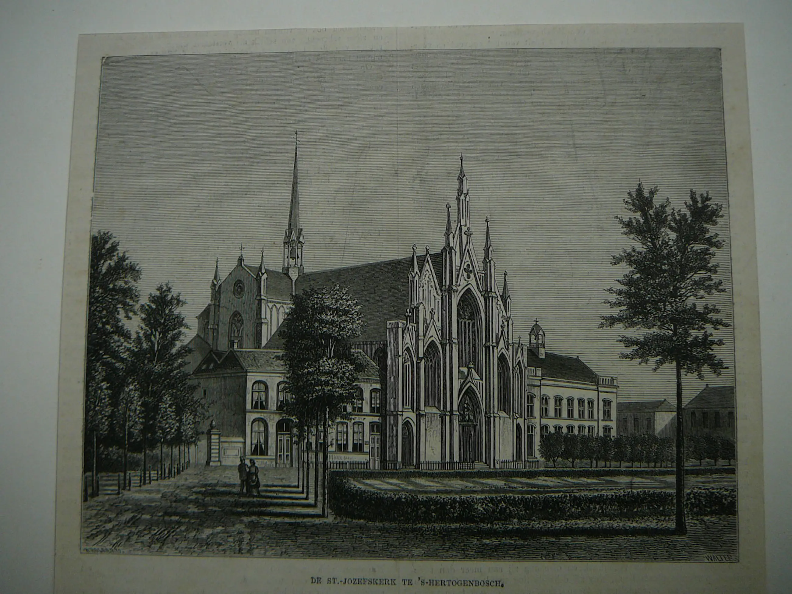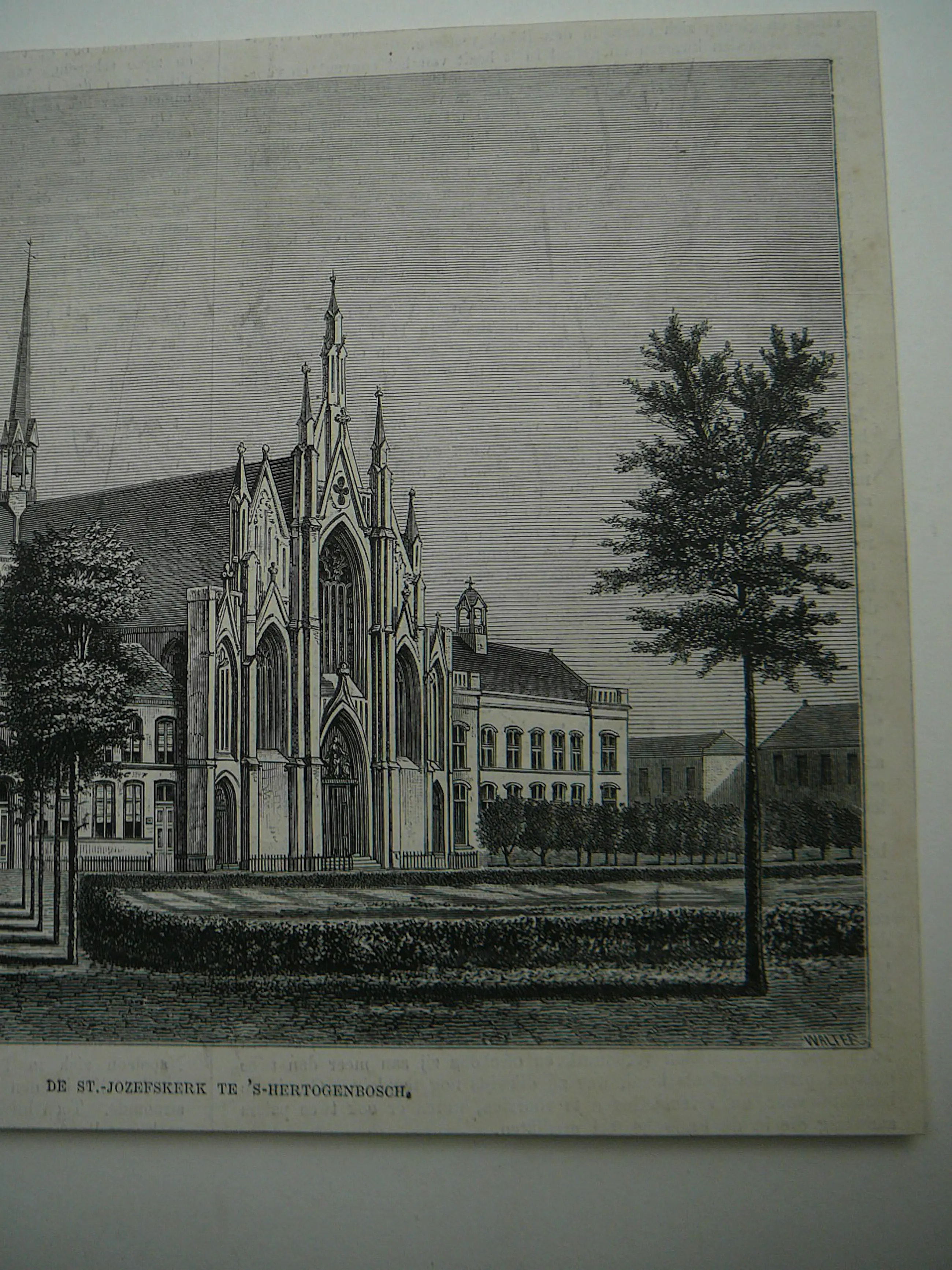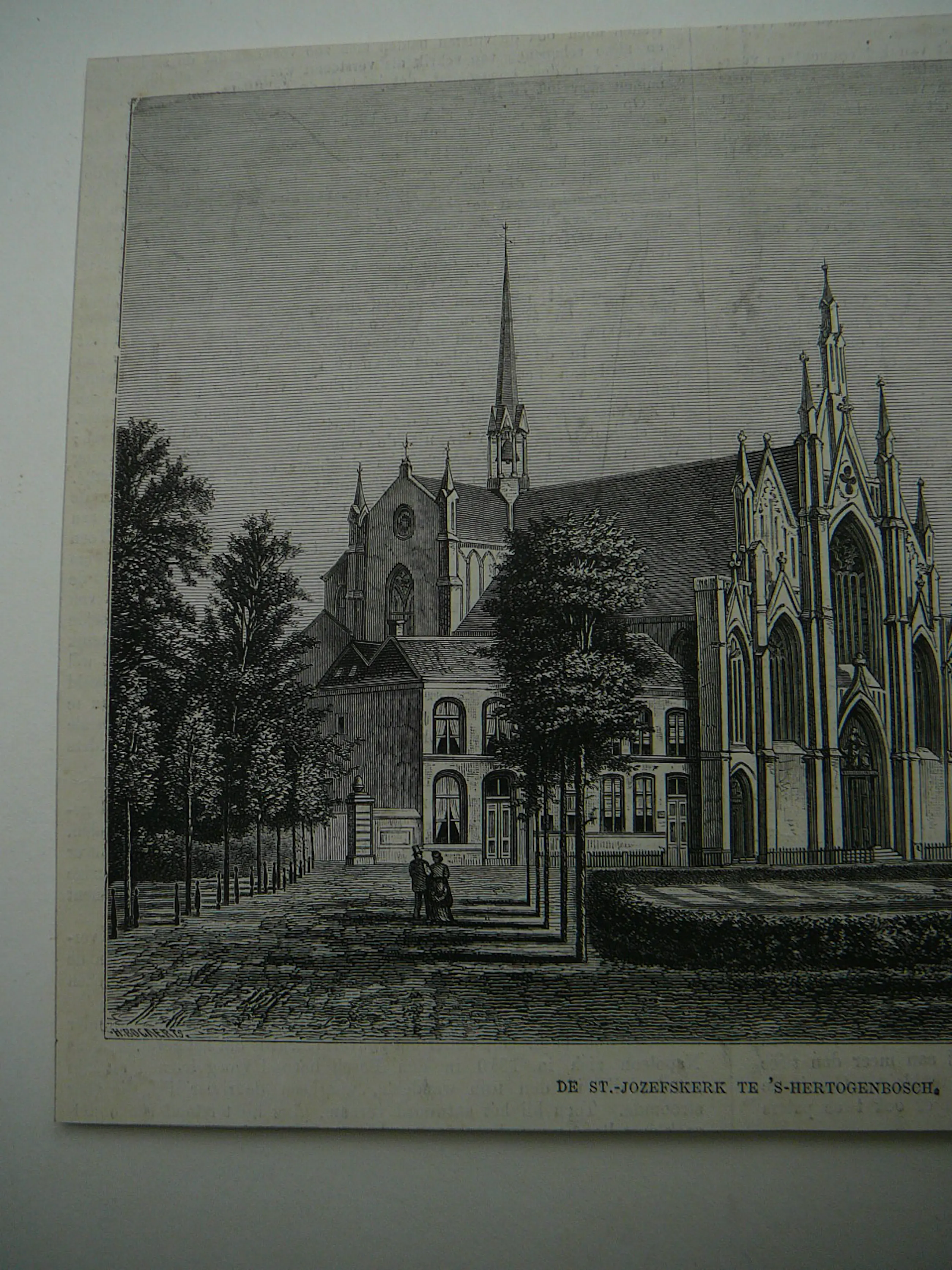 Mooie houtgravure van De ST-JOZEFKERK te s-Hertogenbosch door Henricus Adrianus (Henri) Bogaerts ('s-Hertogenbosch, 18 november 1841 – Boxtel, 22 december 1902)