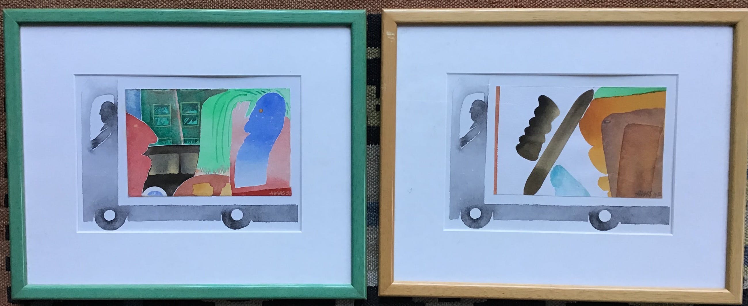 Henri de Haas 2 bijzondere collages/aquarelJaar 1992 en 1993Titel Paaseiland in de huiskamer en Verhuizing HondGesigneerd en gedateerdAfmetingen 26x32cm per stukConditie zeer goedWordt aangetekend verzonden