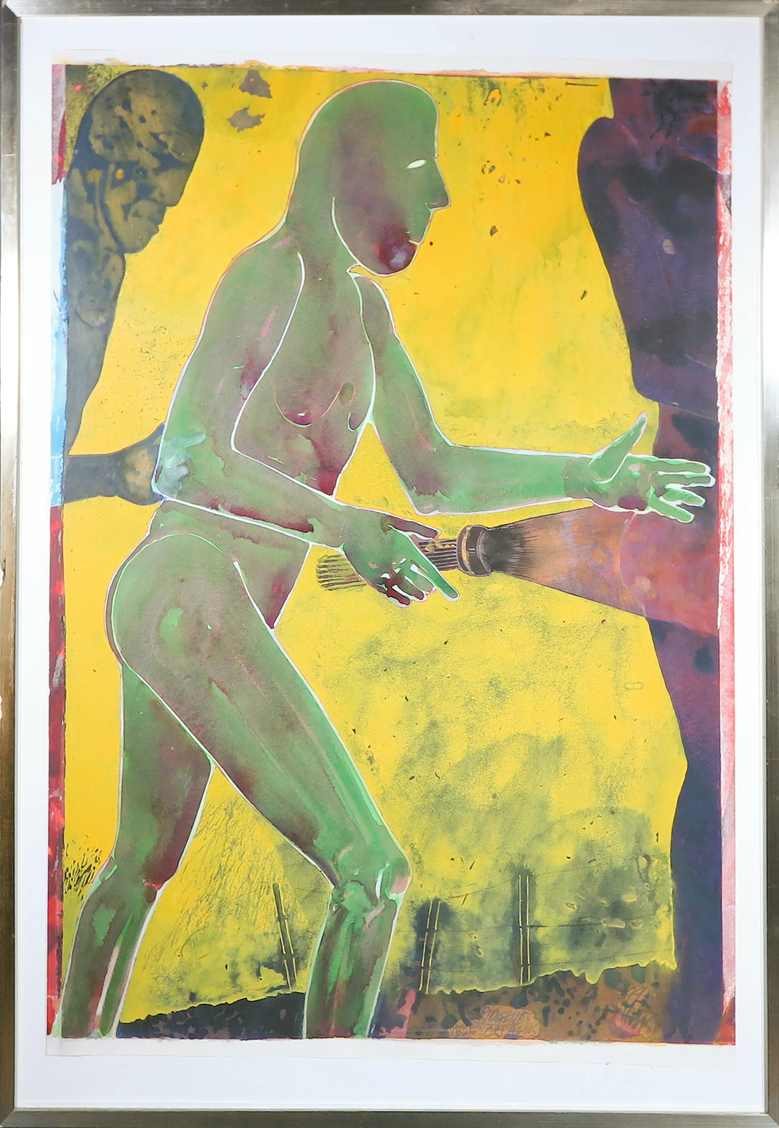 Het werk is in zeer goede staat. Er zitten enkel wat vuiltjes achter/op de glasplaat. Ook heeft de lijst wat lichte beschadigingen. (Zie detailfoto's)