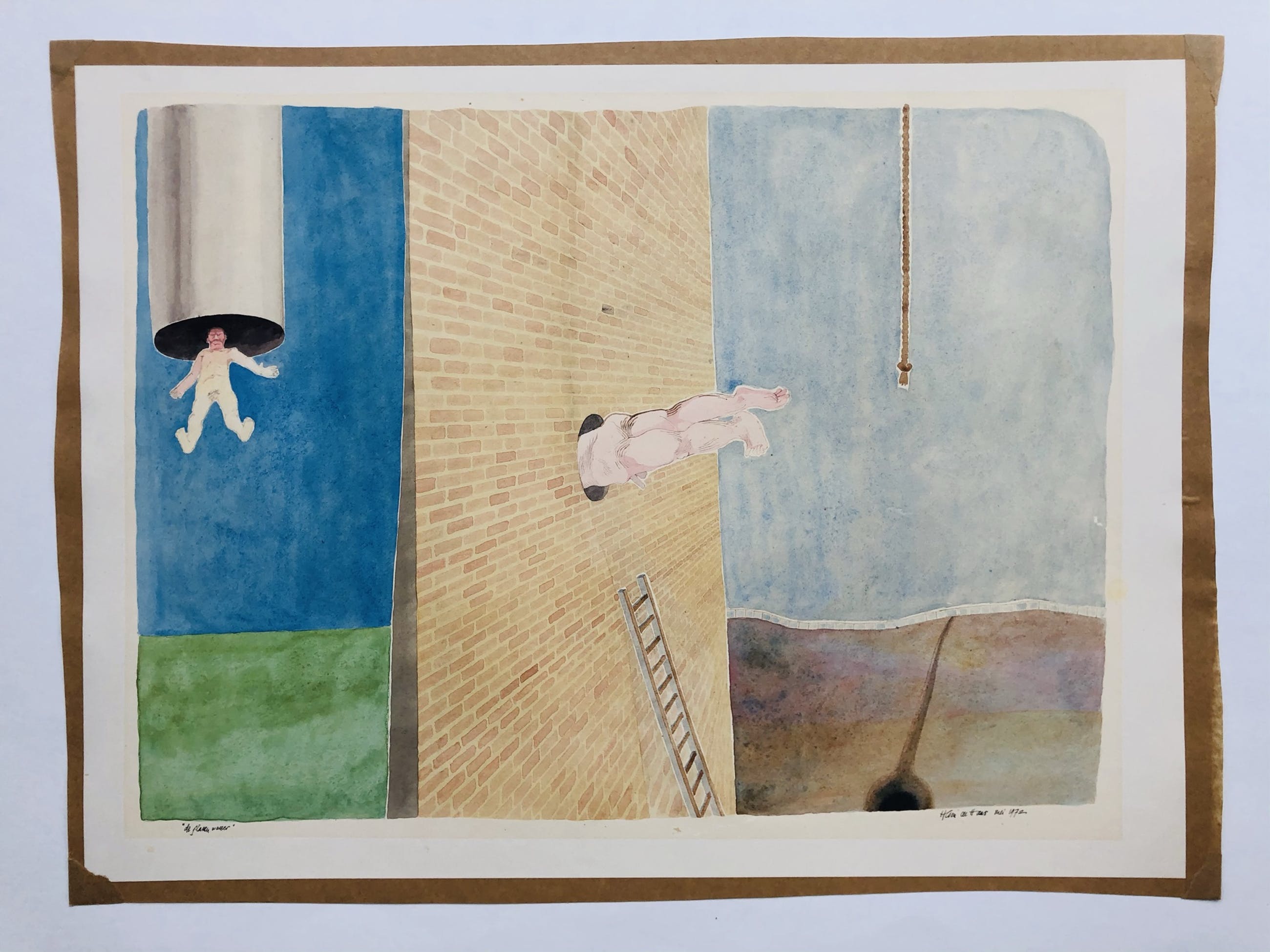 Prent zelf is zeer goed wel is aan de randen te zien dat hij is vastgeplakt geweest om op te spannen en onder passe partout gezeten heeft. Dit valt geheel buitenbeeld bij gebruik van een nieuw passe partout
