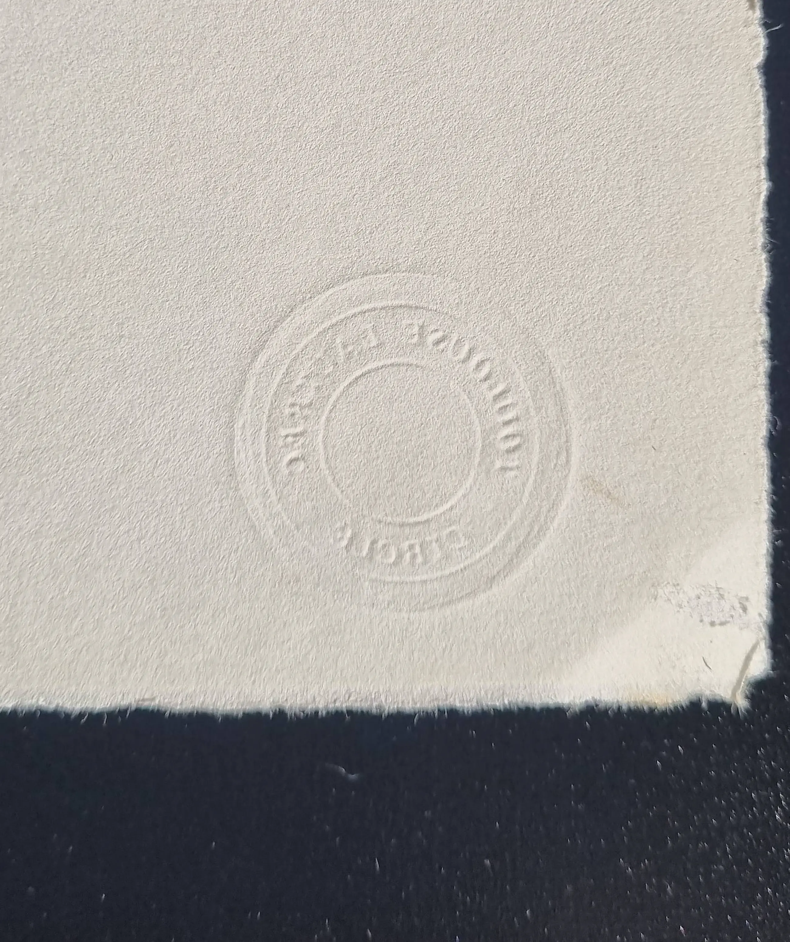 Het werk is in de plaat gesigneerd en voorzien van reliëfstempel, zie foto's voor details.