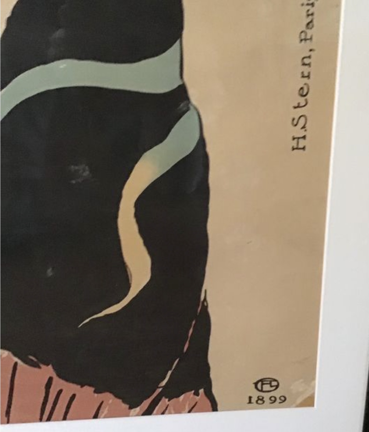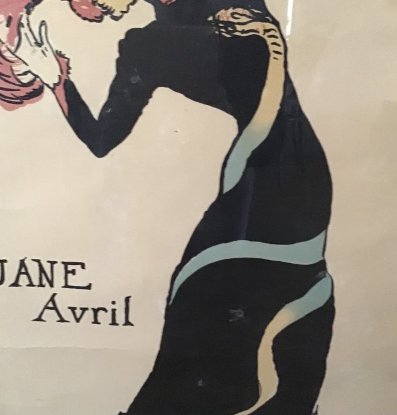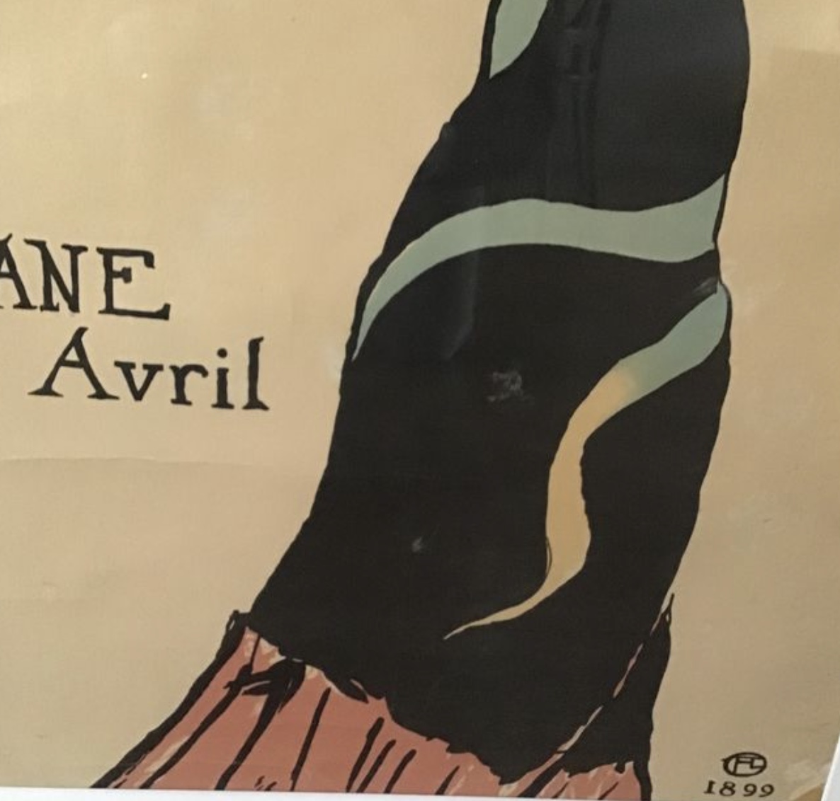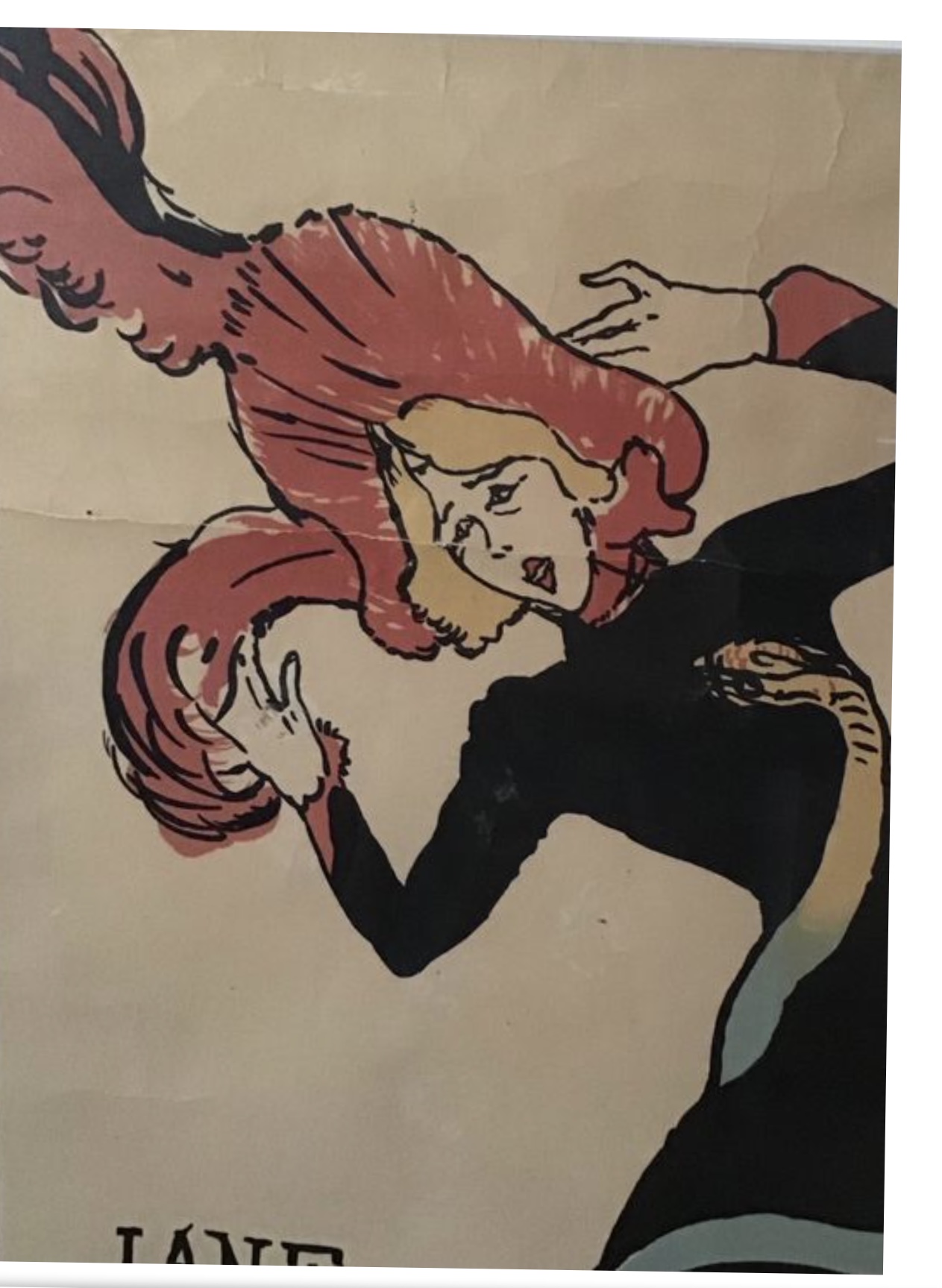 Zeer oude lithografie van Henri de Toulouse -Lautrec Titel Jane Avril Met monogram en datum Afmetingen 82x59 cm Enkele ouderdoms breuklijnen in papier Ingelijst met passe-partout Door glas gefotografeerd Wordt aangetekend verzonden