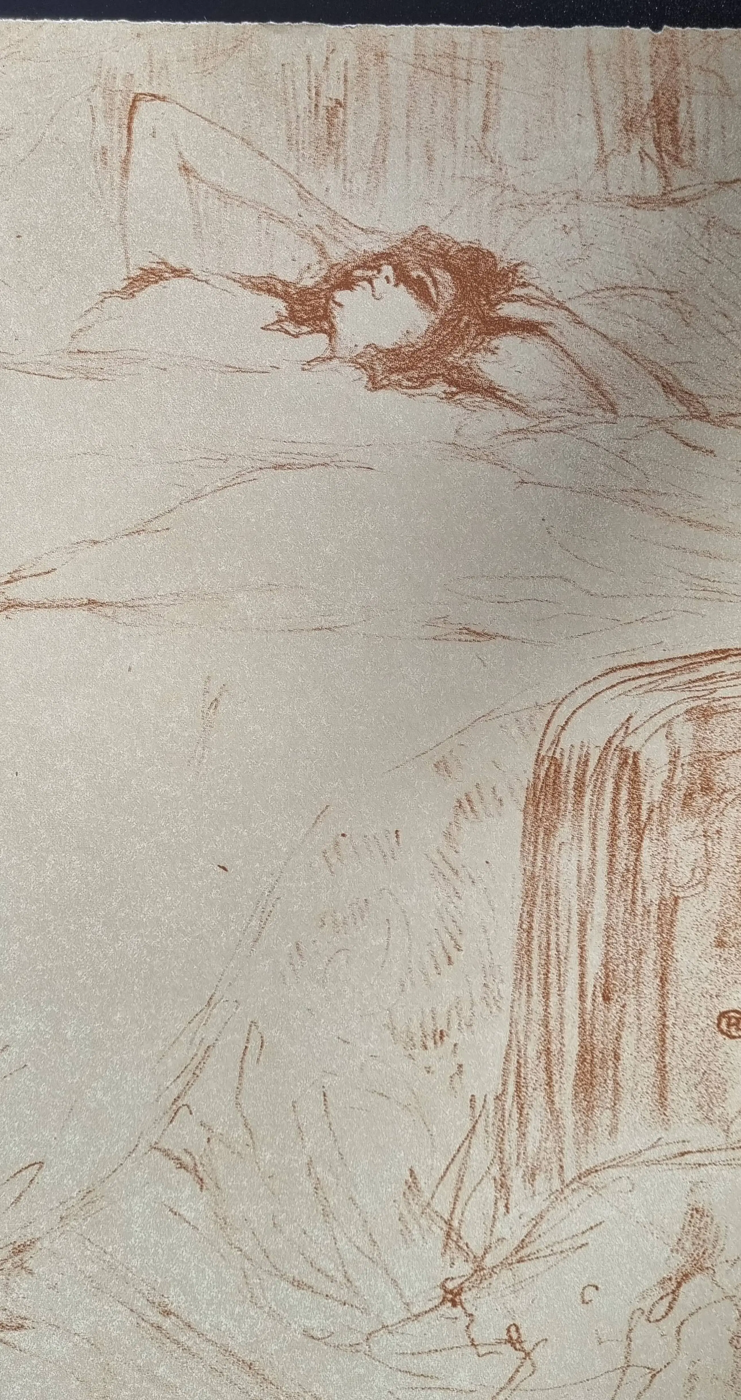 Een van de twaalf lithografieën van prentenserie Elles waarin voornamelijk vrouwen, werkzaam in het bordeel de hoofdrol spelen. De litho's laten zien hoe de vrouwen leefden en werkten