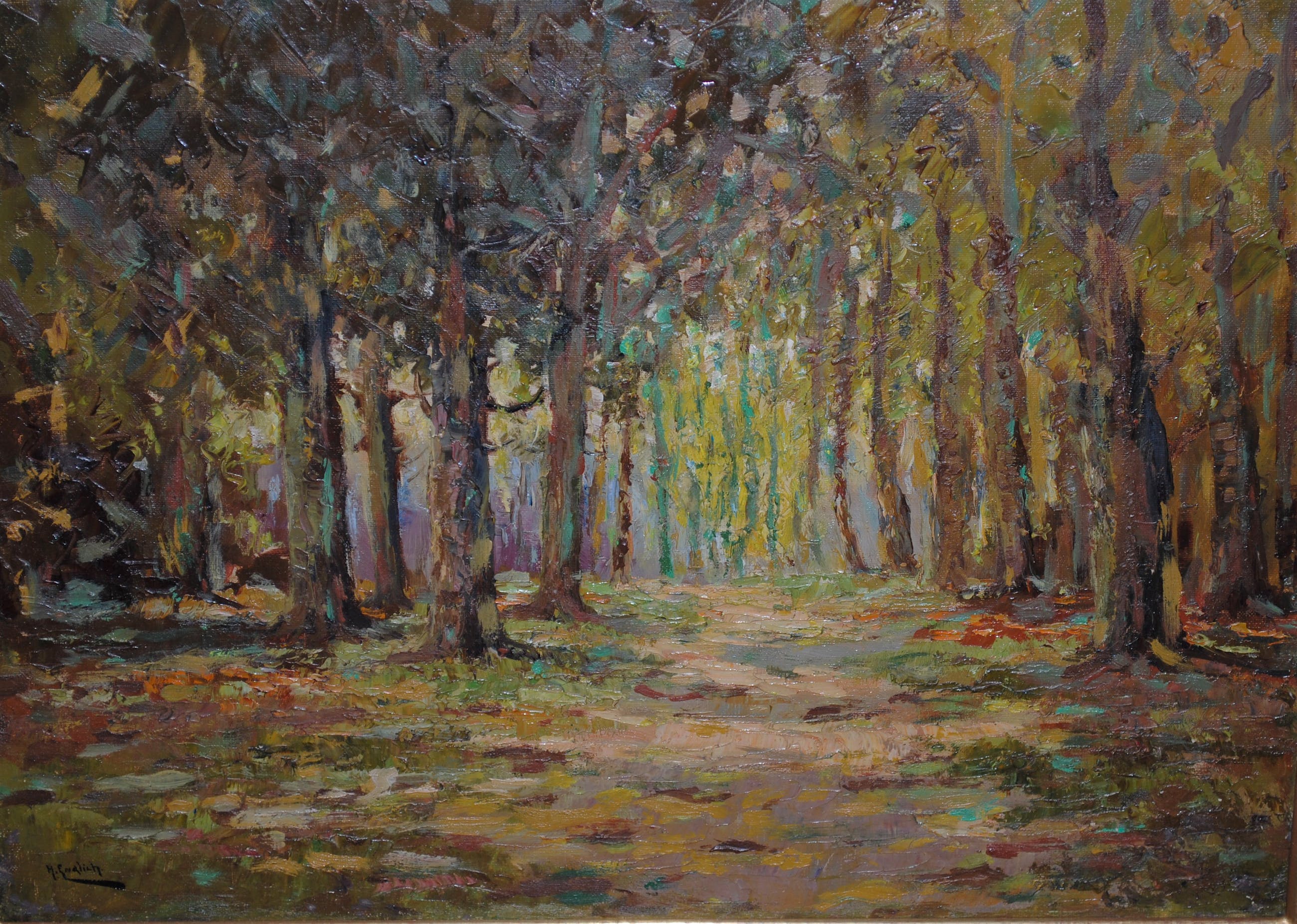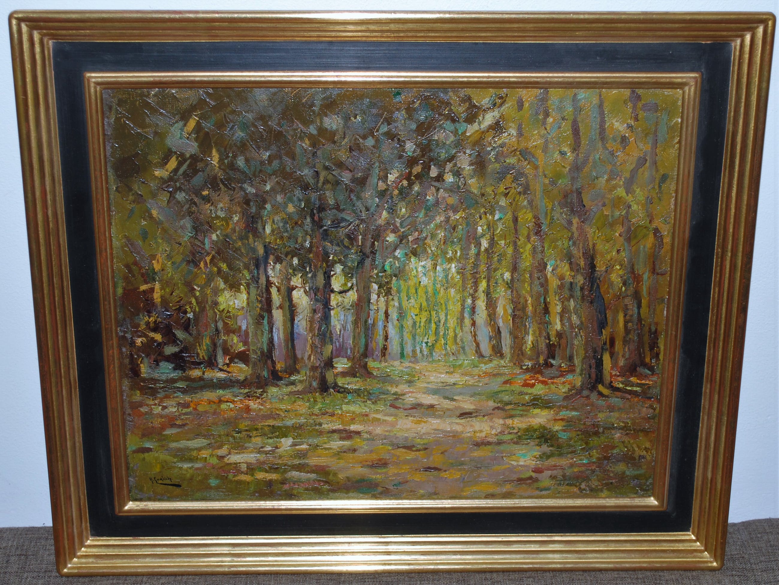 Olieverf op doek in een nieuwe handgemaakte lijst.