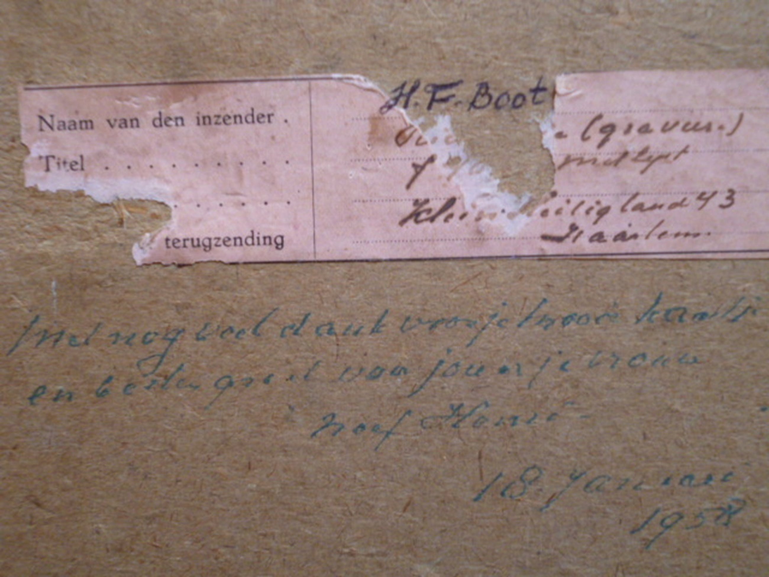 | Afhalen | Het werk is af te halen op locatie. Als koper dient u zelf verpakkingsmateriaal mee te nemen. De locatie is: Haarlem, Nederland |