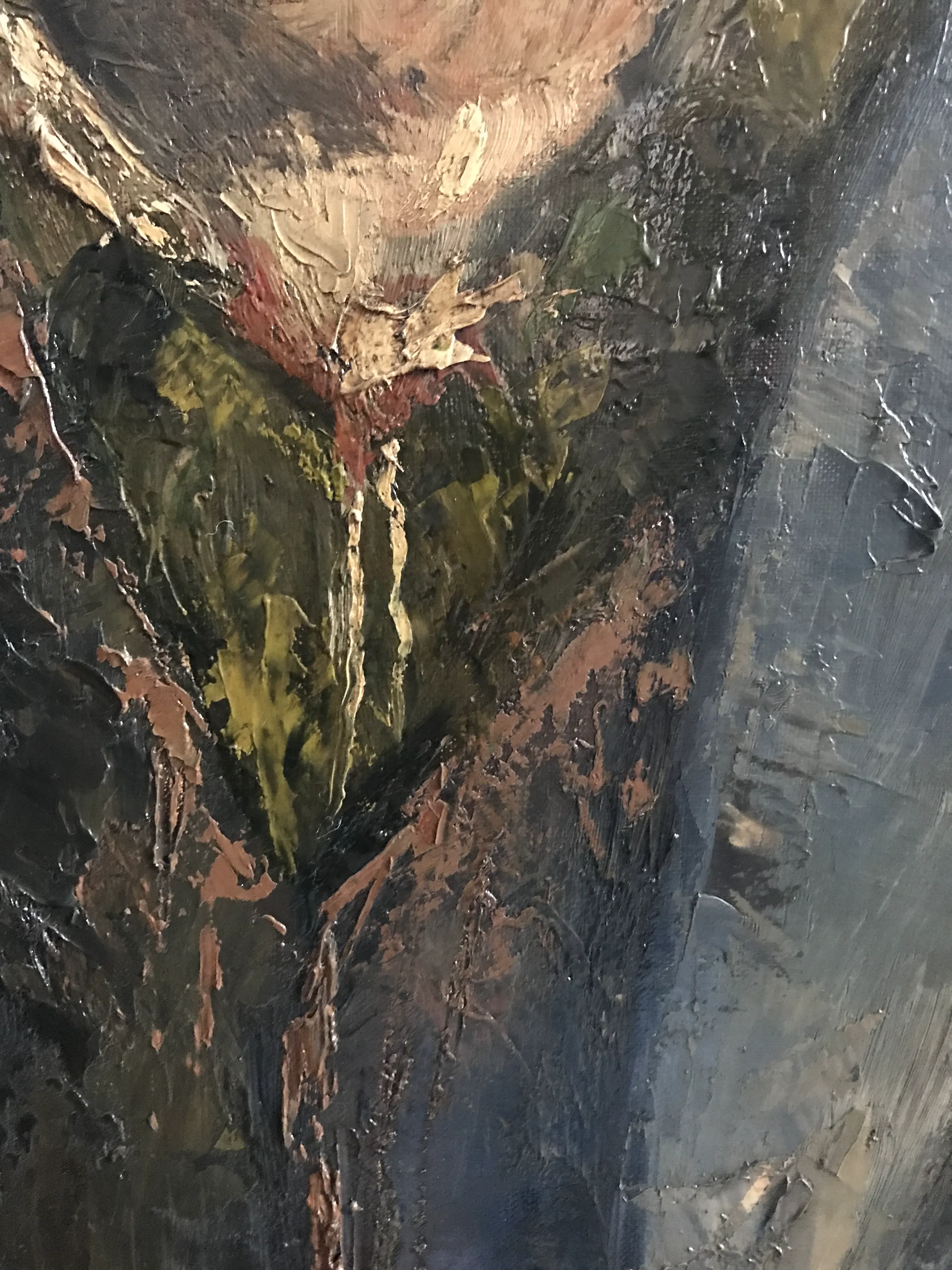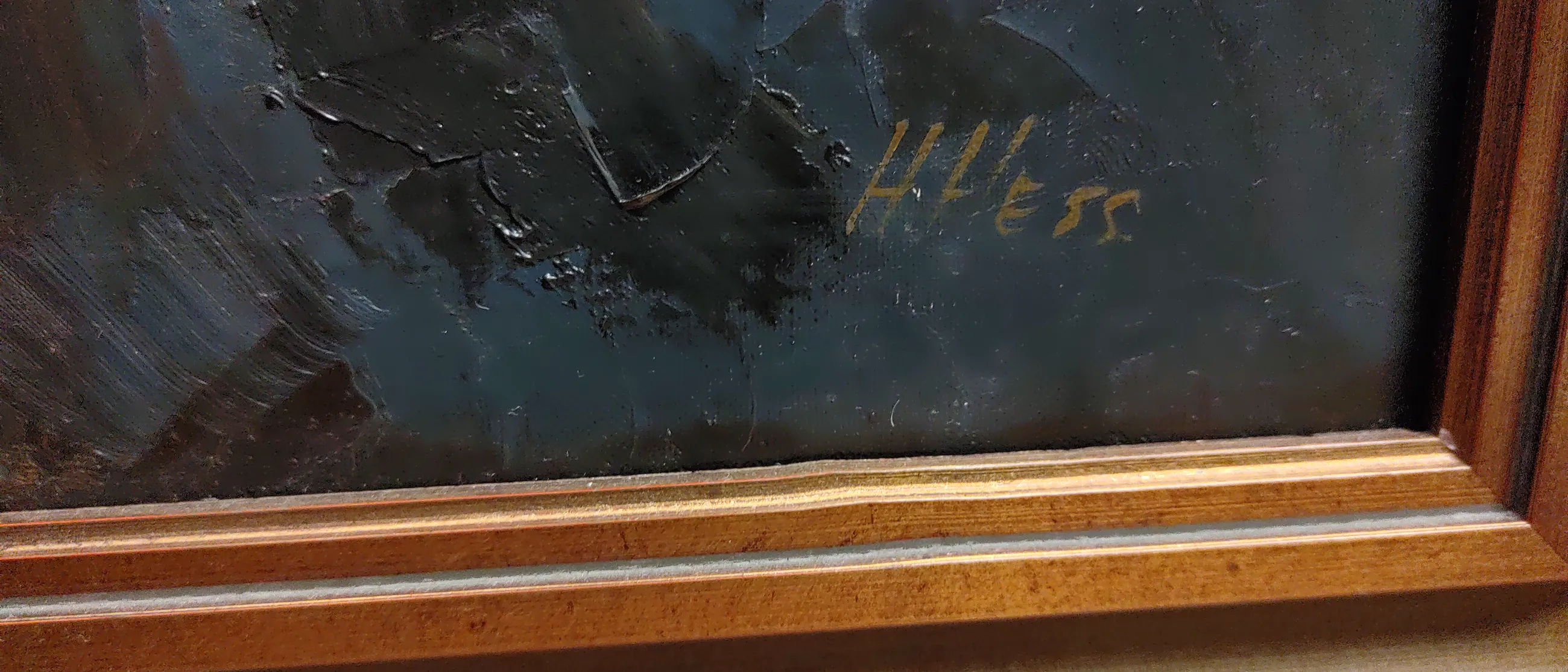Het werk komt rechtstreeks van de kunstenaar en is sindsdien in de familie. Er zijn geen beschadigingen maar mogelijk moet het wat schoongemaakt. De lijst en het doek zijn beiden compleet gaaf. Voor mij als leek is het in prima staat.