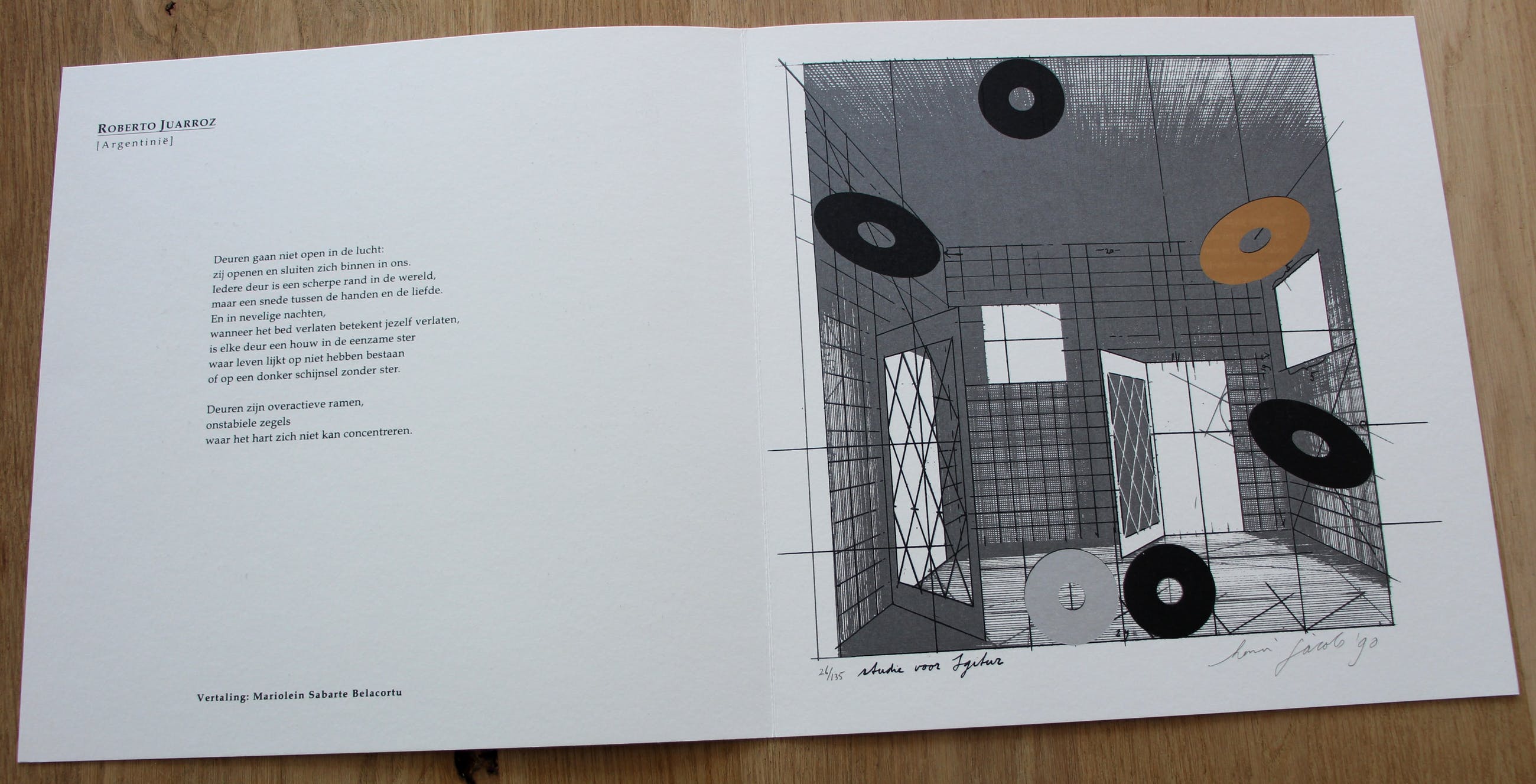 Litho van Henri Jacobs. Titel: studie voor Igitur. Met een gedicht van Roberto Juarroz. Nummer: 26/135. Afmetingen werk: H32 x b32cm. Afmetingen voorstelling: H27 x b24cm. Het werk is rechts onderaan, met potlood, gesigneerd door de kunstenaar. De authenticiteit van het, aangeboden, werk wordt volledig gegarandeerd. Een certificaat van echtheid kan, op aanvraag, worden gemaild.
