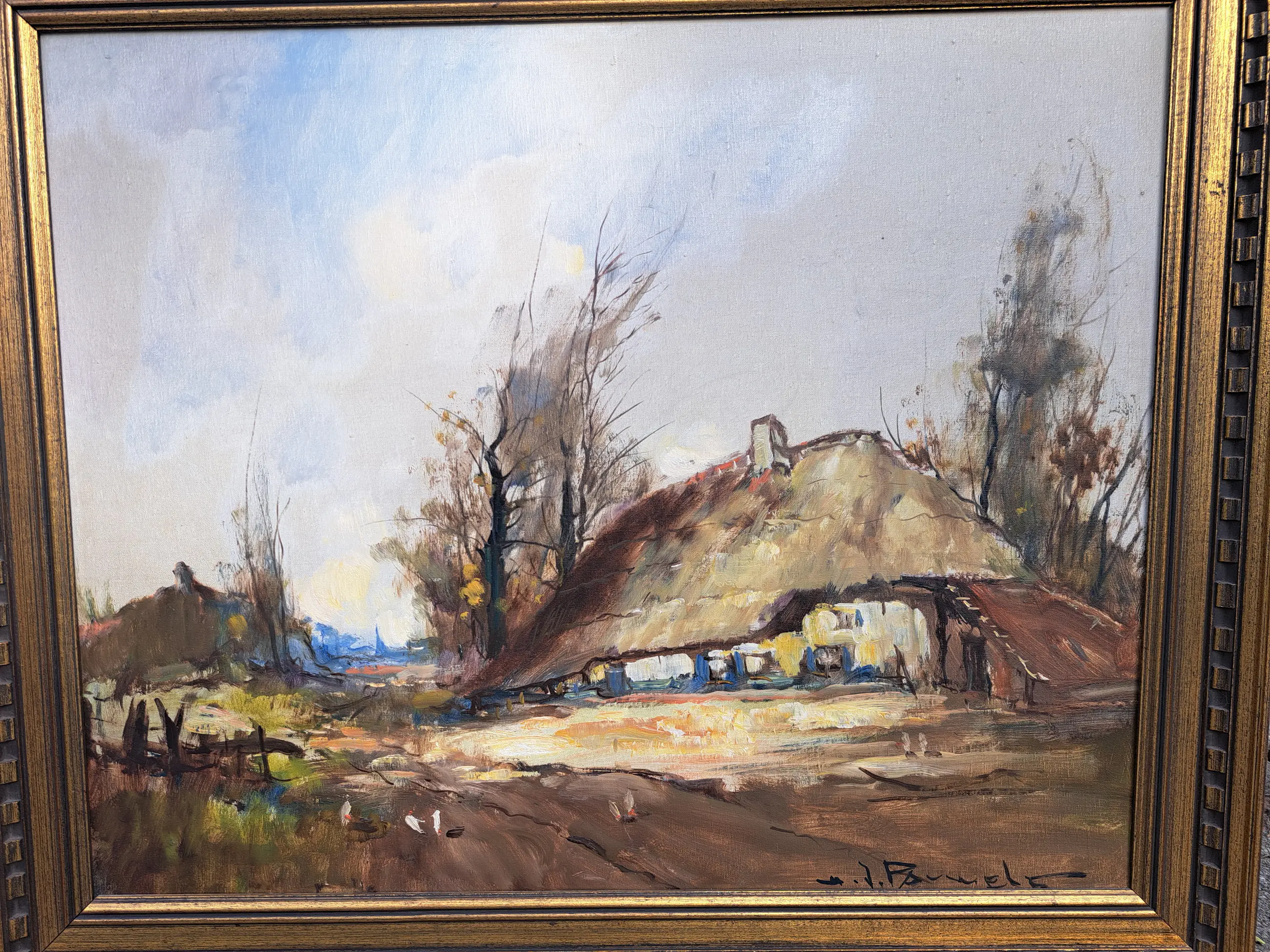 Ik verkoop 3 schilderijen van Pauwels met hetzelfde boerderijtje als onderwerp.Dit is het tweede en geeft het boerderijtje weer in de herfst/winter De schilderijtjes zijn aan de voorzijde gehandtekend.