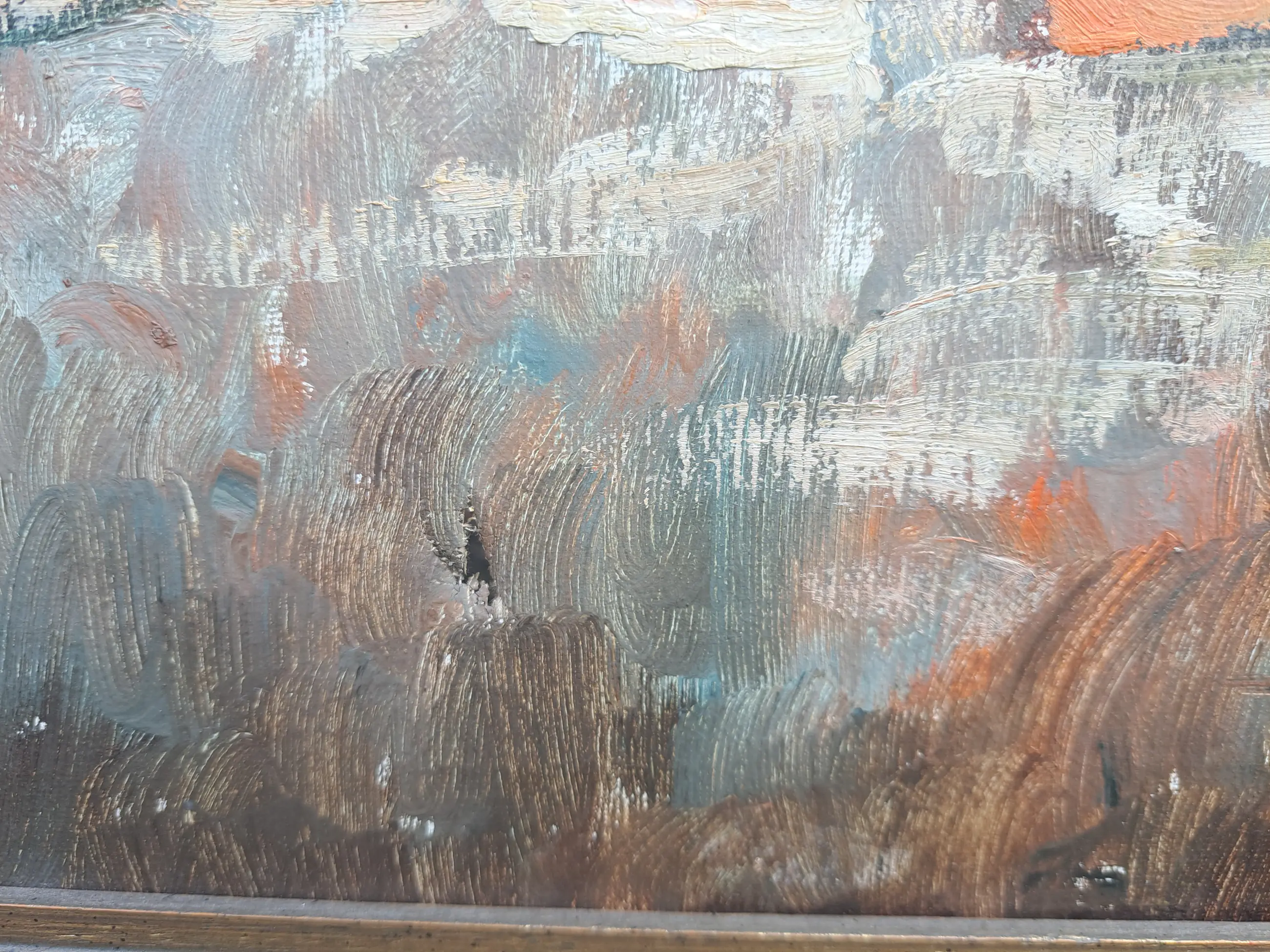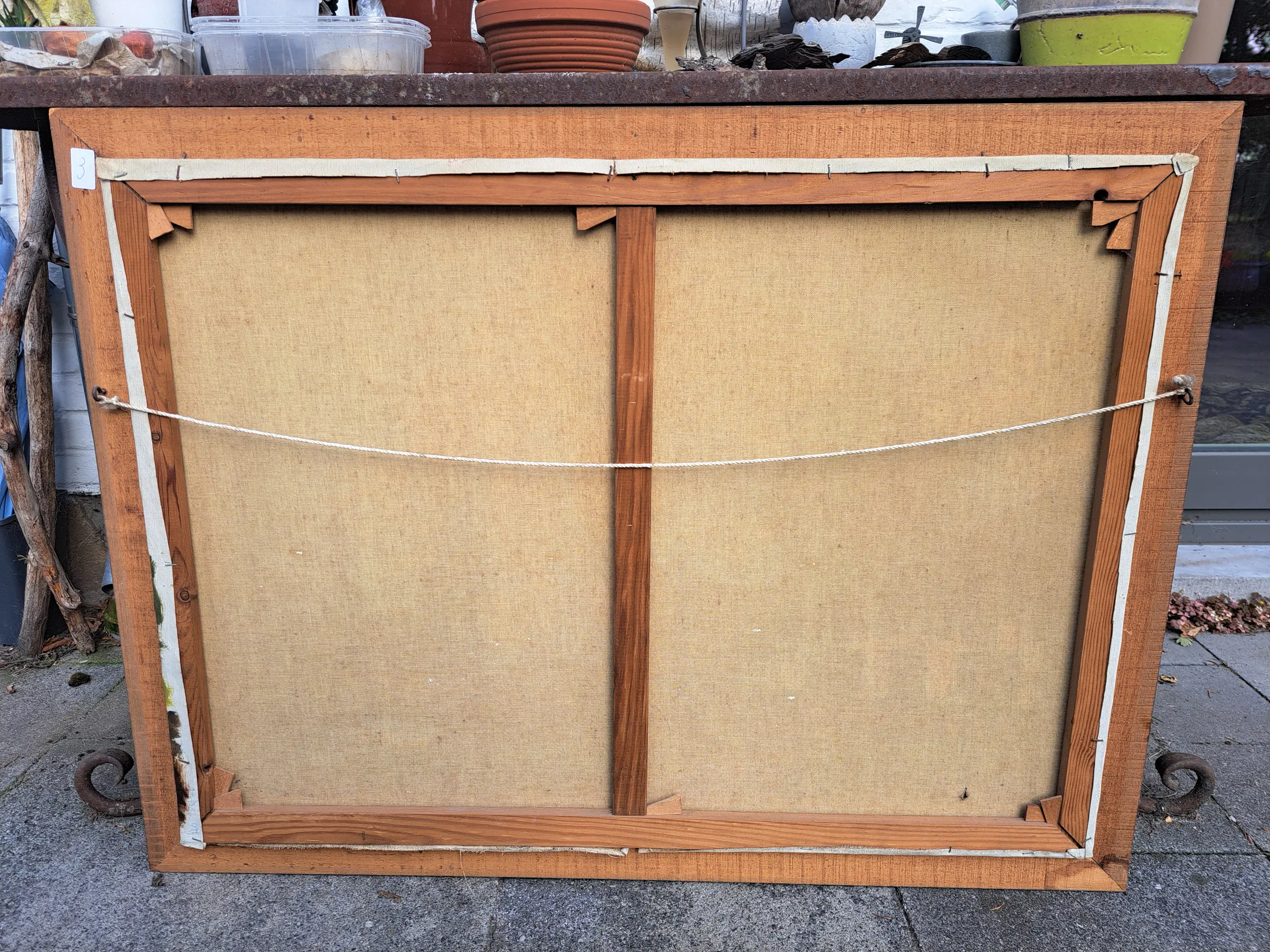 De schilderijtjes zijn aan de voorzijde gehandtekend. Dit schilderij heeft een klein gaatje aan de linkerkant.