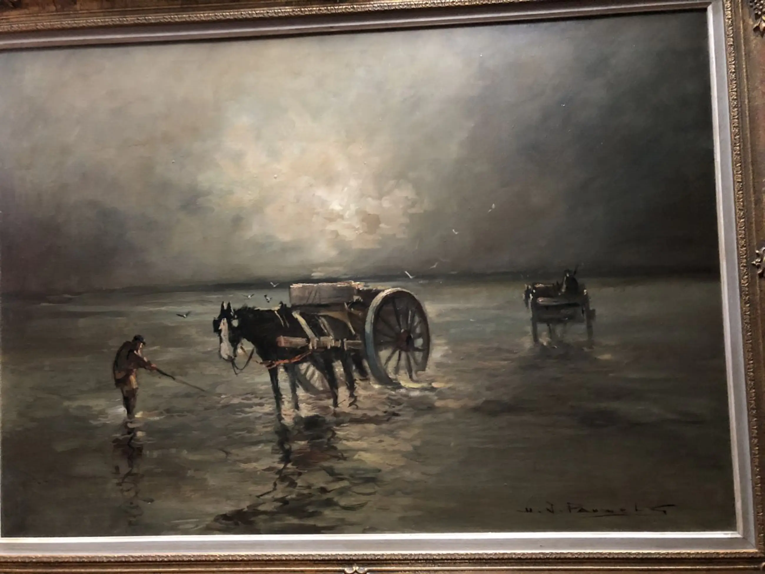 Prachtig levend schilderij te paard gaan 2 garnalenvissers vissen begeleid door de maan