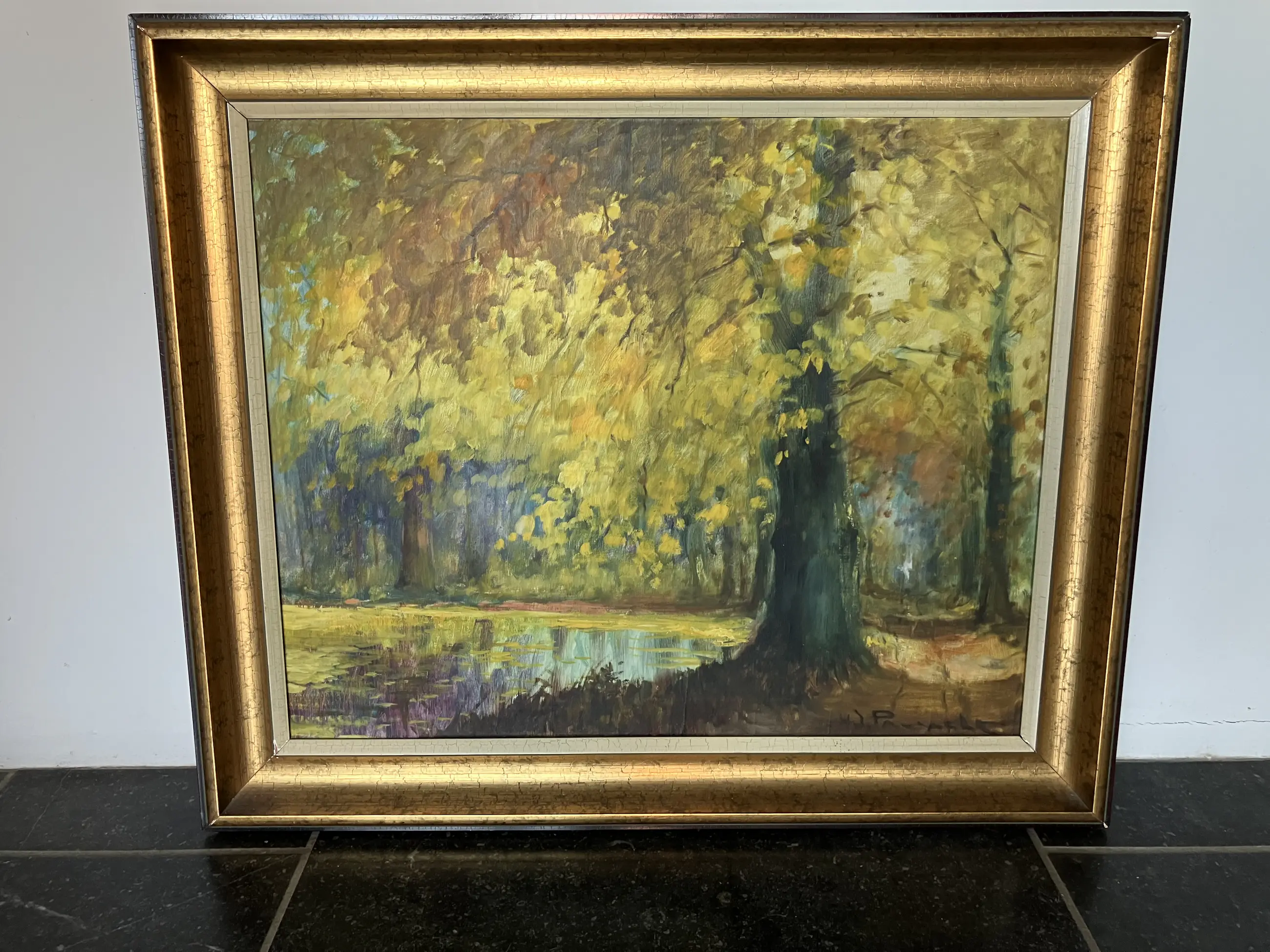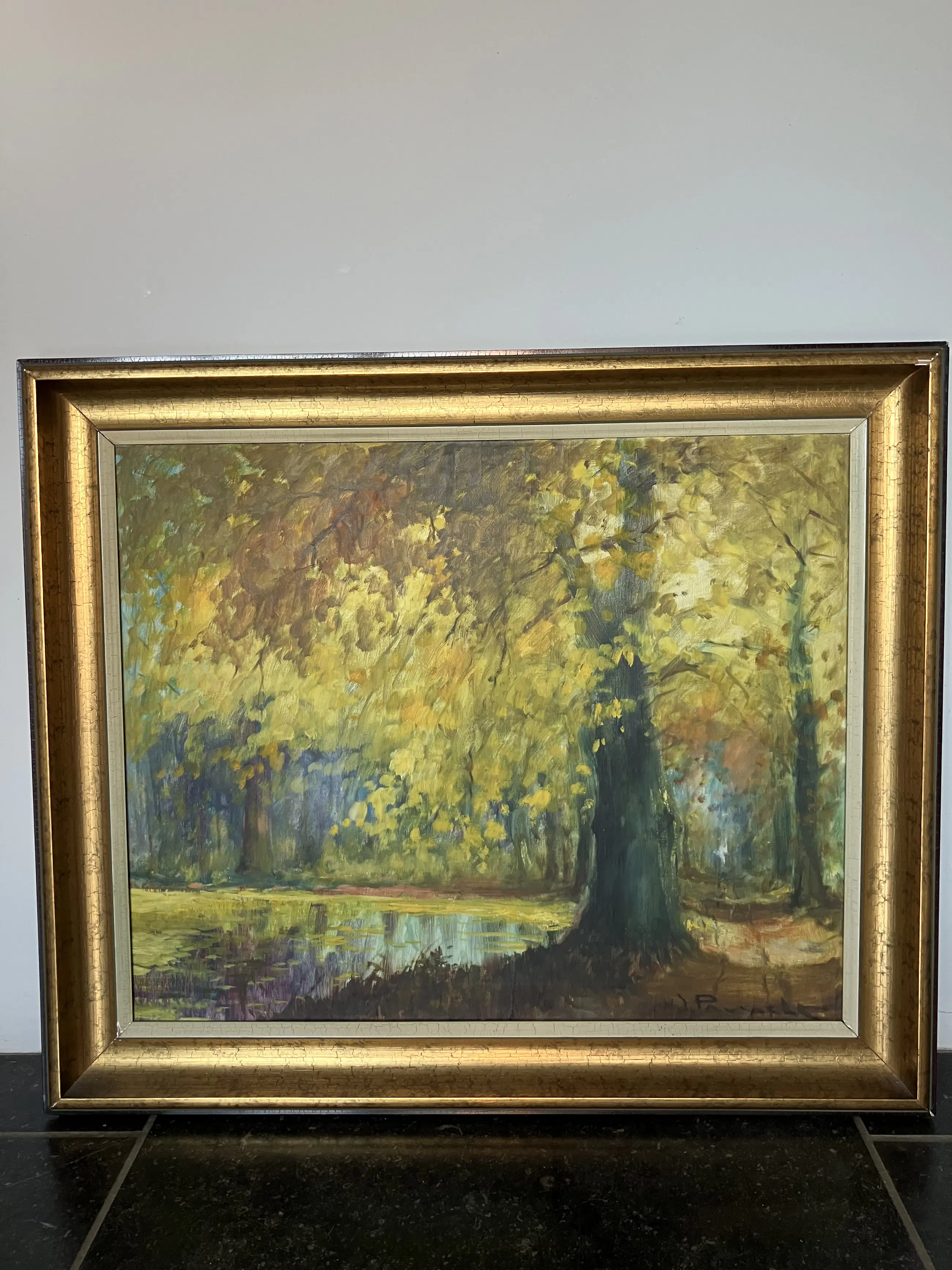 Schilderij van de Belgische schilder Henri Joseph Pauwels, geboren in 1903 en overleden in 1983. Hij signeerde met H.J. Pauwels in wijdgerekte hoofdletters. Hij had een voorkeur voor bloemstukken, landschappen en landelijke gezichten. Olieverf op doek.