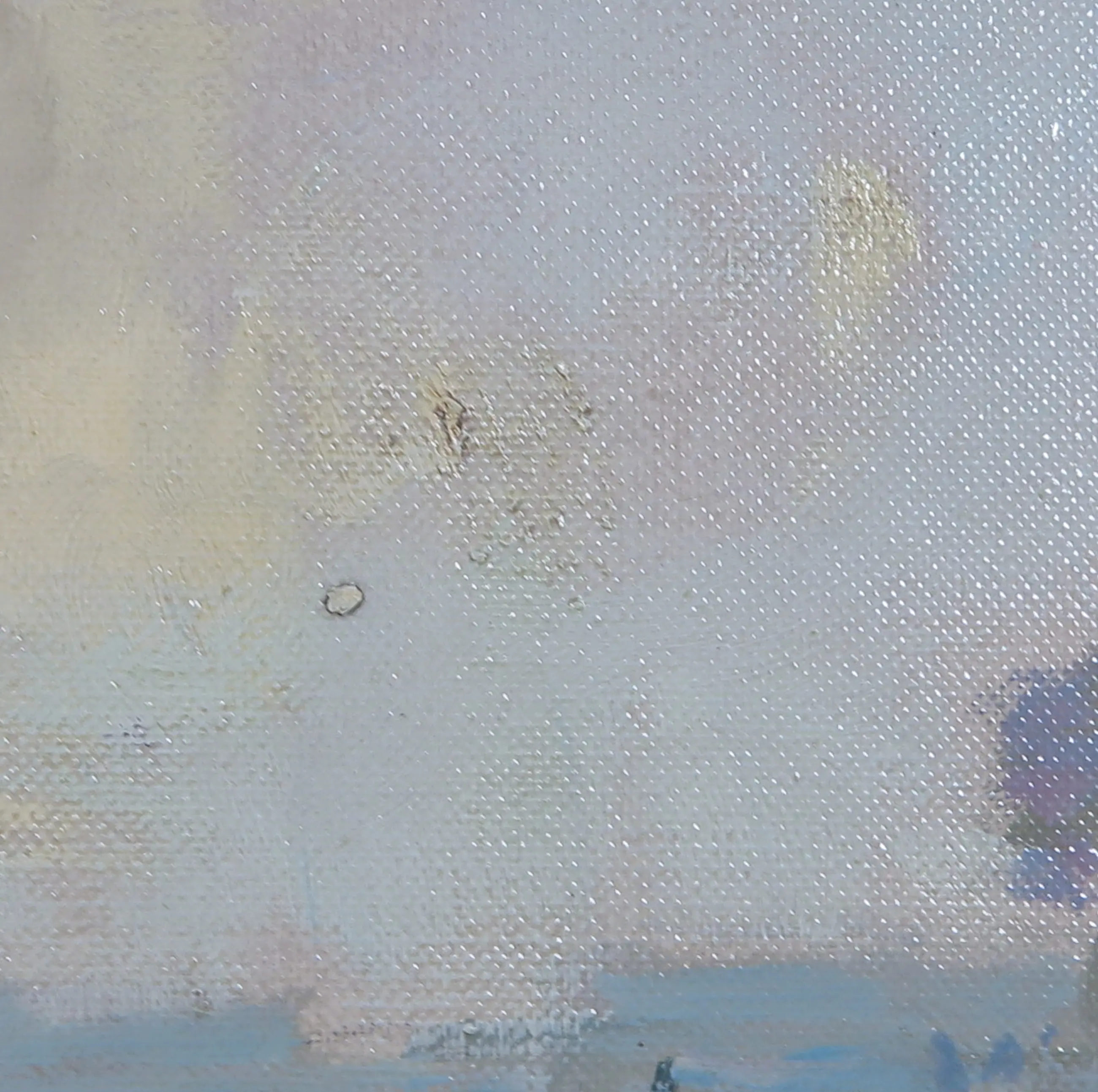 | Het doek is in zeer goede staat, enkel wat minimale verkleuring wat met name zichtbaar is in de luchtpartijen. | |