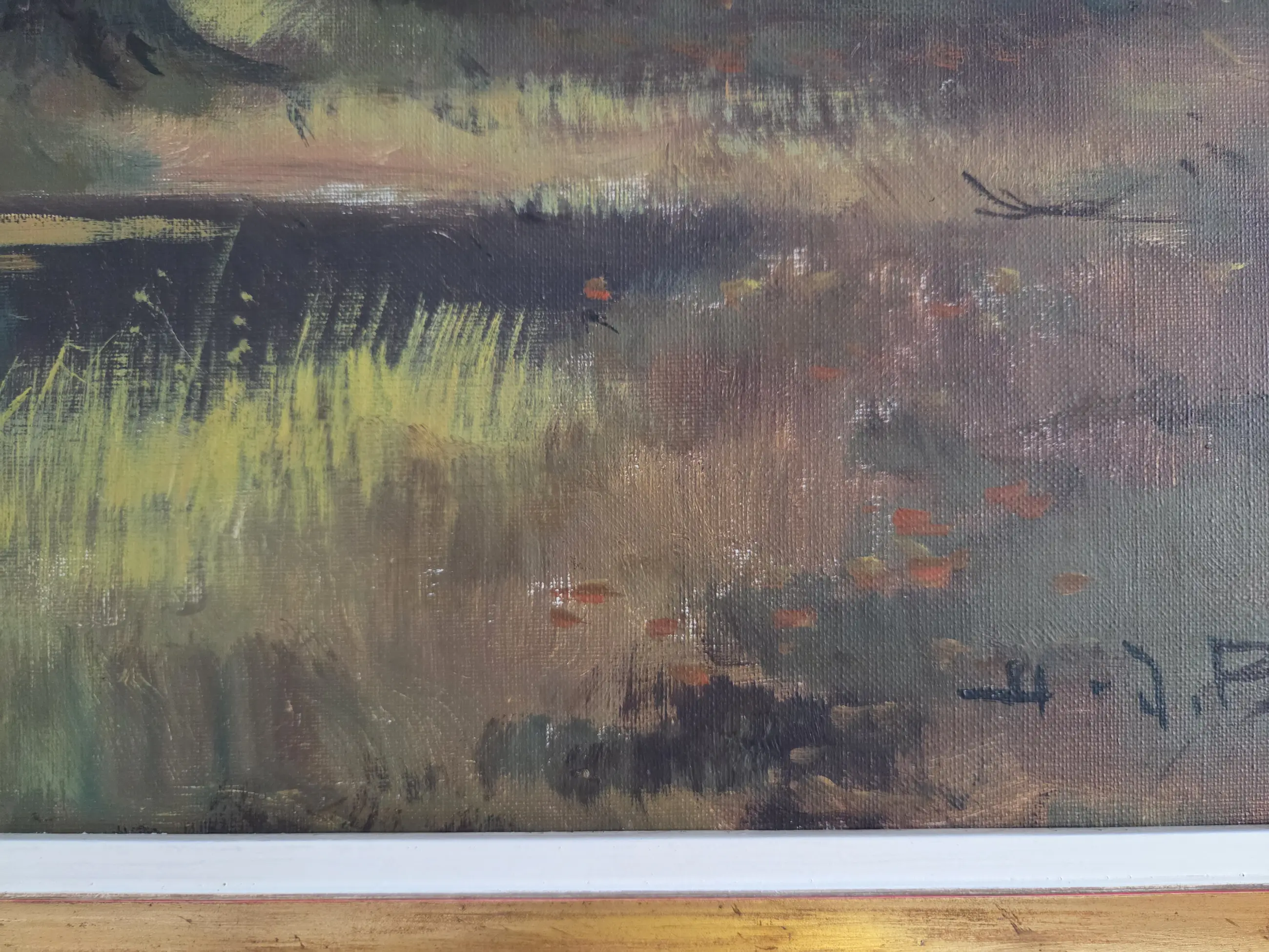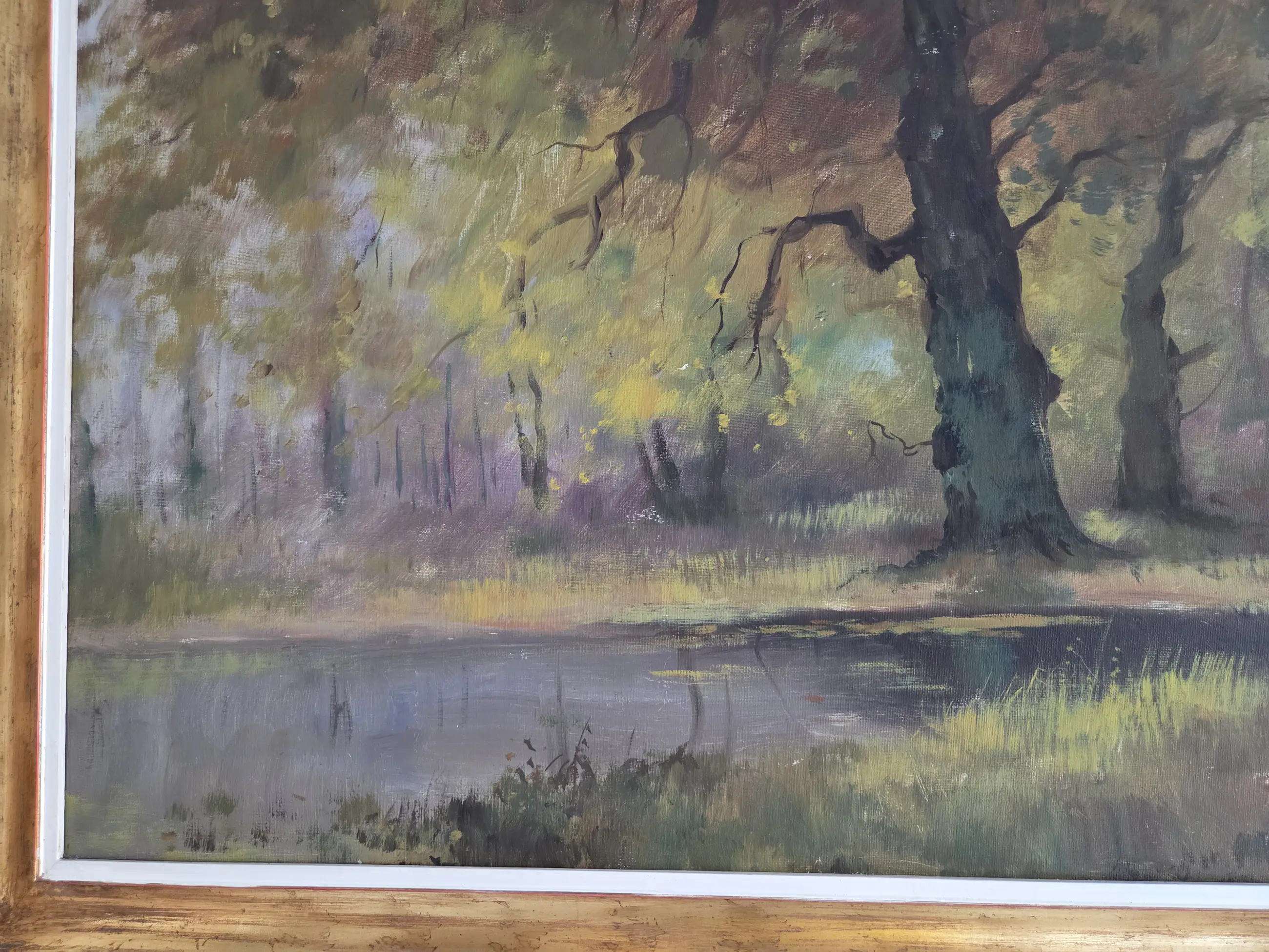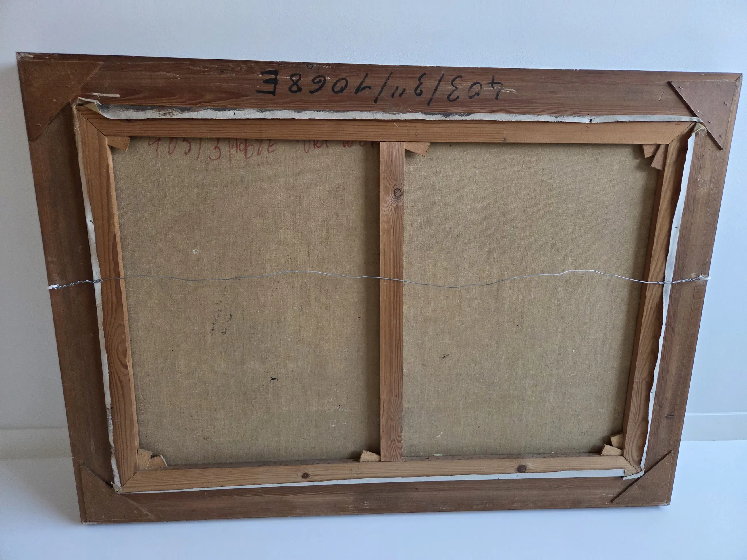 Het schilderij is in zeer goede staat en is ingelijst in de originele kader (die lichte gebruikssporen vertoont).