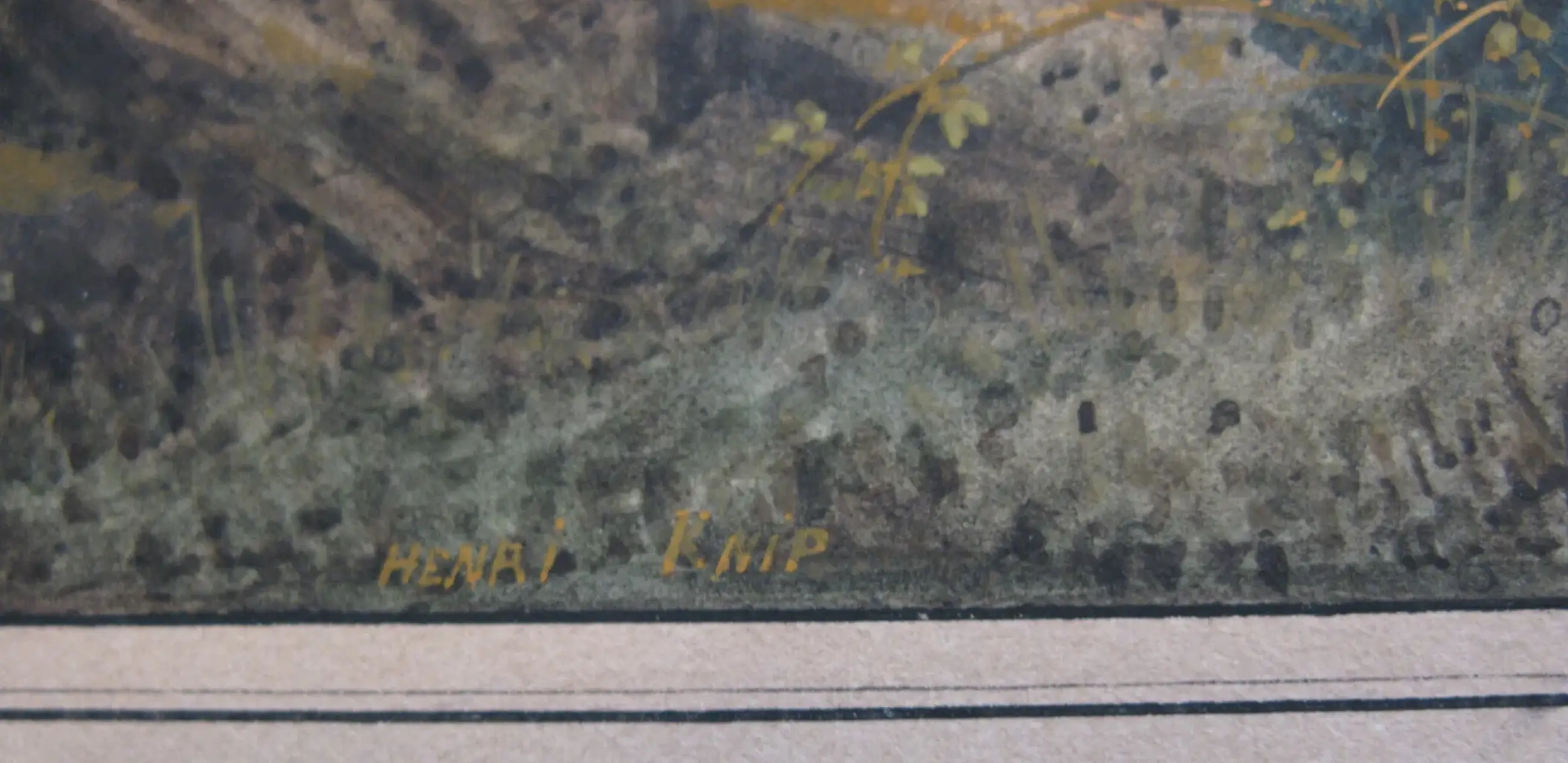 Hendrikus Johannes 'Henri' Knip (1819-1899). Henri Knip is afkomstig uit de beroemde schildersfamilie Knip. Hij maakte studiereizen naar Italië en Zwitserland en schilderde vooral landschappen, dorpsscenes en kerken.
