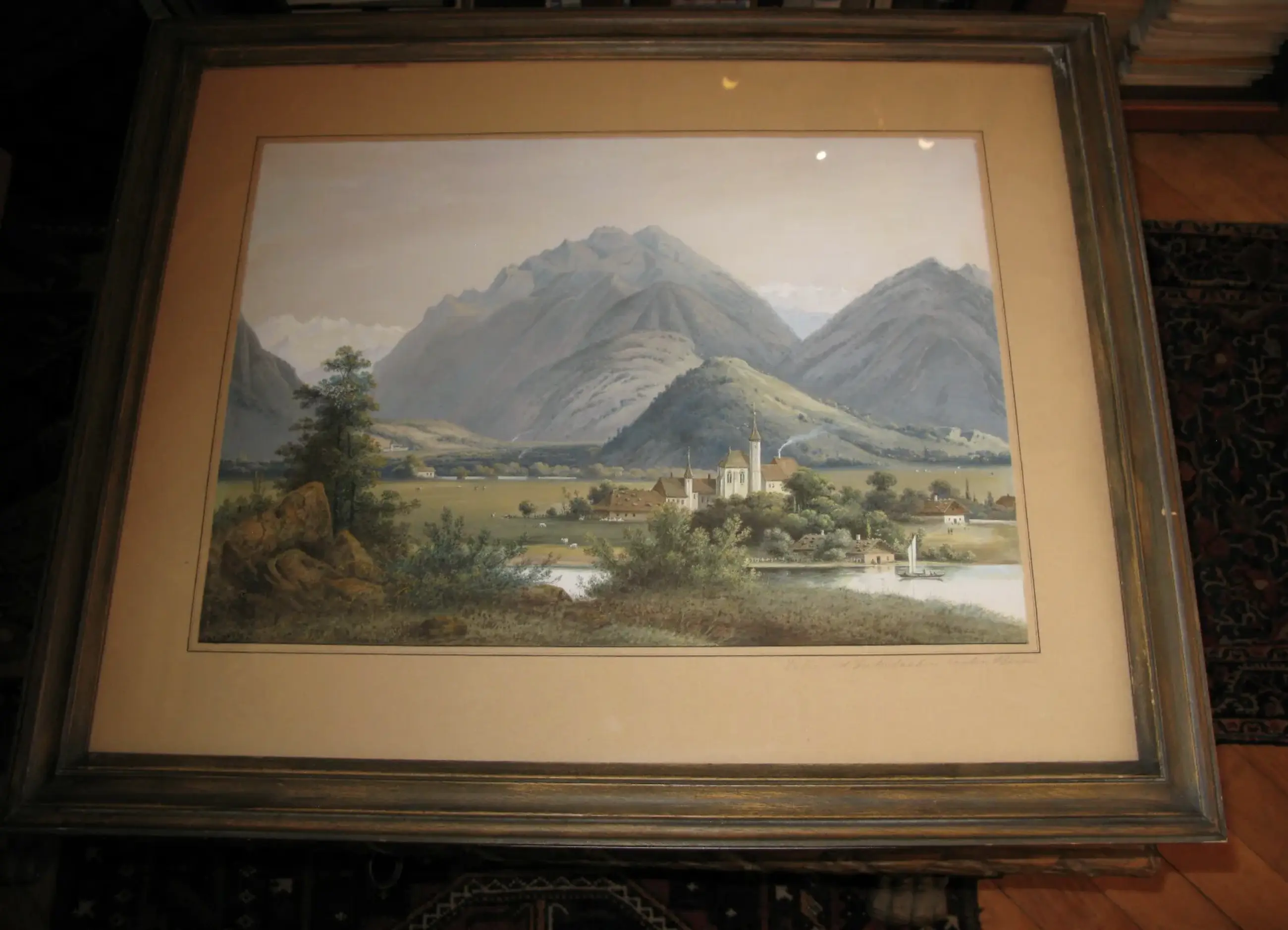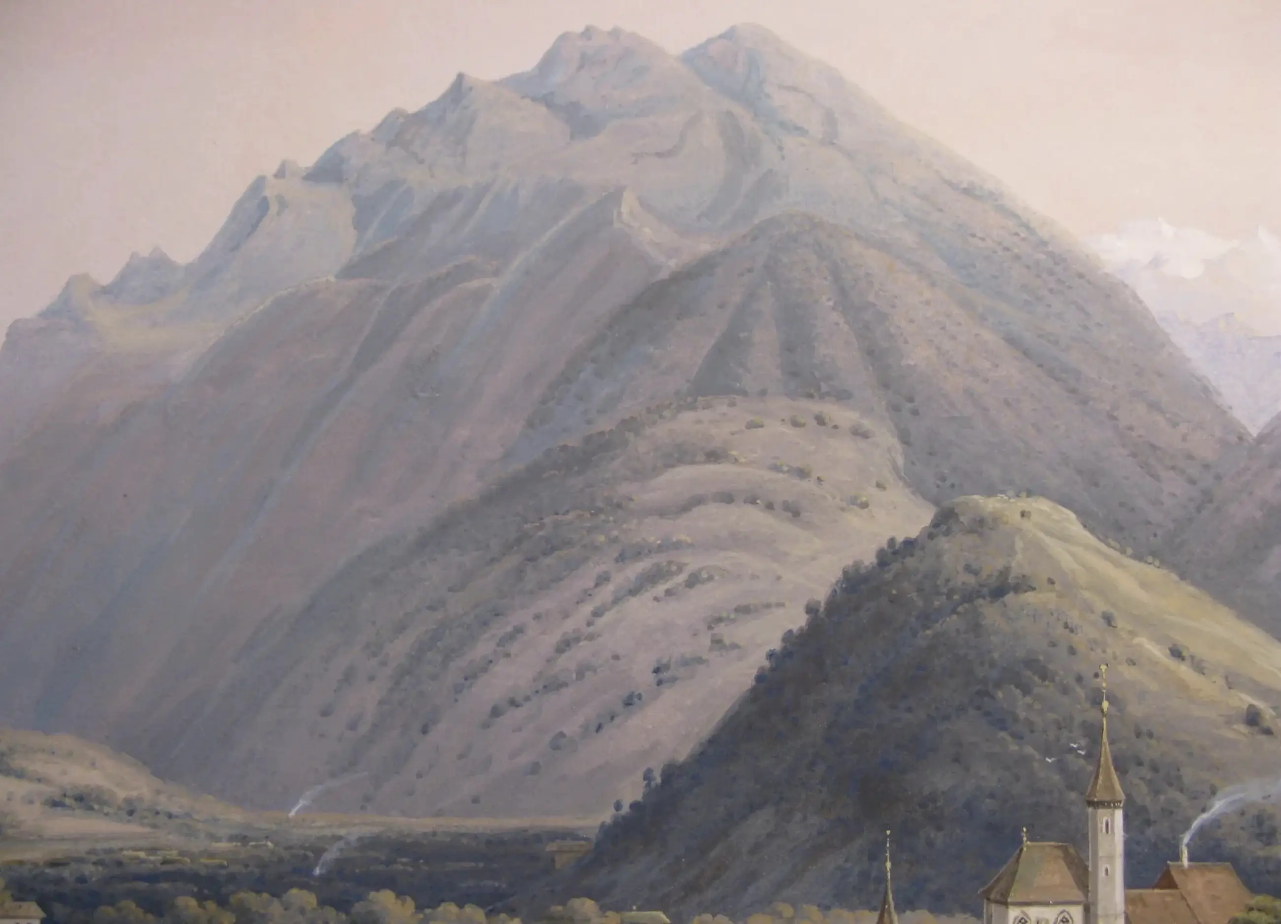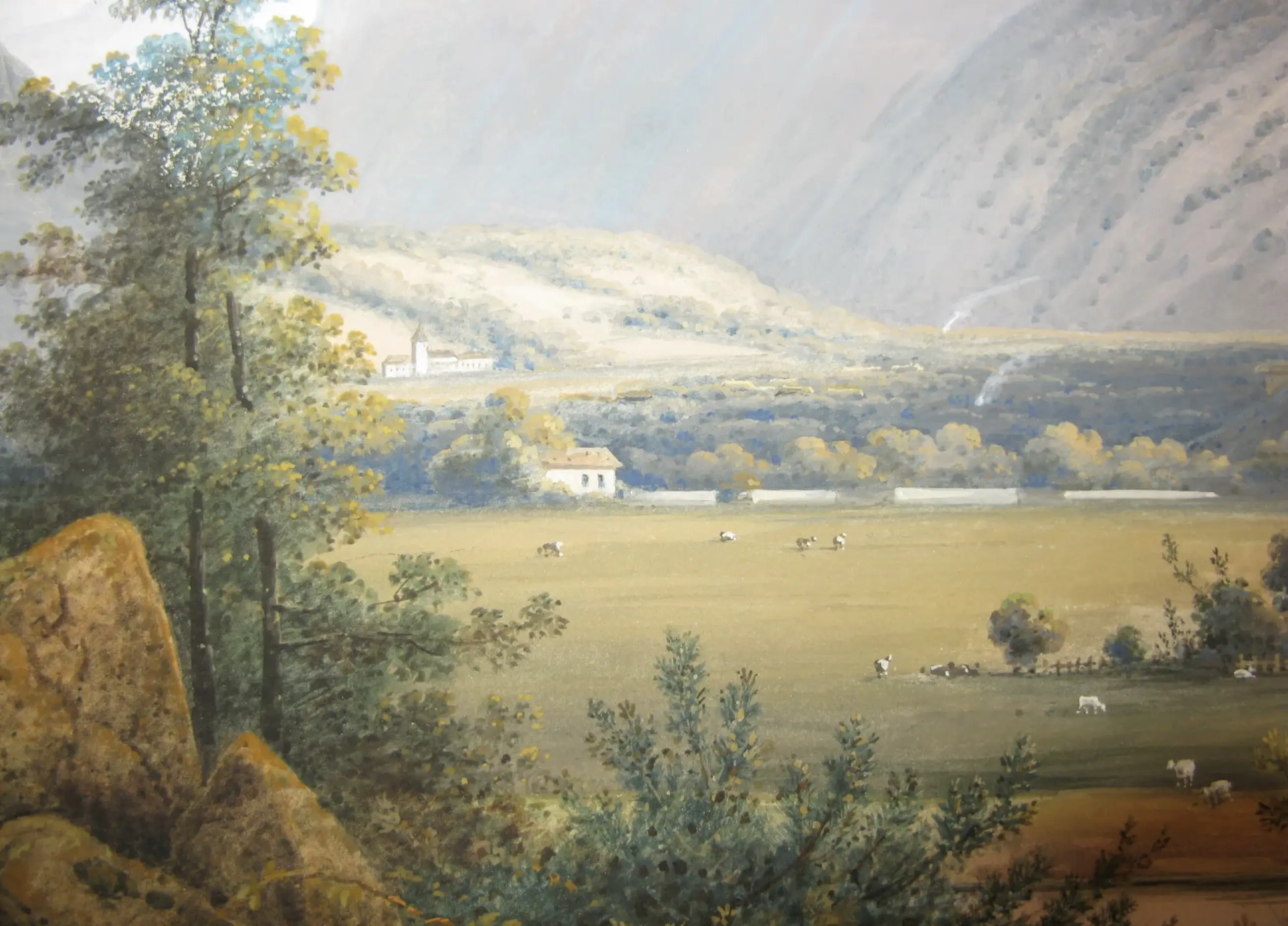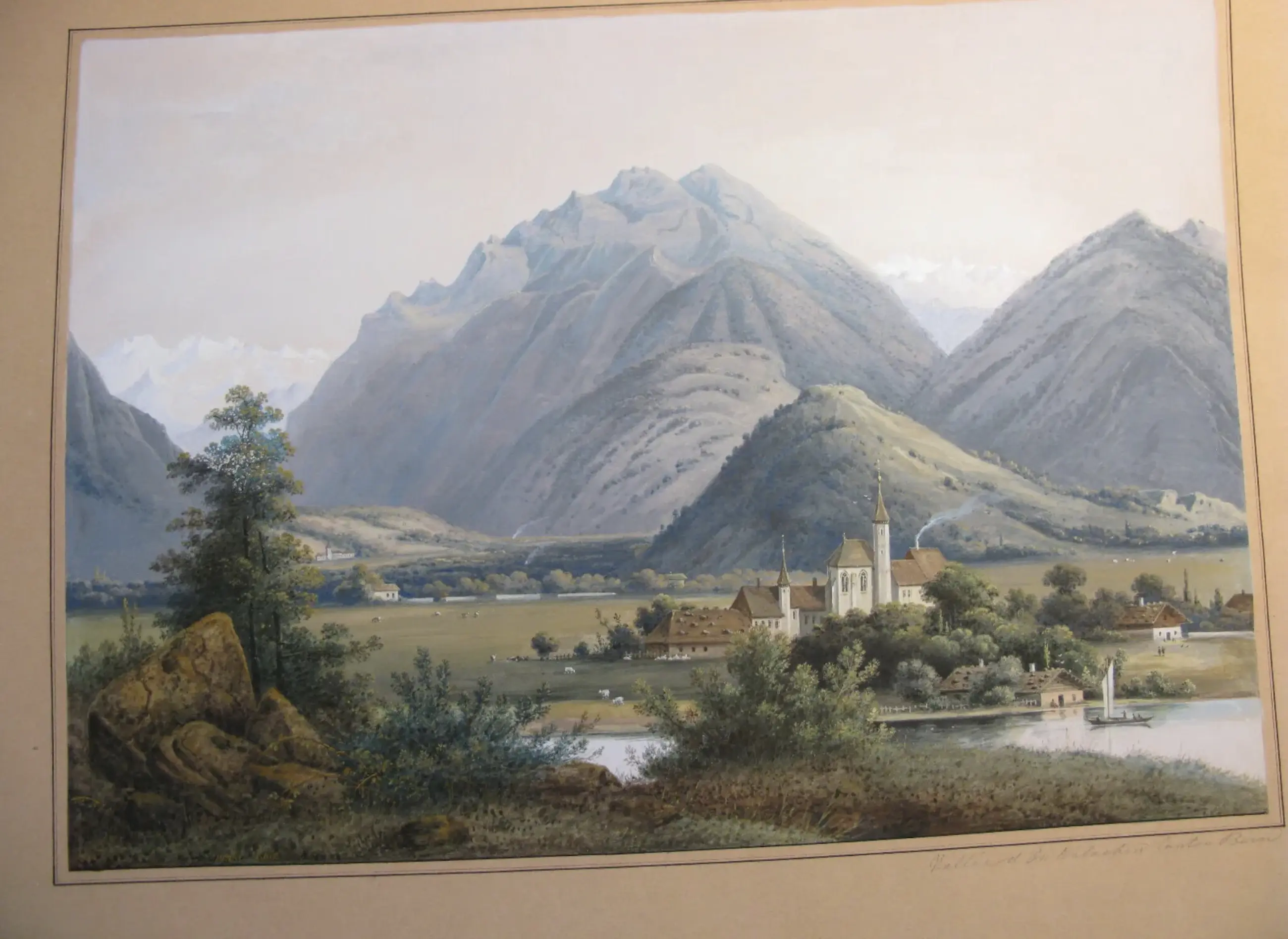 Deze gouache toont op een fraaie manier een berglandschap in de buurt van Interlaken Berner Oberland.