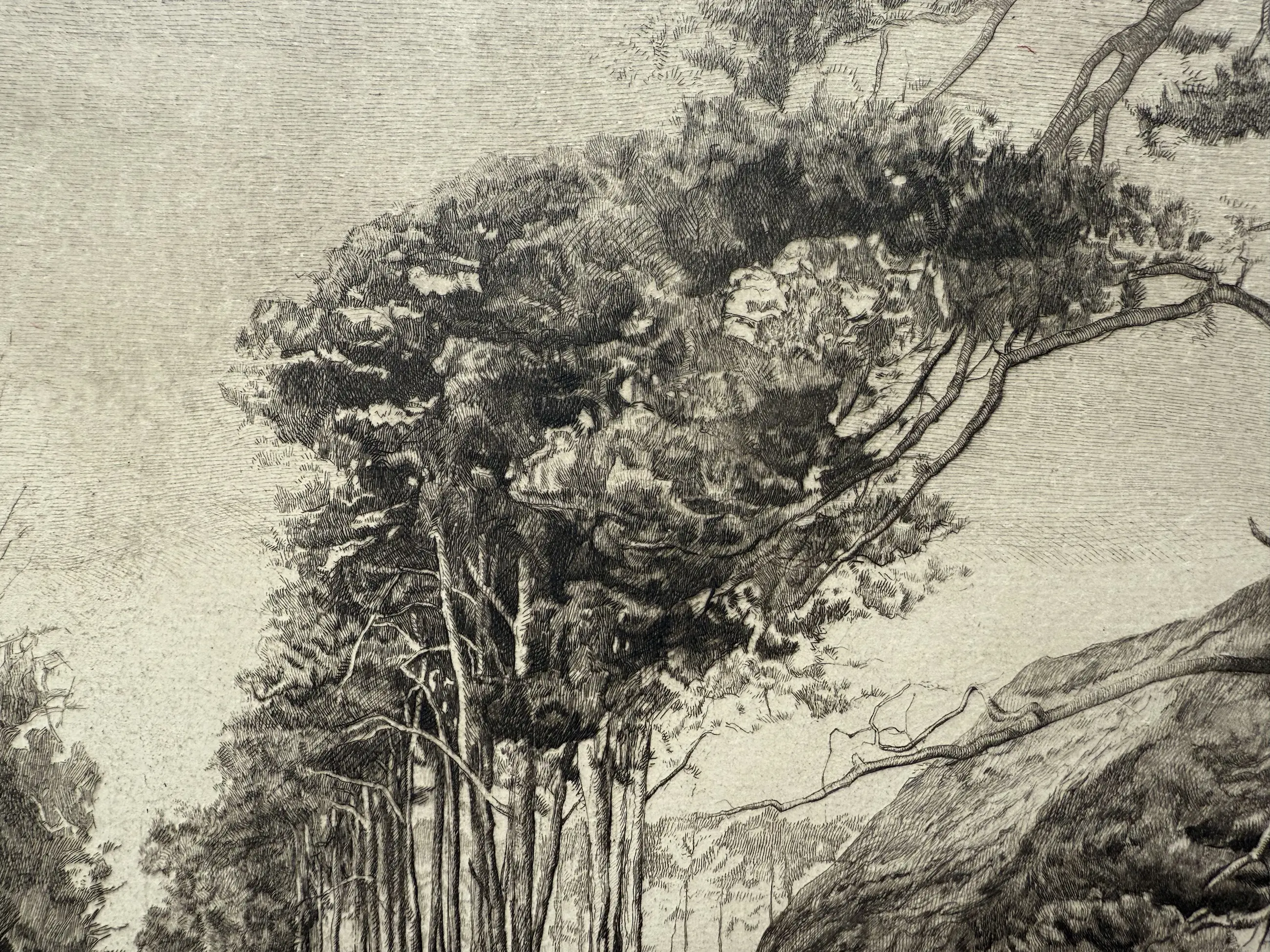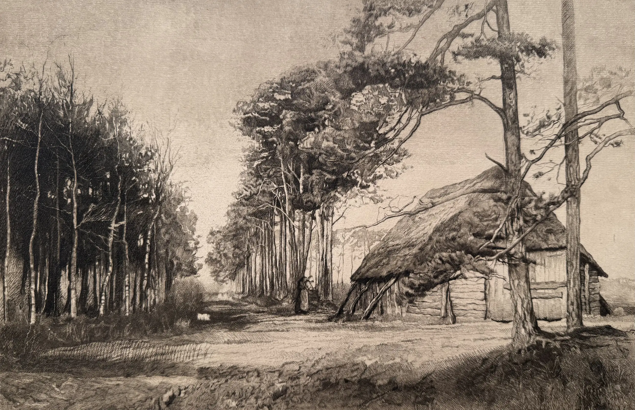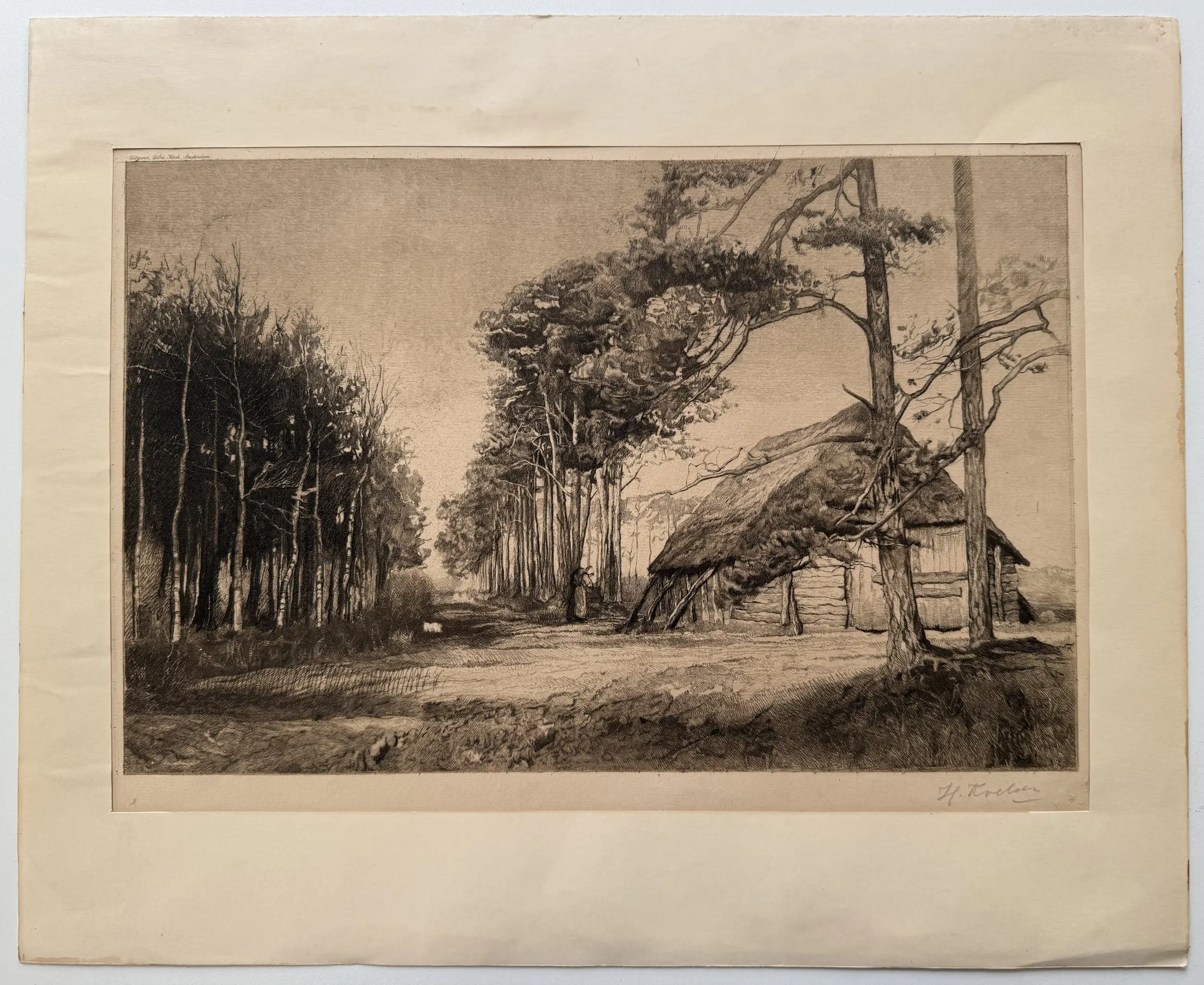 Henri Koetser - handgesigneerde ets | 'Boerin in landschap met schuur'