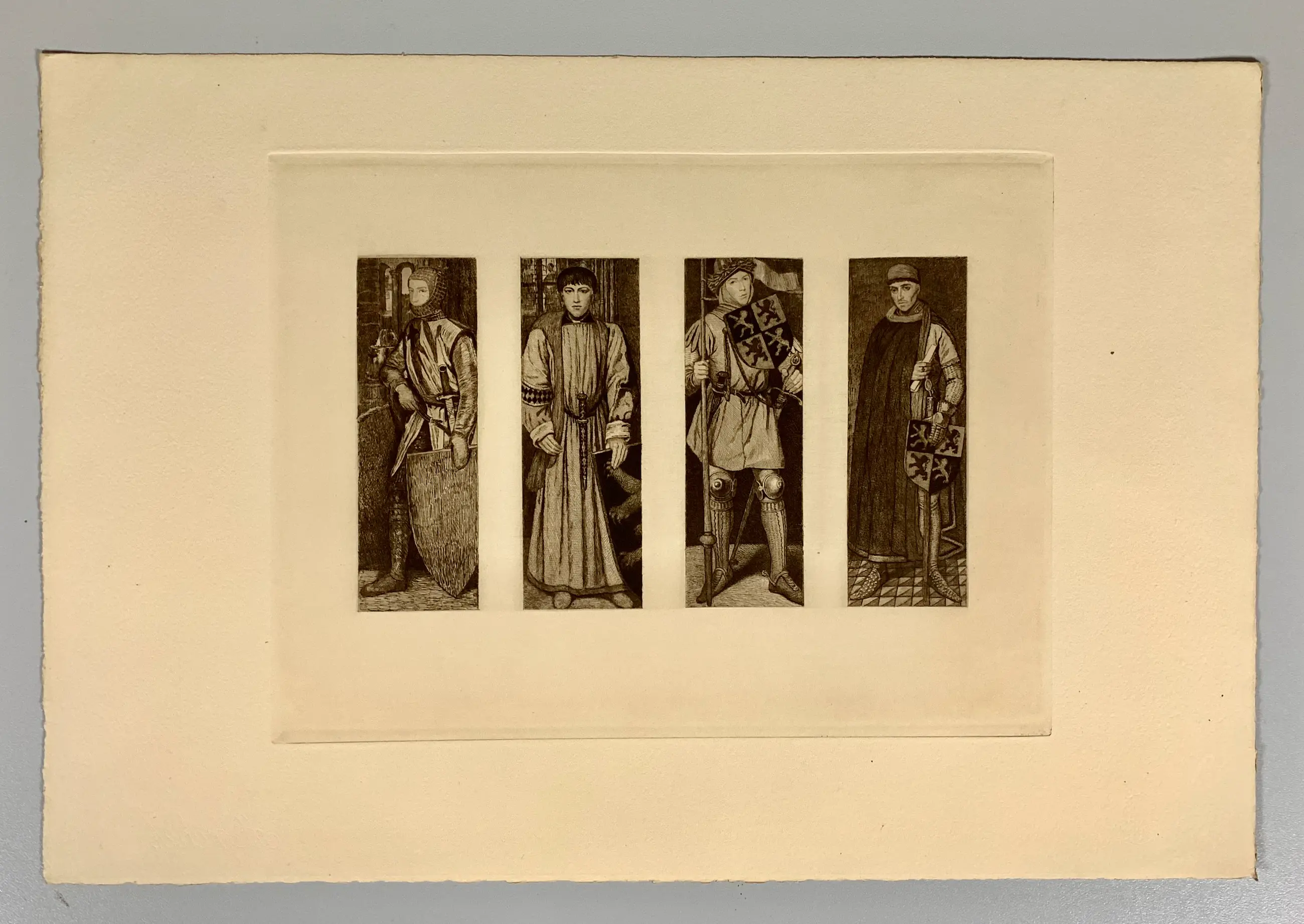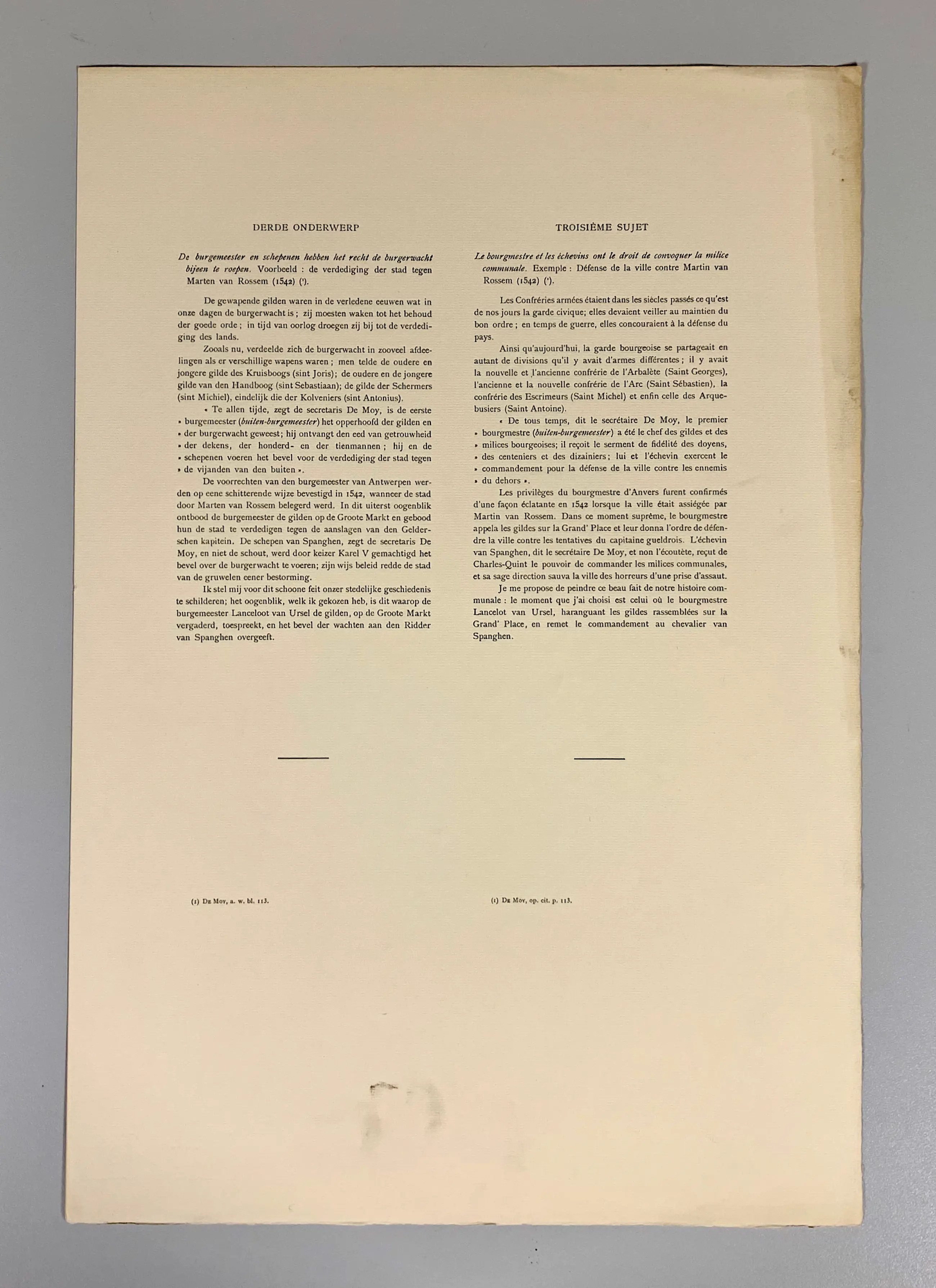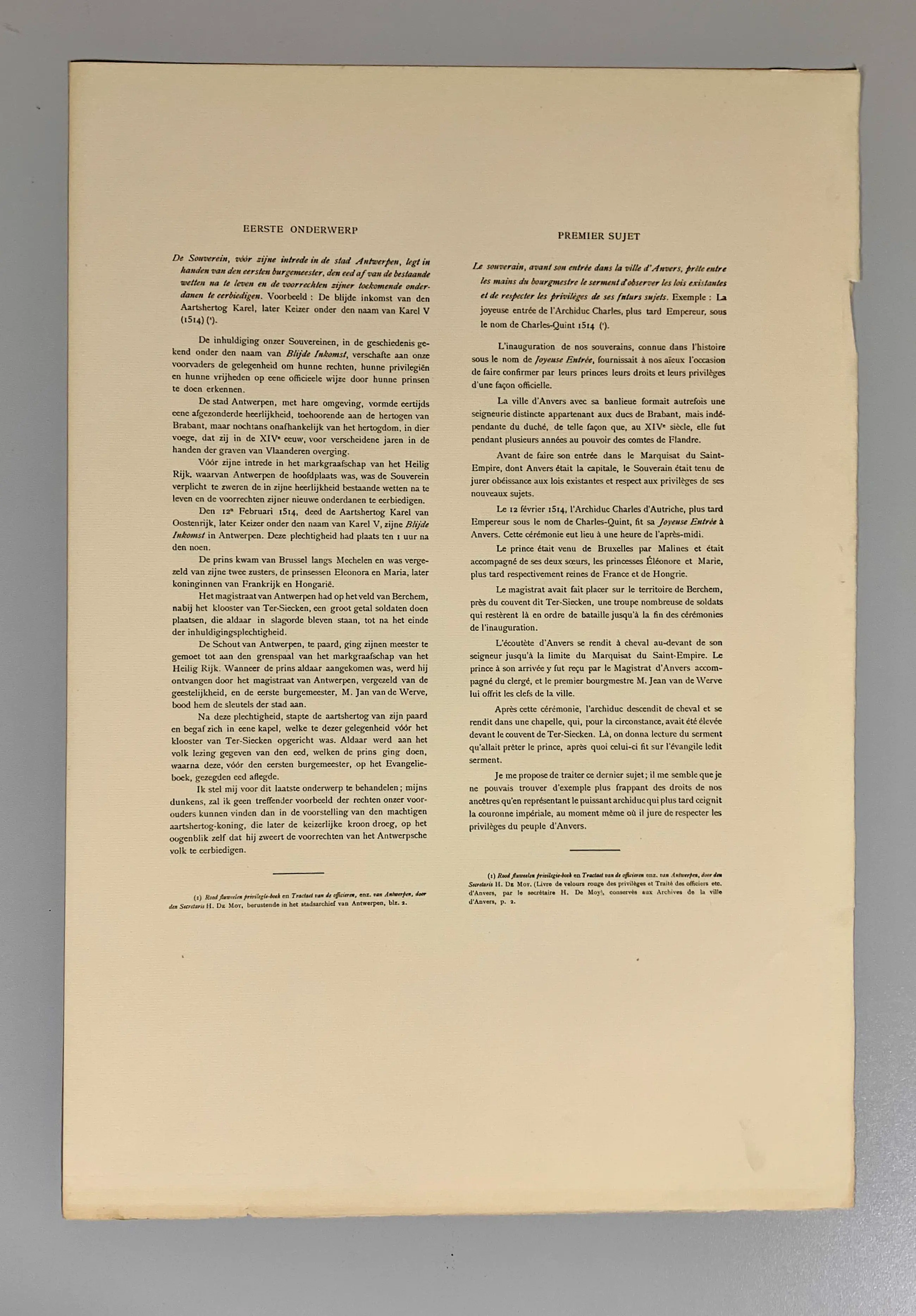 Map met tekst en uitleg over de realisatie van deze 7 kopersneden van Baron H. Leys die zijn vervaardigd op de muren in het stadhuis van Antwerpen rond 1862. Map is in goede staat bladen zijn door ouderdom verkleurd en hebben licht beschadigingen en/of vlekjes, zie foto's. Kopersneden zijn in goede staat. Papiersoort: Arches. Afmeting: kopersneden 42x 62 cm. Gewicht 4,5 kg. Wordt zorgvuldig verpakt en verzekerd verzonden.