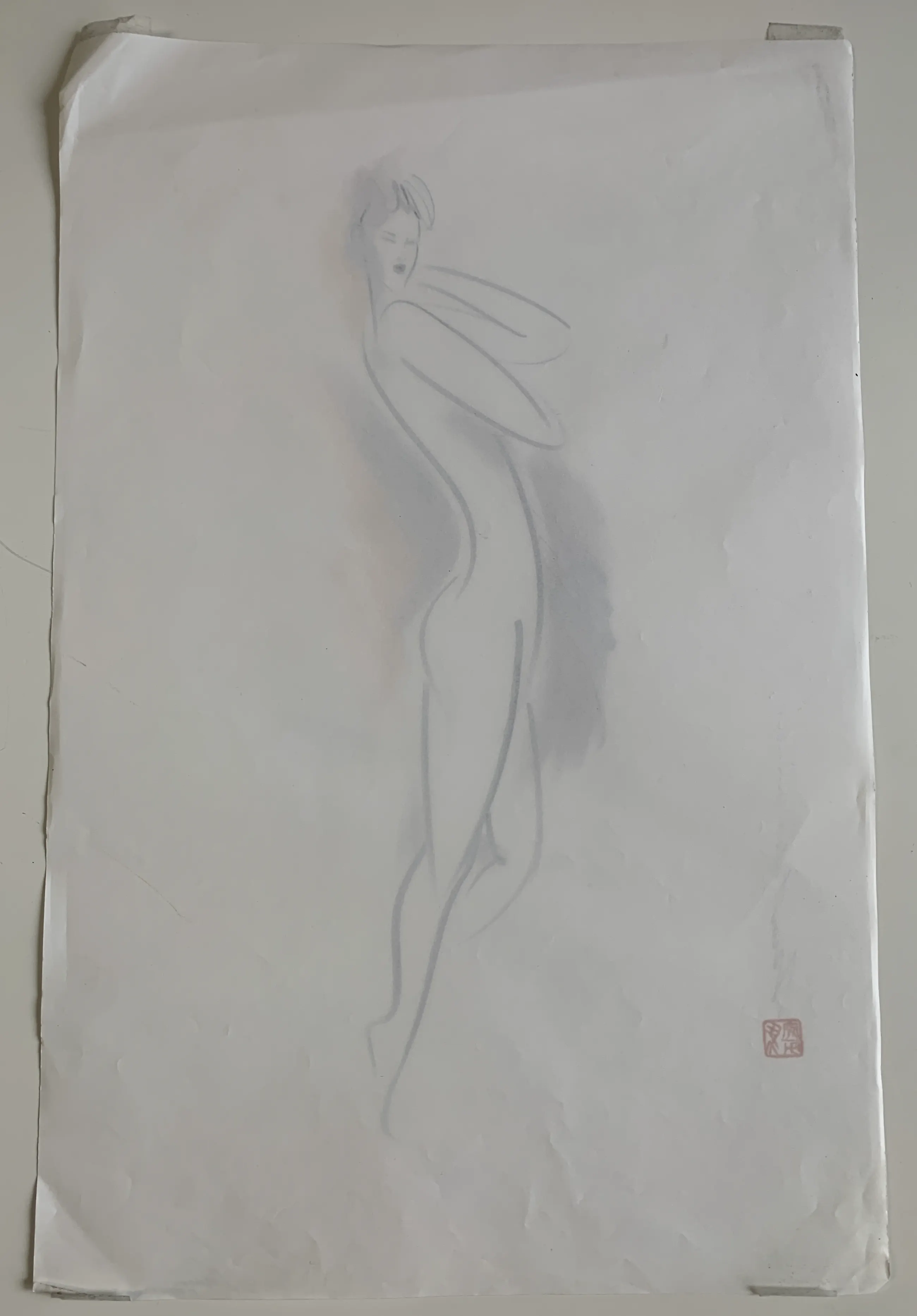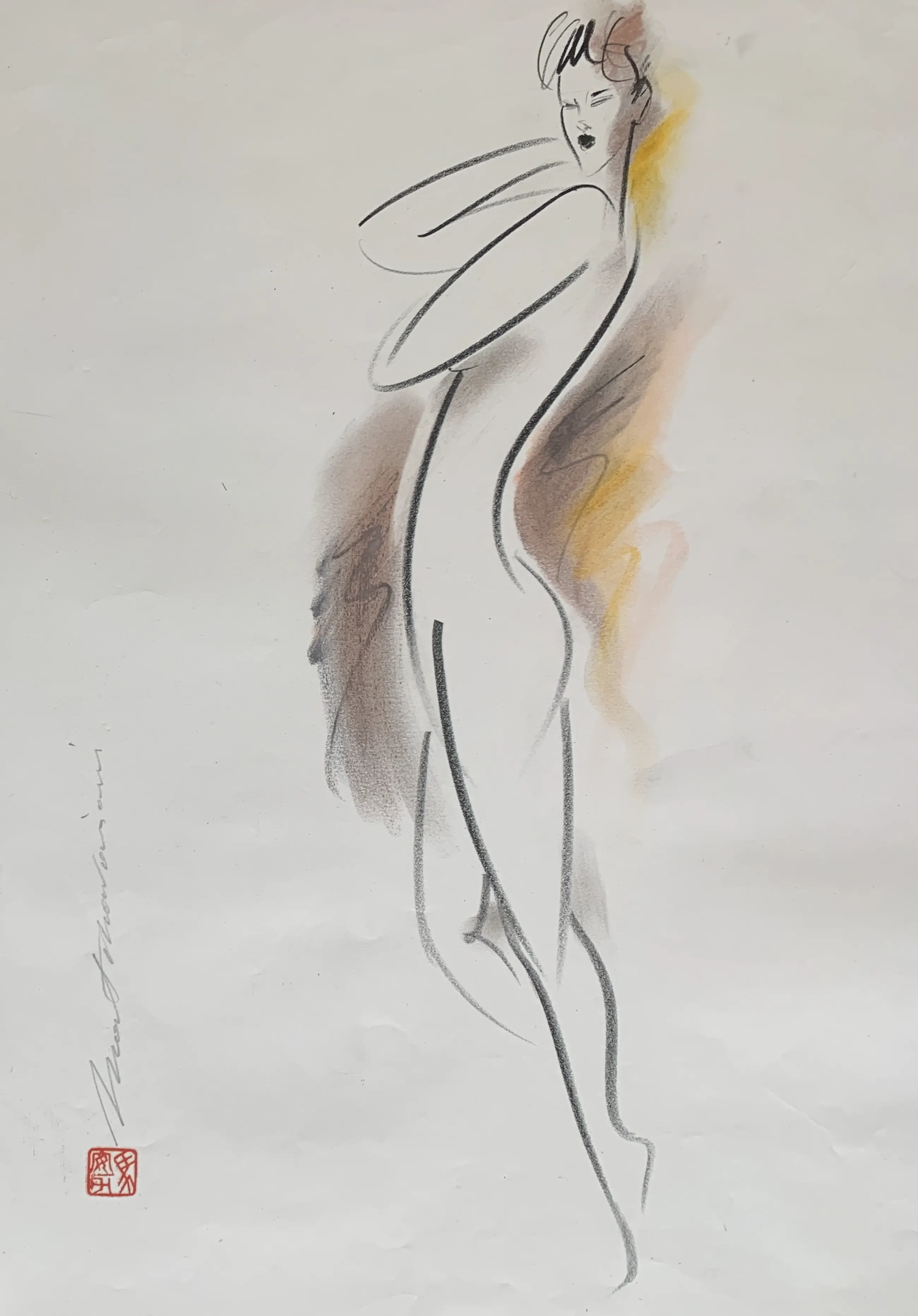 Slechts een paar streken als een trilling van pastel of inkt in de stilte van mijn witte lakens.