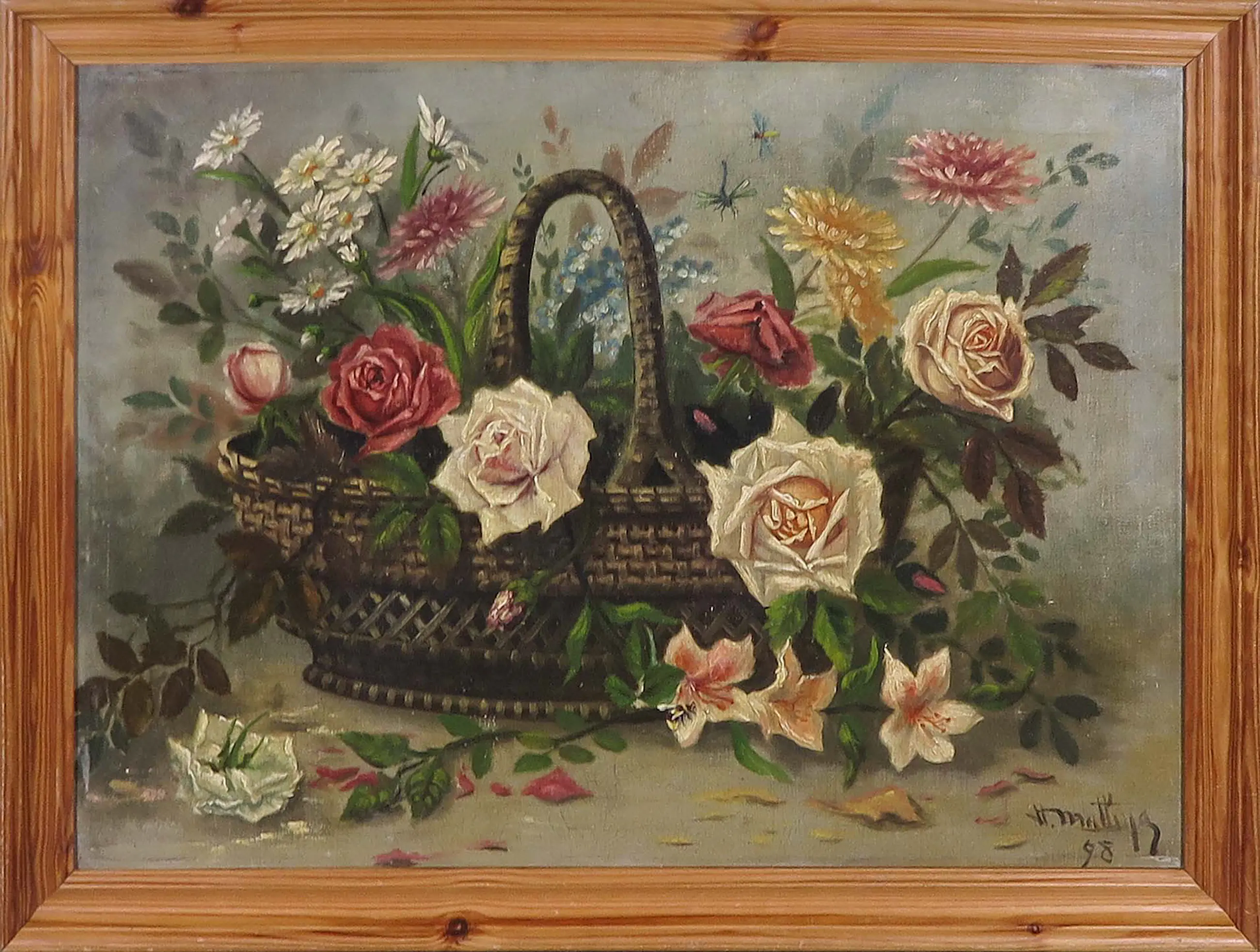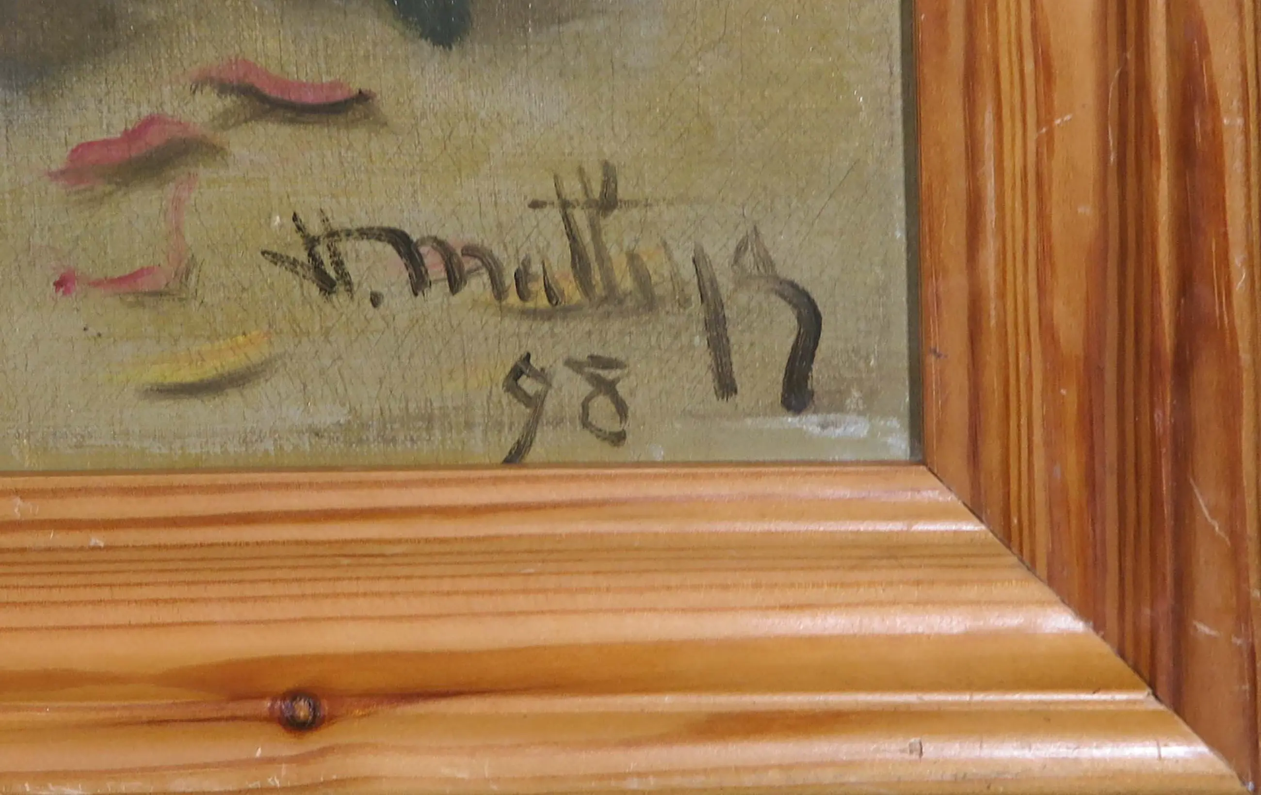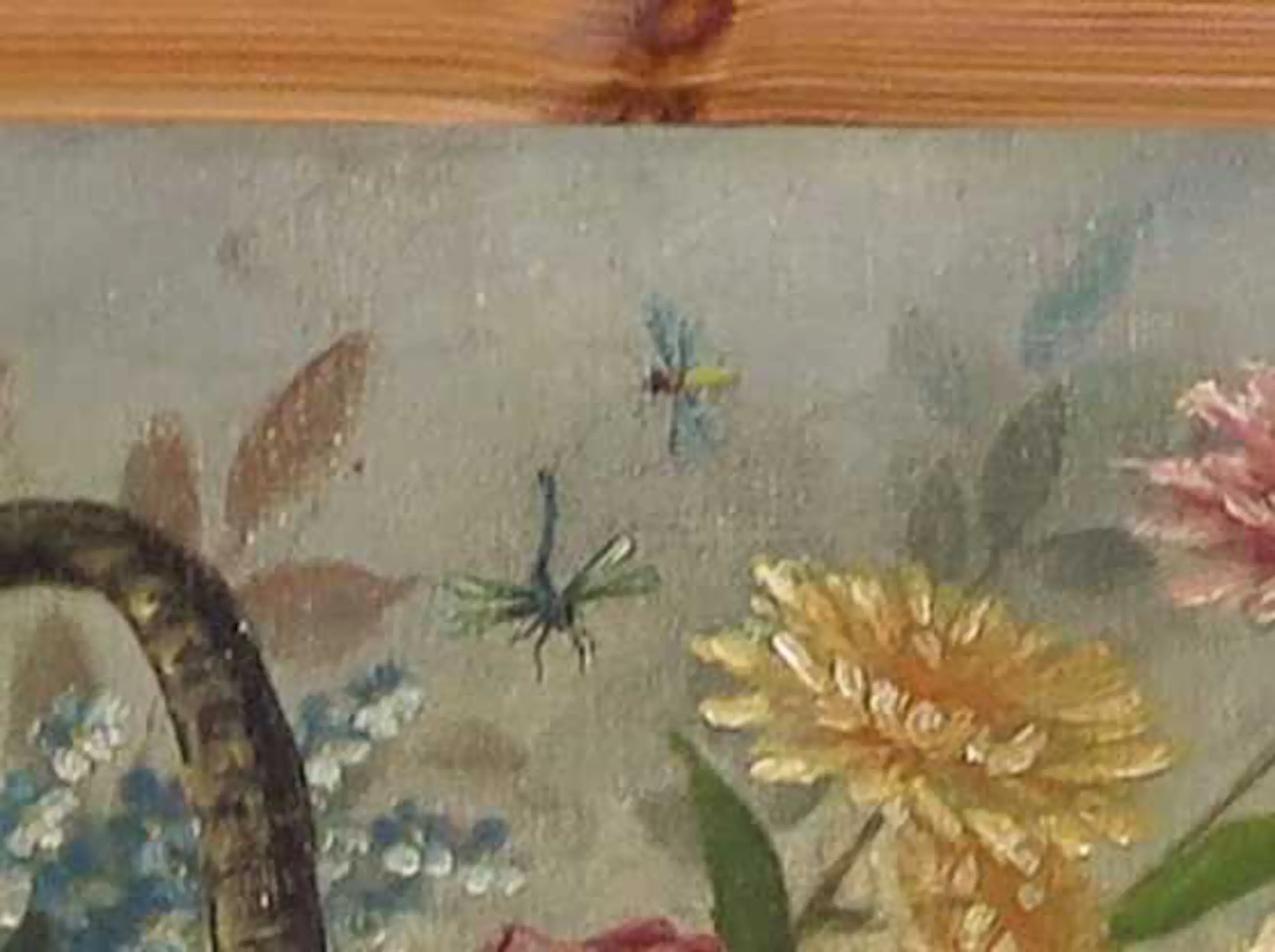 | Werk is in goede staat, zeker gezien de leeftijd maar heeft hier en daar natuurlijk wel een krasje etc. Niets storends of ongebruikelijks. Langs de lijst zit wel wat sluitage, wat doet vermoeden dat het werk ooit een lijst heeft gehad die iets verder over het doek viel. | |