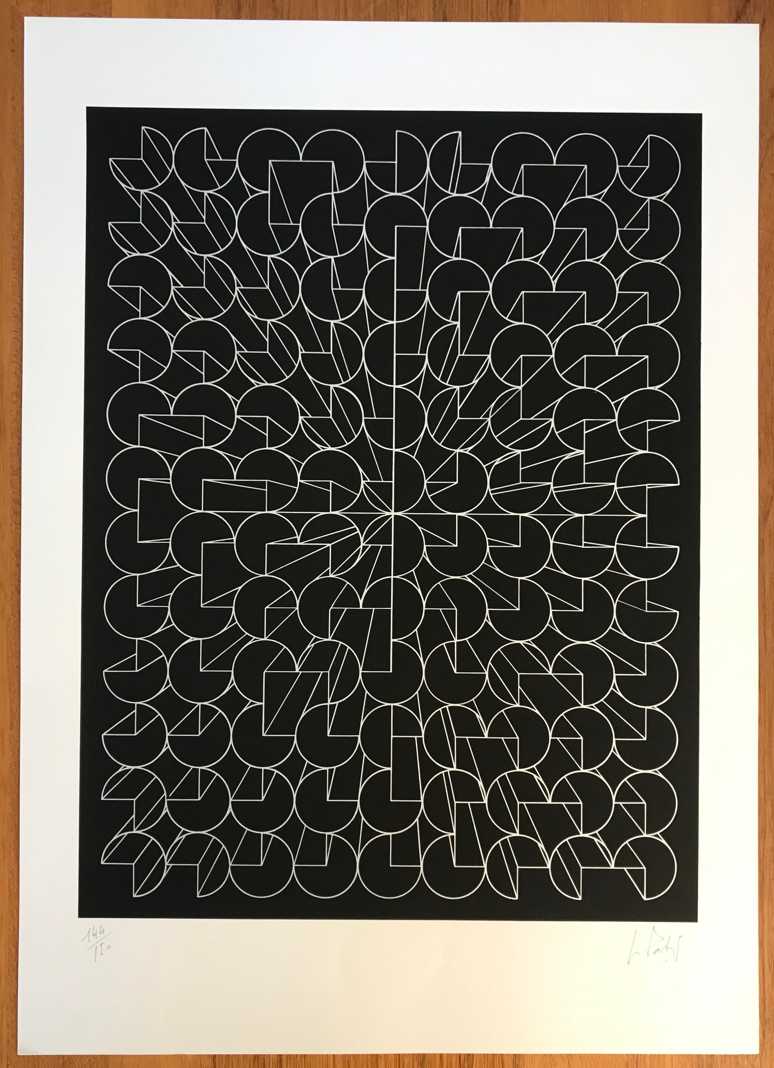 Gesigneerd en gedateerd, tevens genummerd 144/150 in potlood, door de kunstenaar. Afkomstig uit de kunstmap uit 1974 van de Internationale Werkgroep Voor Konstruktieve Vormgeving.(derde grafiekmap Antwerpen-Bonn - 1974) Zelden aangeboden!