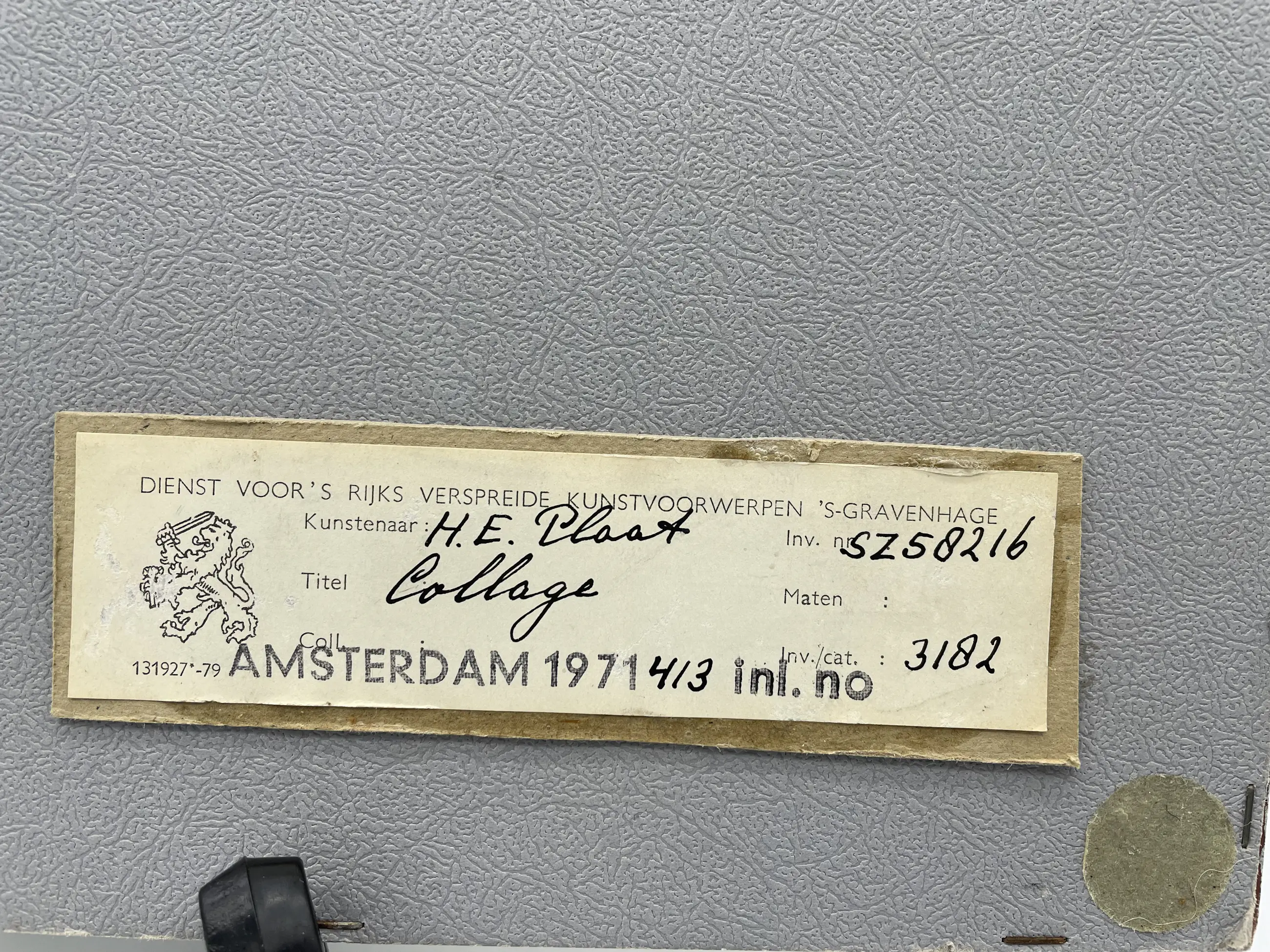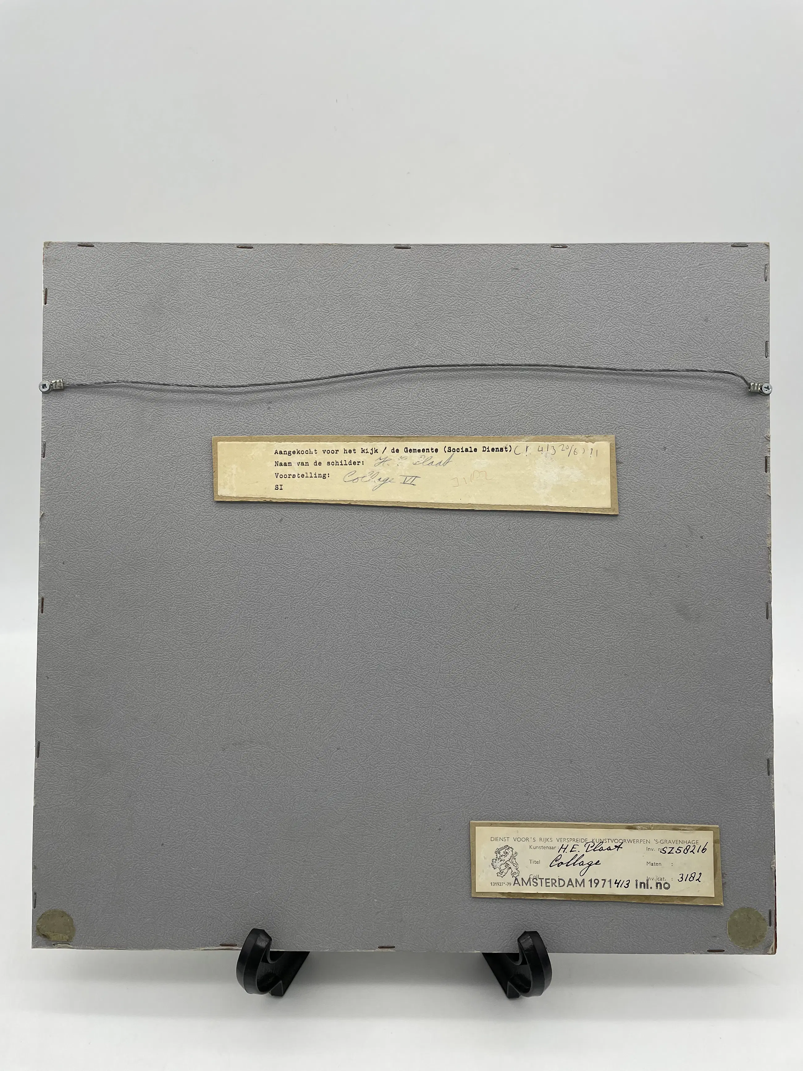 Een bijzonder mooi modern kunstwerk van H.E. Plaat, getiteld "Collage", werd ooit aangekocht door de Dienst voor Rijksverspreide Kunstwerken in Den Haag in 1971.