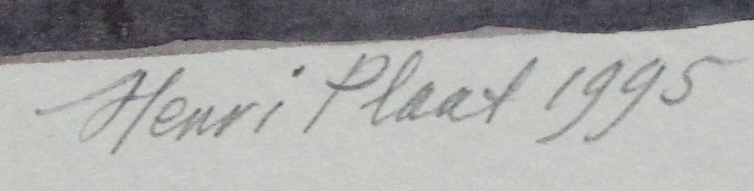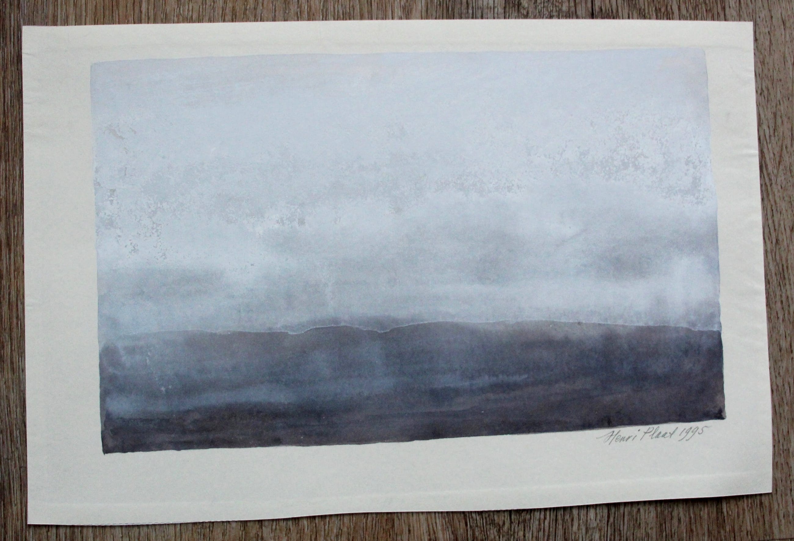 Gemengde techniek van Henri Plaat uit 1995. Aquarel, tekening en gouache. Titel: Mistig landschap. Afmetingen blad: H19.5 x b29.5cm. Afmetingen voorstelling: H15 x b24.5 cm. Het werk is rechts onderaan gesigneerd door de kunstenaar. De authenticiteit van het aangeboden werk wordt volledig gegarandeerd. Een certificaat van echtheid kan, op aanvraag worden gemaild.