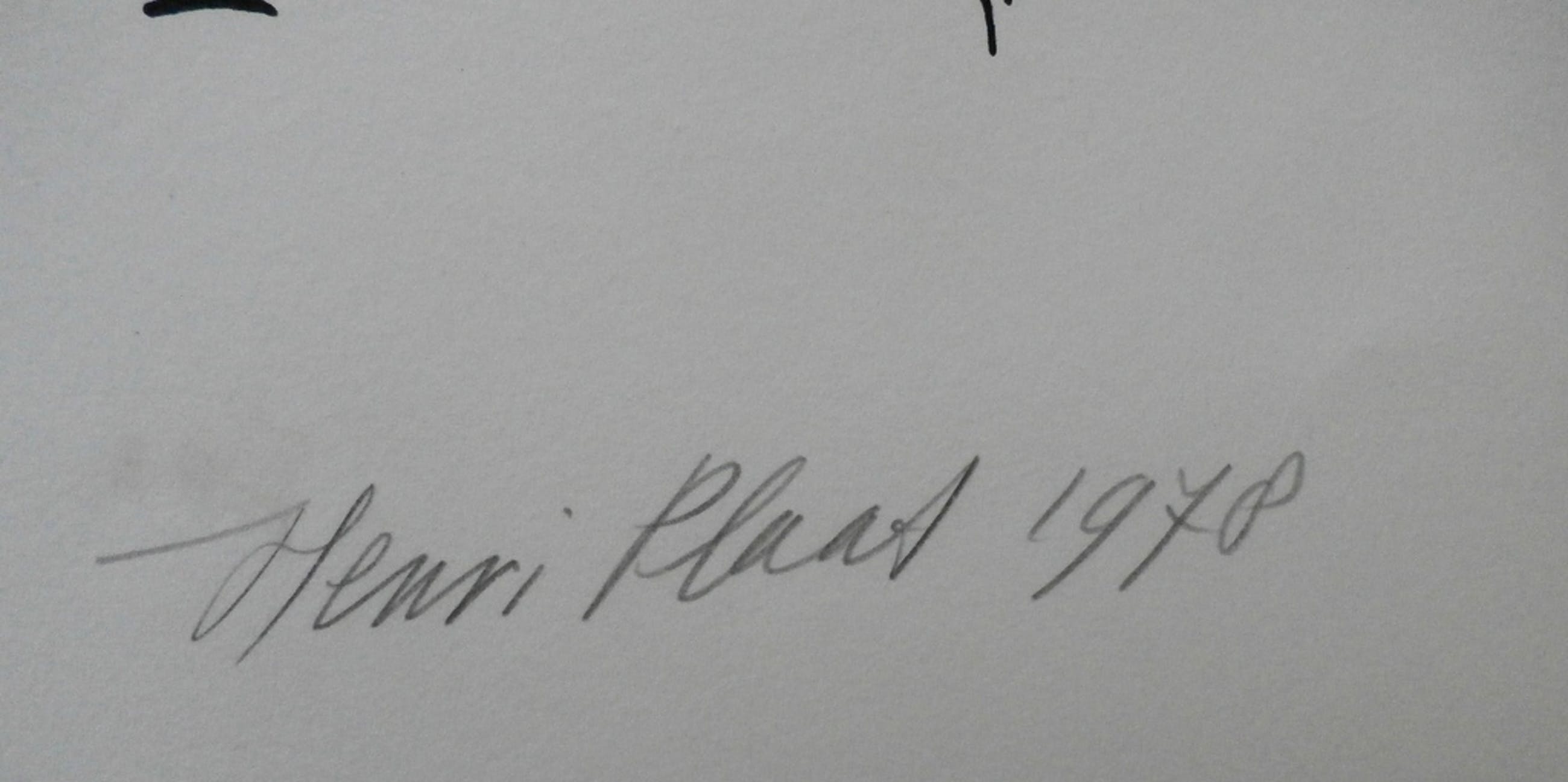 Grote litho van Henri Plaat uit 1978. Nummer: 18/25. Afmetingen blad: H63 x b91 cm. Rechtsonder, met potlood, gesigneerd door de kunstenaar. De authenciteit van dit werk wordt voor 100% verzekerd. Een certificaat kan, op aanvraag, worden meegeleverd.