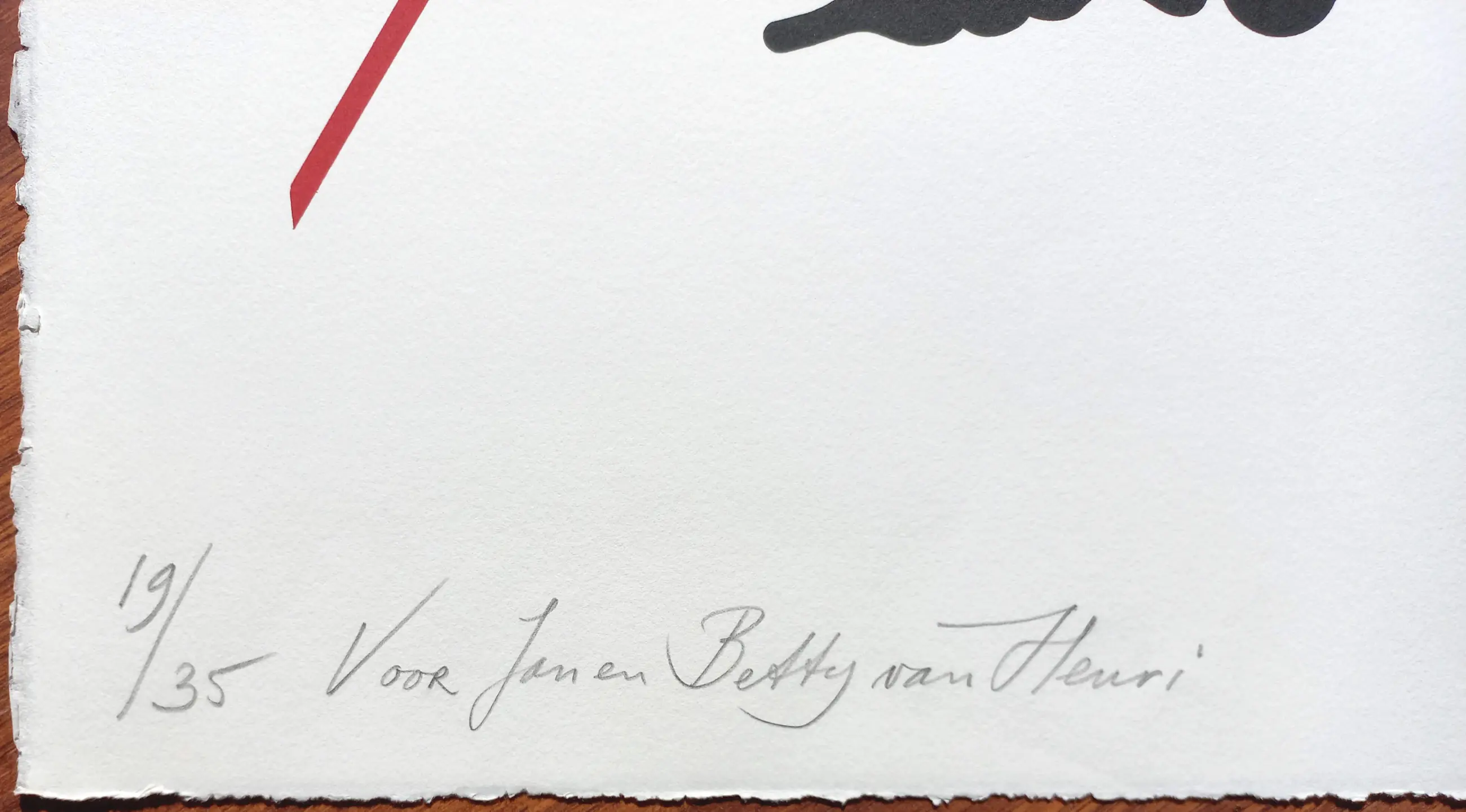 Zeer mooi, karakteristiek werk van Henri Plaat. Litho op Rives papier, met potlood gesigneerd, gedateerd (1997) en genummerd (19/35), met opdracht “Voor Jan en Betty van Henri”. In uitstekende conditie.