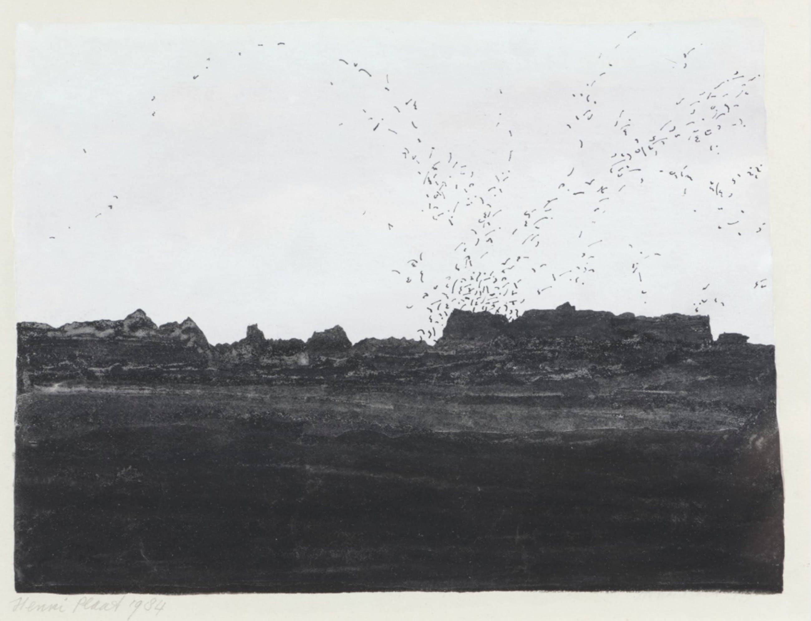 Prachtig stemmig landschap in zwart, wit en grijs. Herkomst: particuliere collectie; Galerie Asselijn, Amsterdam.
