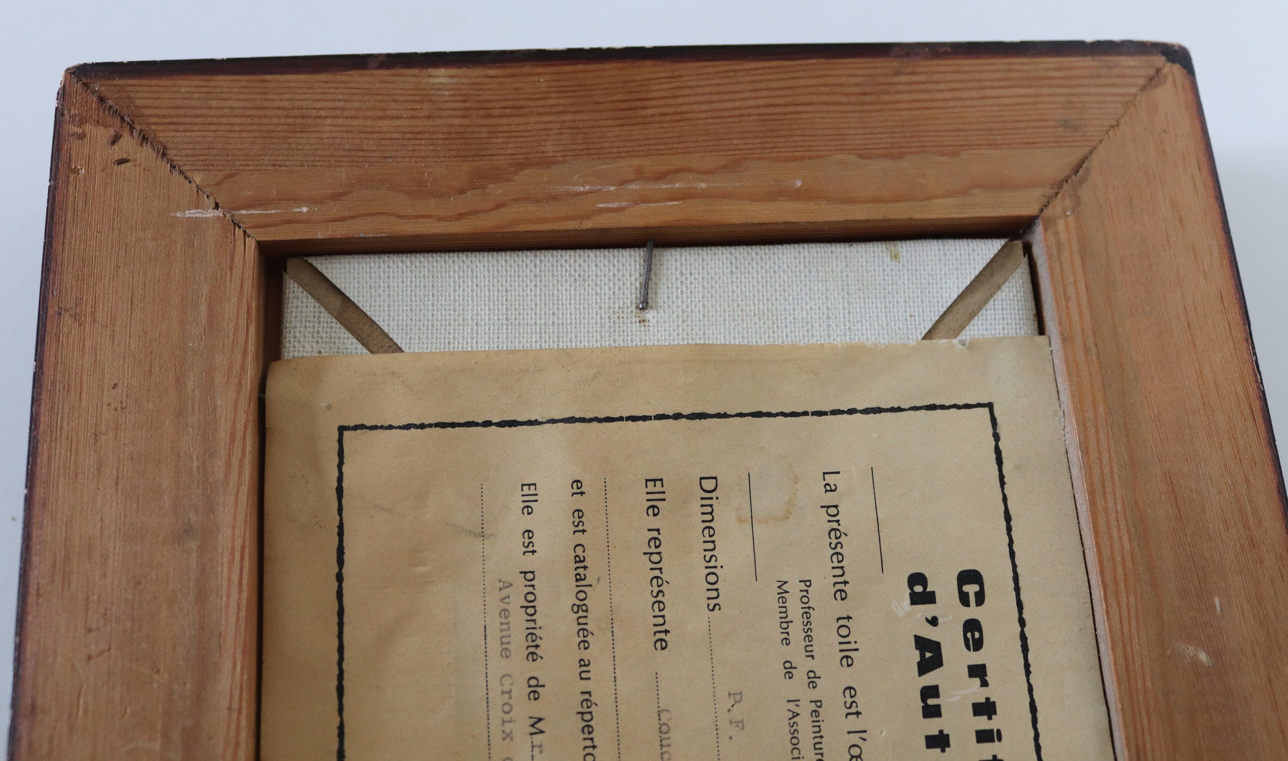 niet gesigneerd op voorkant, met certificaat met handtekening van de kunstenaar op achterkant (zie foto) olieverf op paneel (doek op paneel gespannen)