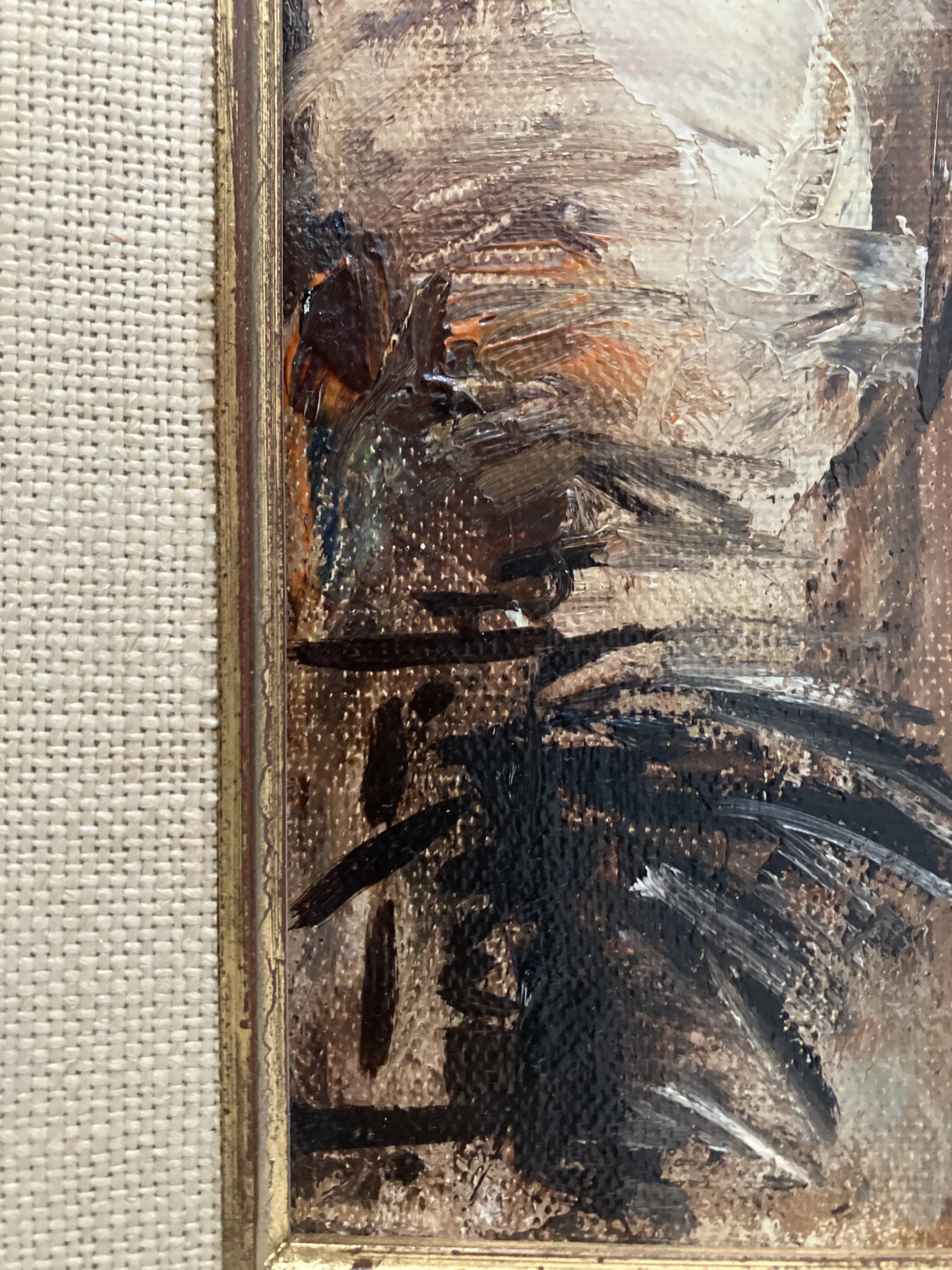 Landschap van de Hoge Venen, geschilderd op doek, zwart-gouden lijst.