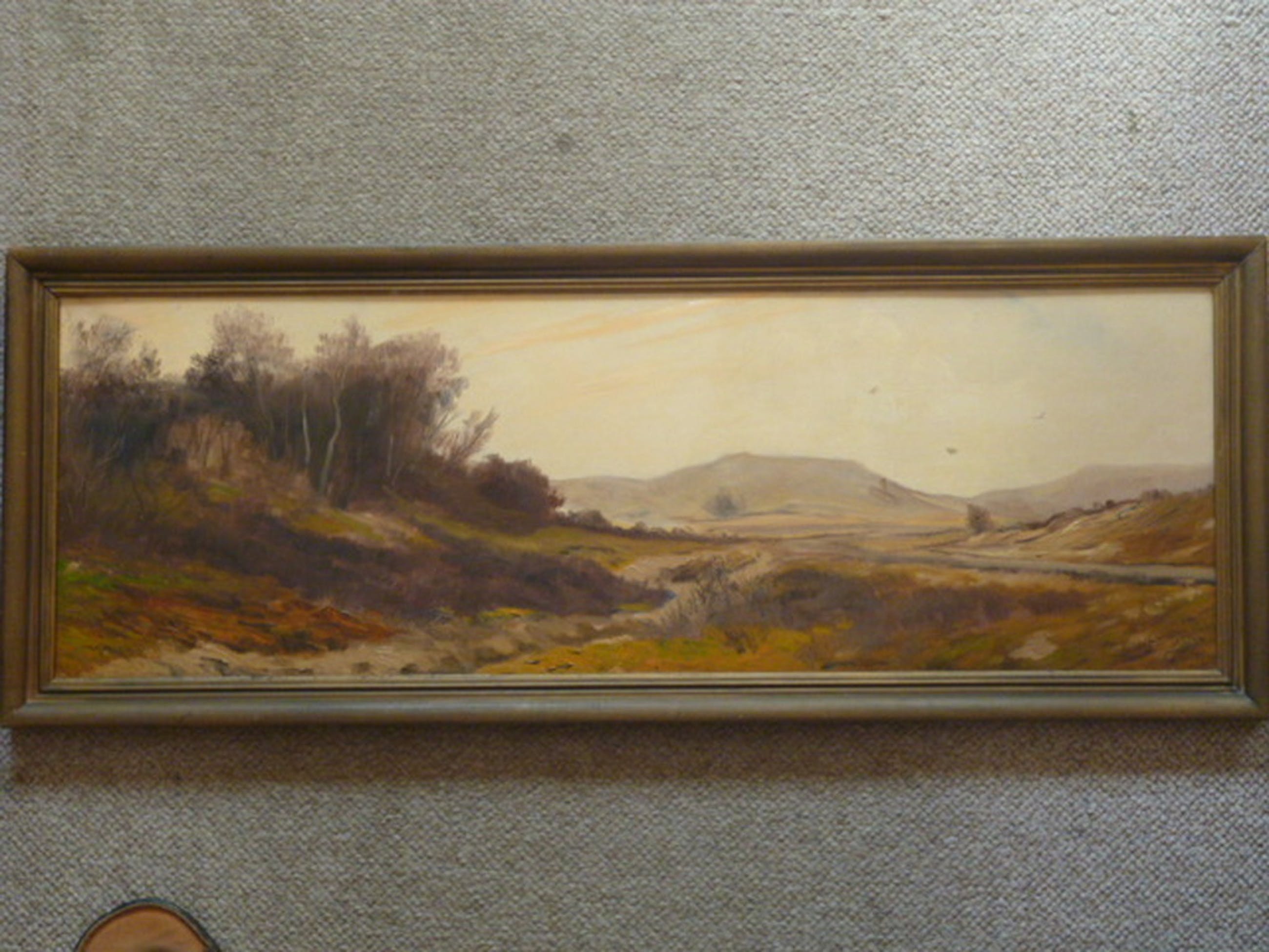 Olieverf op paneel. Paneelmaat 24 x 74. Ingelijst. Lijstmaat 30 x 80 cm.
