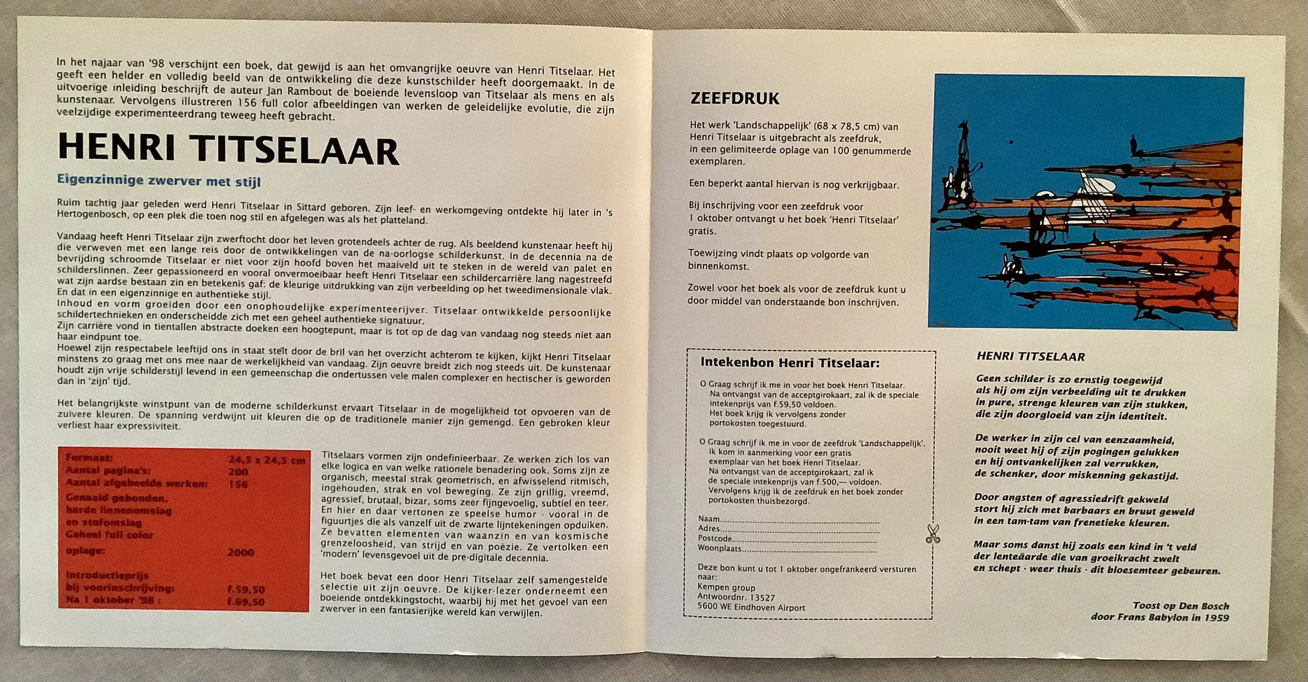 Monografie van een bijzonder expressionist. Boek is in nieuwstaat, omslag heeft wat beschadigingen. Met origineel inlegvel/intekenbon.
