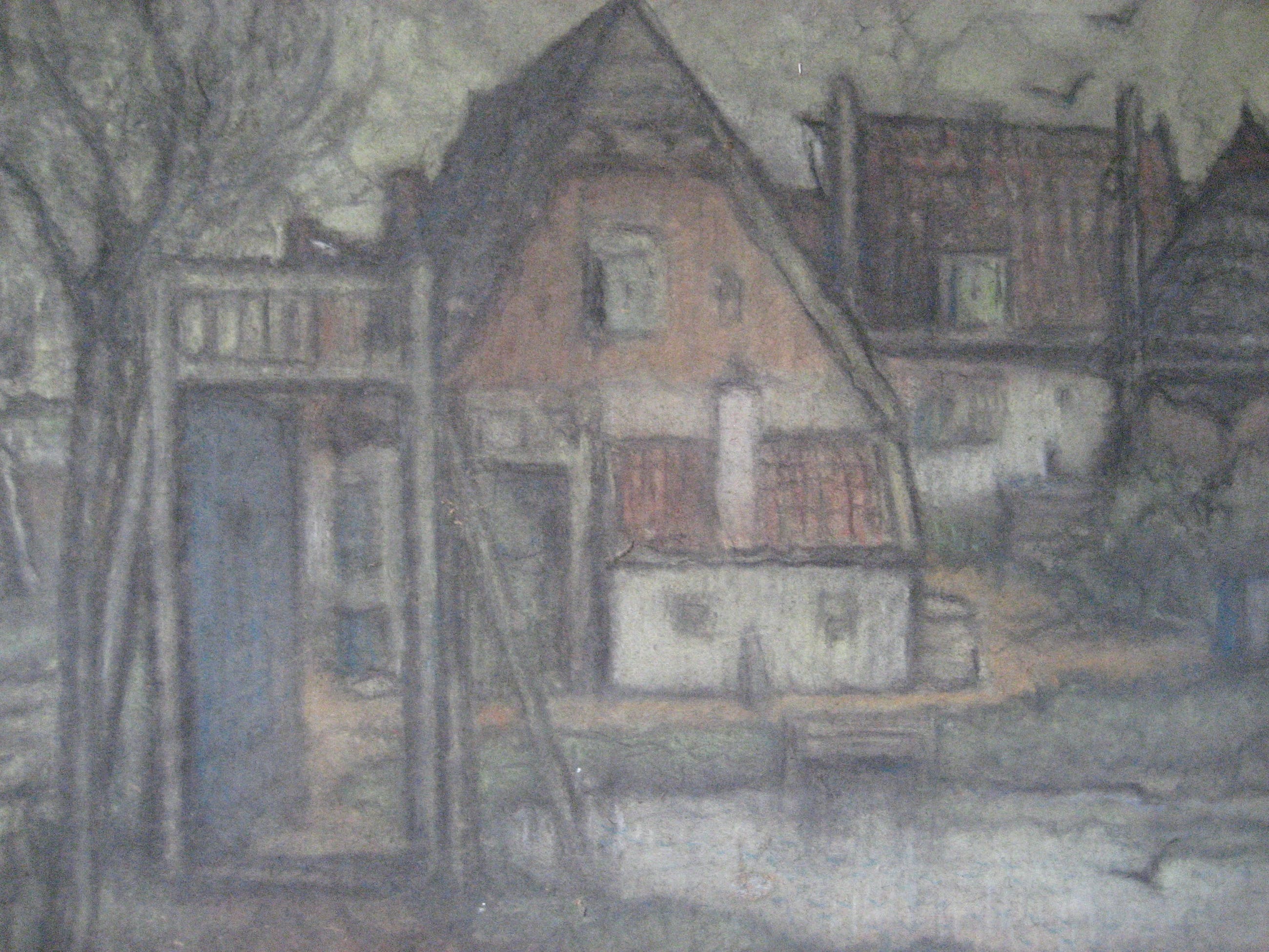 Kleine niet opvallende beschadiging in de pastel.