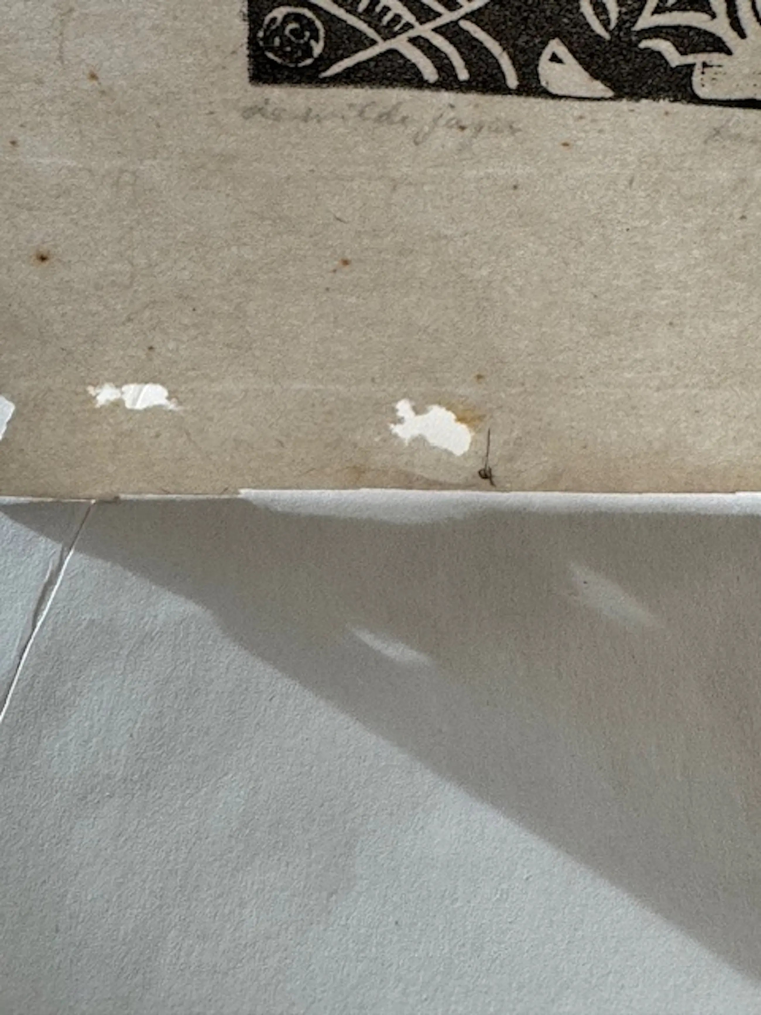 Heeft buiten de marges twee gaatjes belicht vlekjes maar de afbeelding zelf is in zeer goede staat.